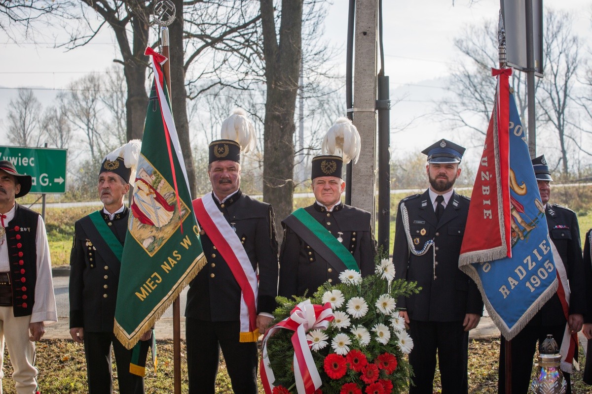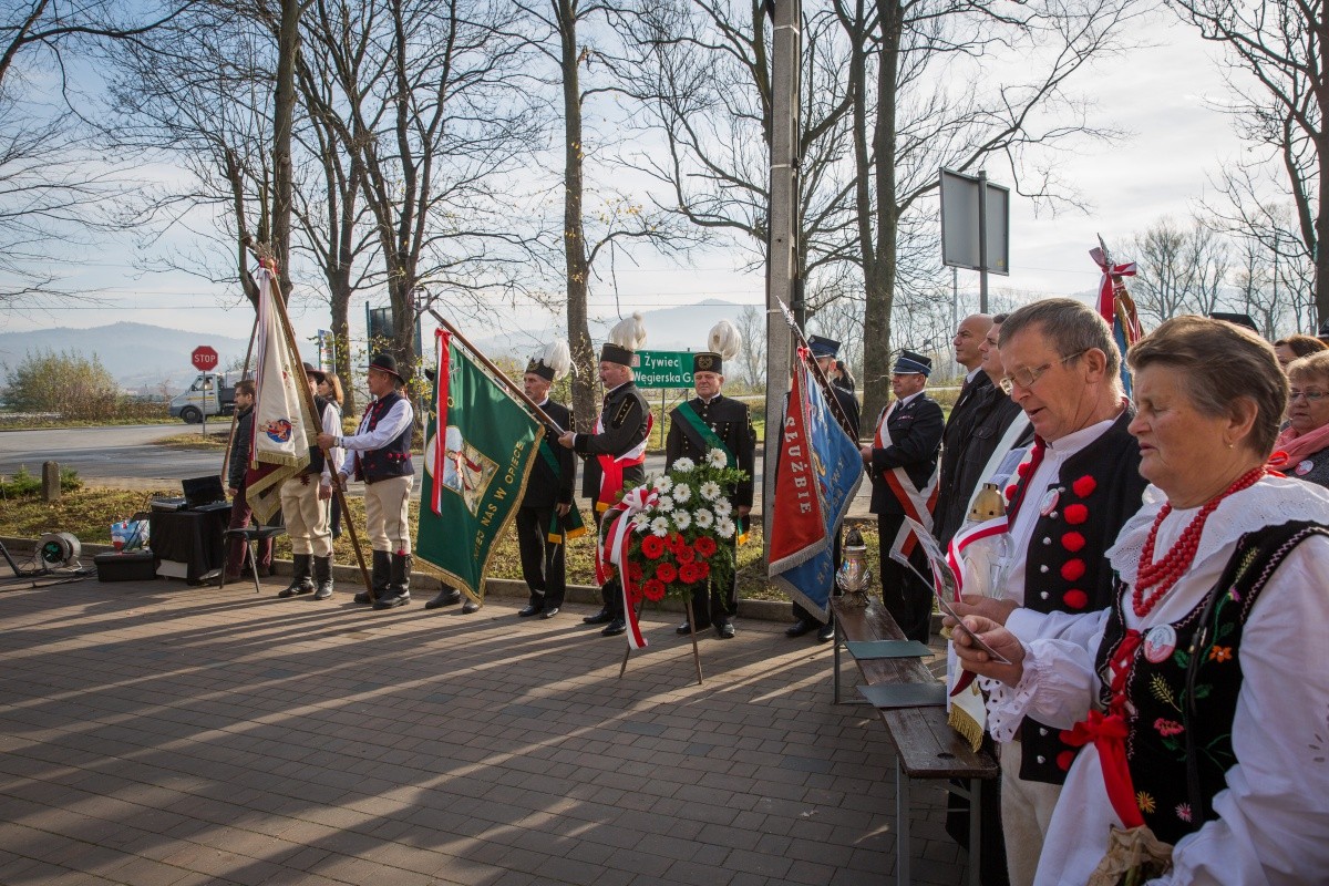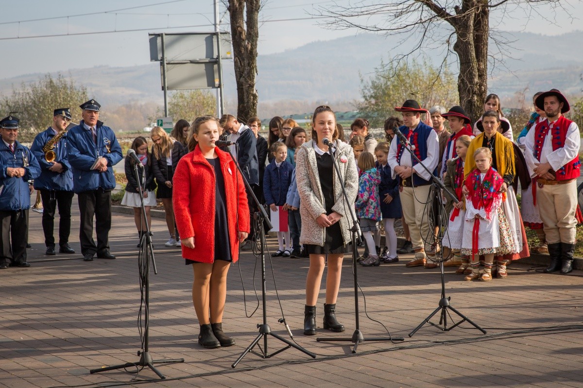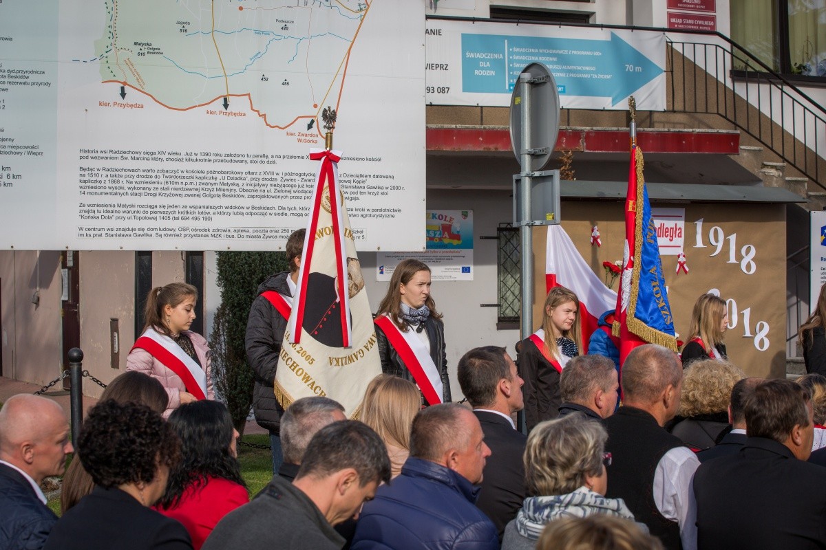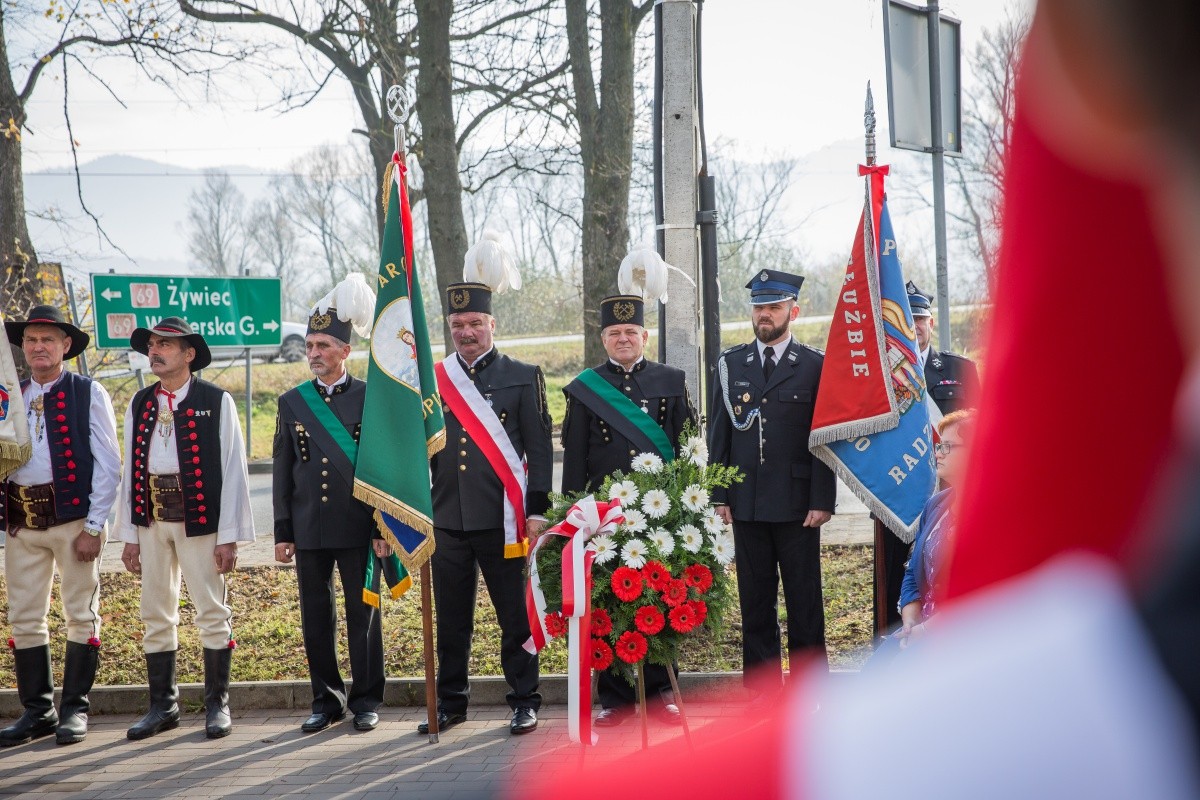 W piątek – 9 listopada, ok. godz. 11:00 wybrzmiały dźwięki góralskiej trombity, które oznajmiały rozpoczęcie świętowania. Równo o godz. 11:11 wszyscy obecni na uroczystości goście jednoczyli się z uczniami w szkołach z terenu całej Polski i odśpiewali cztery zwrotki Hymnu Polski, spoglądając na biało – czerwone barwy flagi wznoszonej na maszt. Po części oficjalnej poświęcenia i odsłonięcia Tablicy Pamiątkowej przez Wójta Gminy Radziechowy – Wieprz Macieja Mikę oraz Prezesa Etnobanku Spółdzielczego (który jest współfundatorem tablicy) zaprezentowały się szkoły z naszego terenu. Krótki program artystyczny przeszedł oczekiwania wszystkich widzów i wspaniale wprowadził nas w klimat nadchodzących dni. Swój repertuar zagrała także Orkiestra Dęta z Radziechów, a śpiewem wtórowali im wszyscy przybyli goście oraz inne obecne delegacje organizacji działających na tym terenie. Byli to min.: Związek Podhalan na Żywiecczyźnie, Klub Seniora Wrzos, Zespoły Regionalne, Stowarzyszenie Dzieci Serc, Uczniowie Klas Wojskowych z Liceum w Moszczanicy, Szkoły Podstawowe, Górnicy, Pszczelarze i inni, którzy przybyli tego dnia ze sztandarami, aby uświetnić niezwykłe wydarzenia. Wielu z nich składało kwiaty i zapalało znicze pod pamiątkową tablicą, dedykowaną naszym przodkom. Po południu, tego samego dnia, uczniowie z Przybędzy zapraszali wszystkich mieszkańców na przygotowany przez siebie spektakl pt.: „Droga do Wolności”, zaprezentowanym w Domu Ludowym, którzy zachwycił wszystkich widzów.