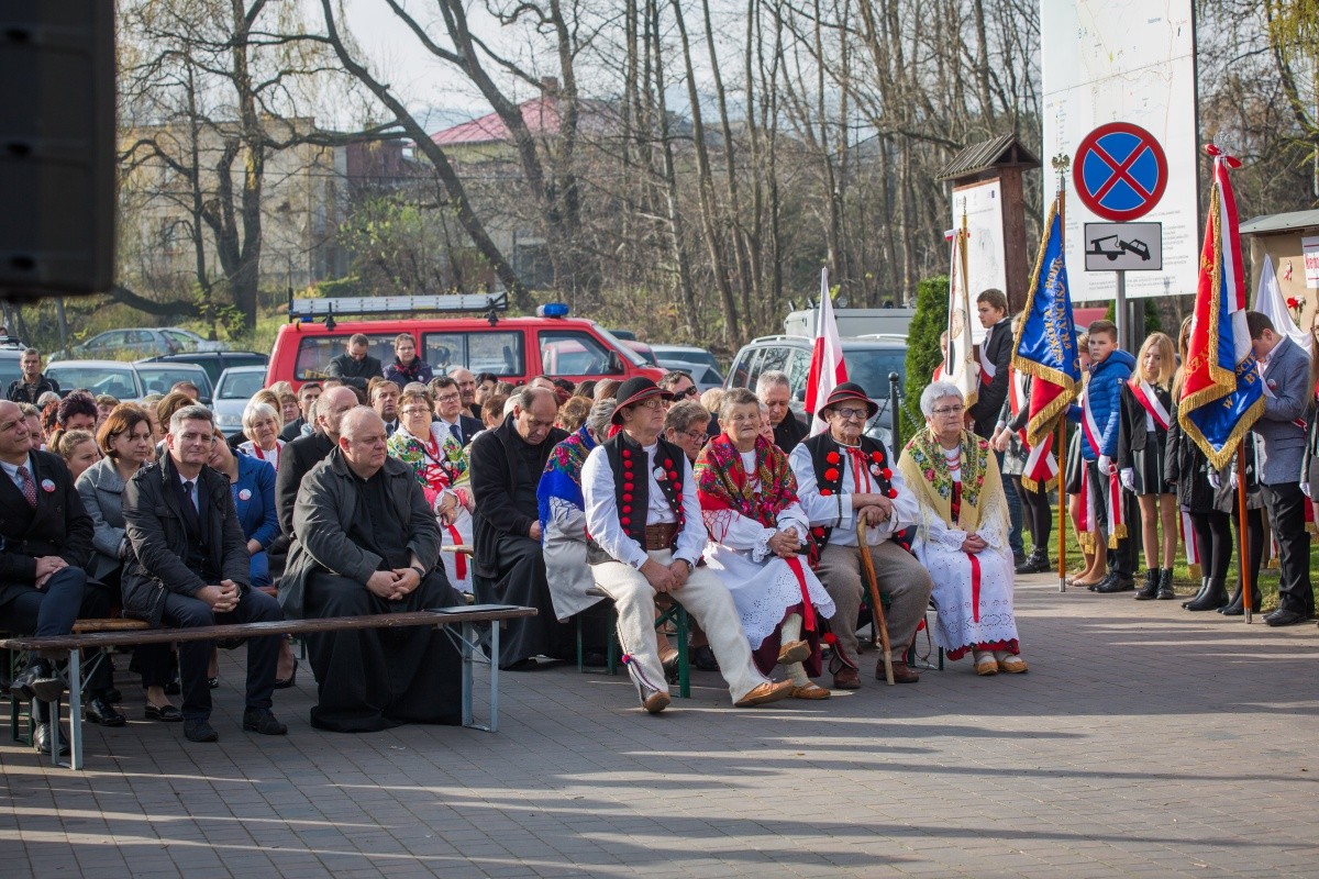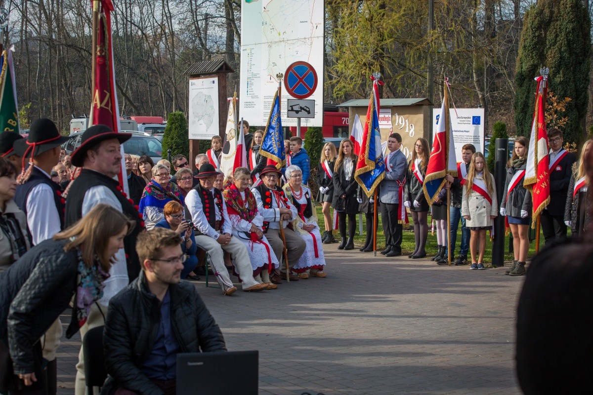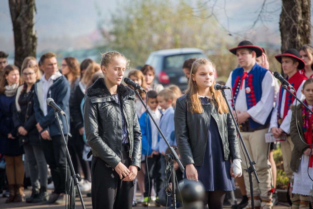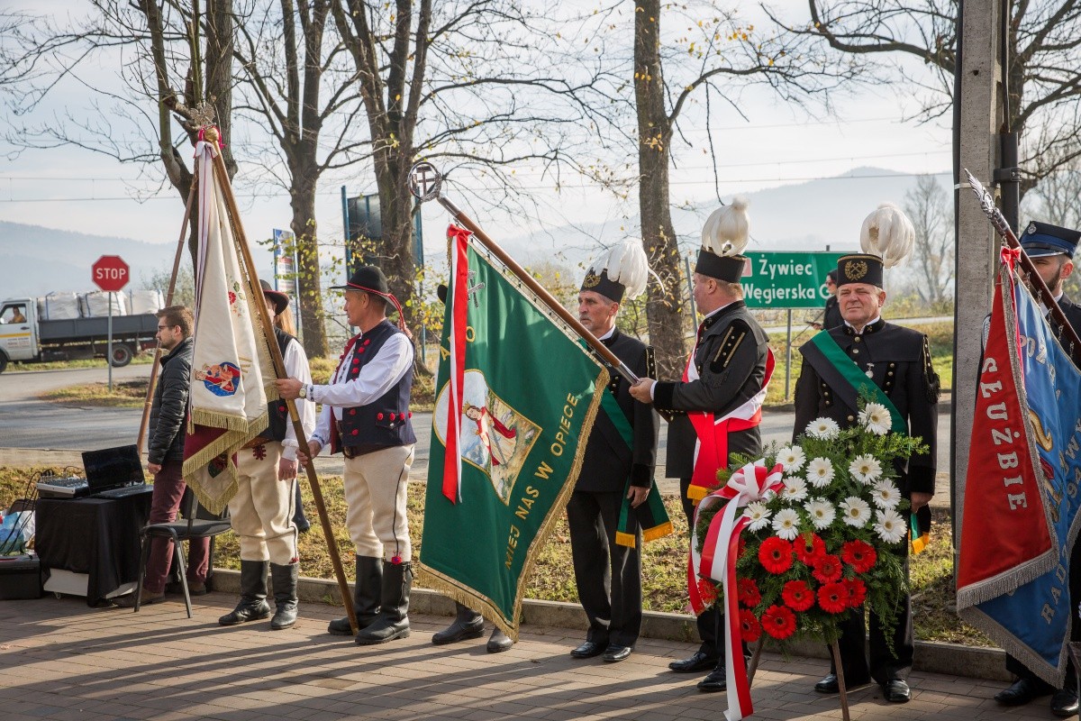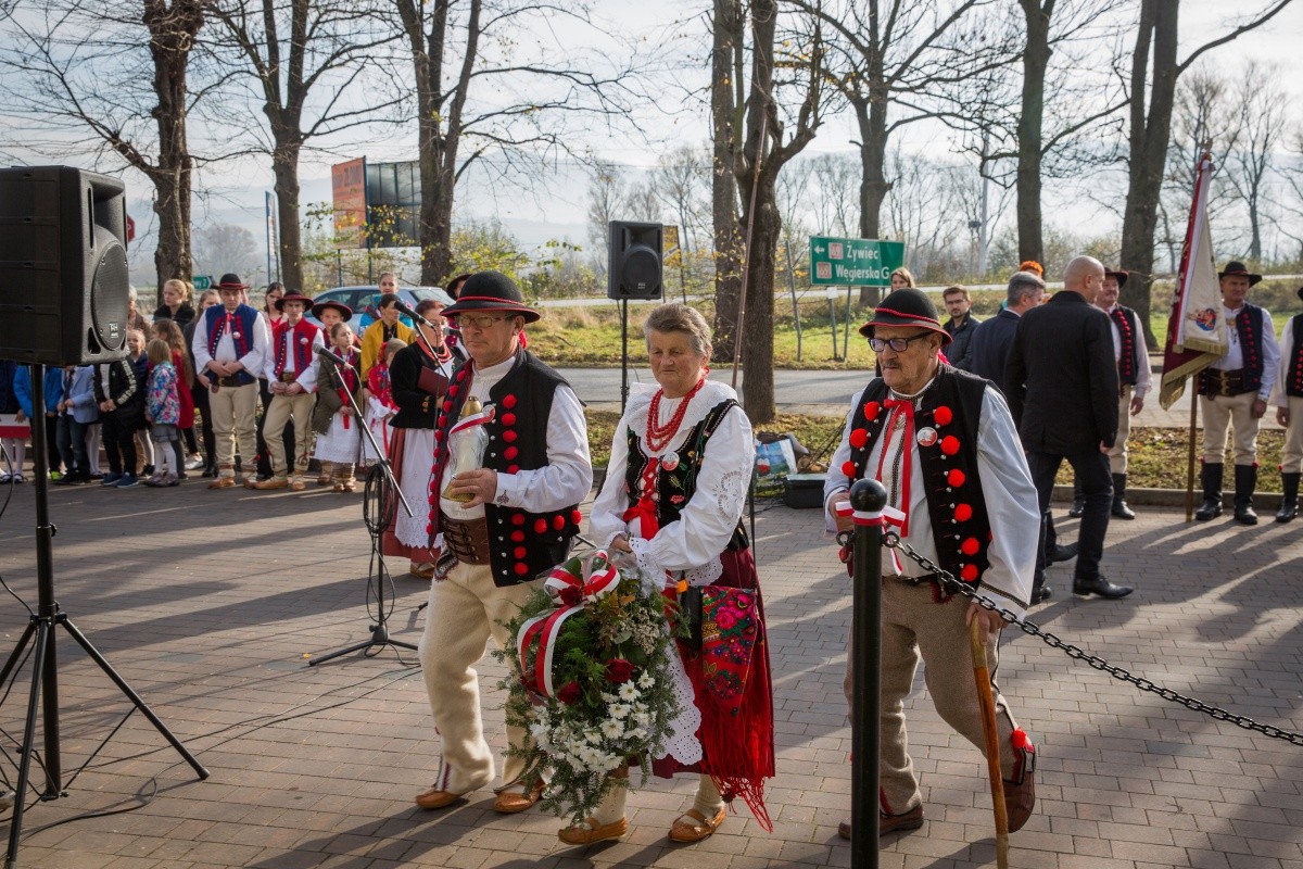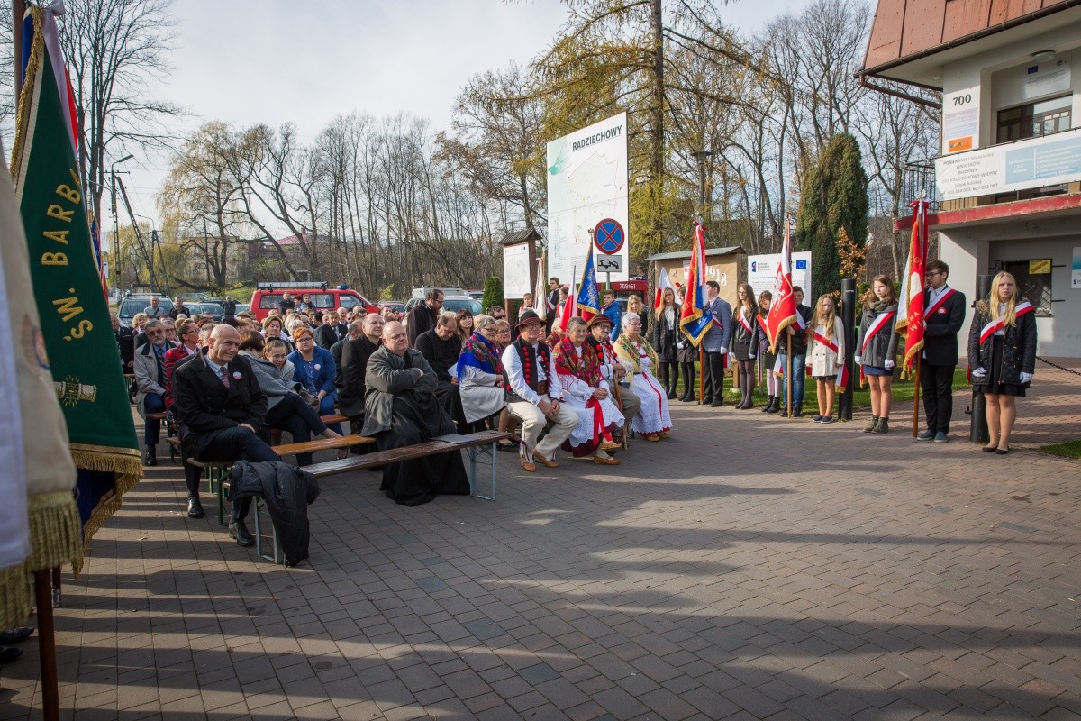 W piątek – 9 listopada, ok. godz. 11:00 wybrzmiały dźwięki góralskiej trombity, które oznajmiały rozpoczęcie świętowania. Równo o godz. 11:11 wszyscy obecni na uroczystości goście jednoczyli się z uczniami w szkołach z terenu całej Polski i odśpiewali cztery zwrotki Hymnu Polski, spoglądając na biało – czerwone barwy flagi wznoszonej na maszt. Po części oficjalnej poświęcenia i odsłonięcia Tablicy Pamiątkowej przez Wójta Gminy Radziechowy – Wieprz Macieja Mikę oraz Prezesa Etnobanku Spółdzielczego (który jest współfundatorem tablicy) zaprezentowały się szkoły z naszego terenu. Krótki program artystyczny przeszedł oczekiwania wszystkich widzów i wspaniale wprowadził nas w klimat nadchodzących dni. Swój repertuar zagrała także Orkiestra Dęta z Radziechów, a śpiewem wtórowali im wszyscy przybyli goście oraz inne obecne delegacje organizacji działających na tym terenie. Byli to min.: Związek Podhalan na Żywiecczyźnie, Klub Seniora Wrzos, Zespoły Regionalne, Stowarzyszenie Dzieci Serc, Uczniowie Klas Wojskowych z Liceum w Moszczanicy, Szkoły Podstawowe, Górnicy, Pszczelarze i inni, którzy przybyli tego dnia ze sztandarami, aby uświetnić niezwykłe wydarzenia. Wielu z nich składało kwiaty i zapalało znicze pod pamiątkową tablicą, dedykowaną naszym przodkom. Po południu, tego samego dnia, uczniowie z Przybędzy zapraszali wszystkich mieszkańców na przygotowany przez siebie spektakl pt.: „Droga do Wolności”, zaprezentowanym w Domu Ludowym, którzy zachwycił wszystkich widzów.