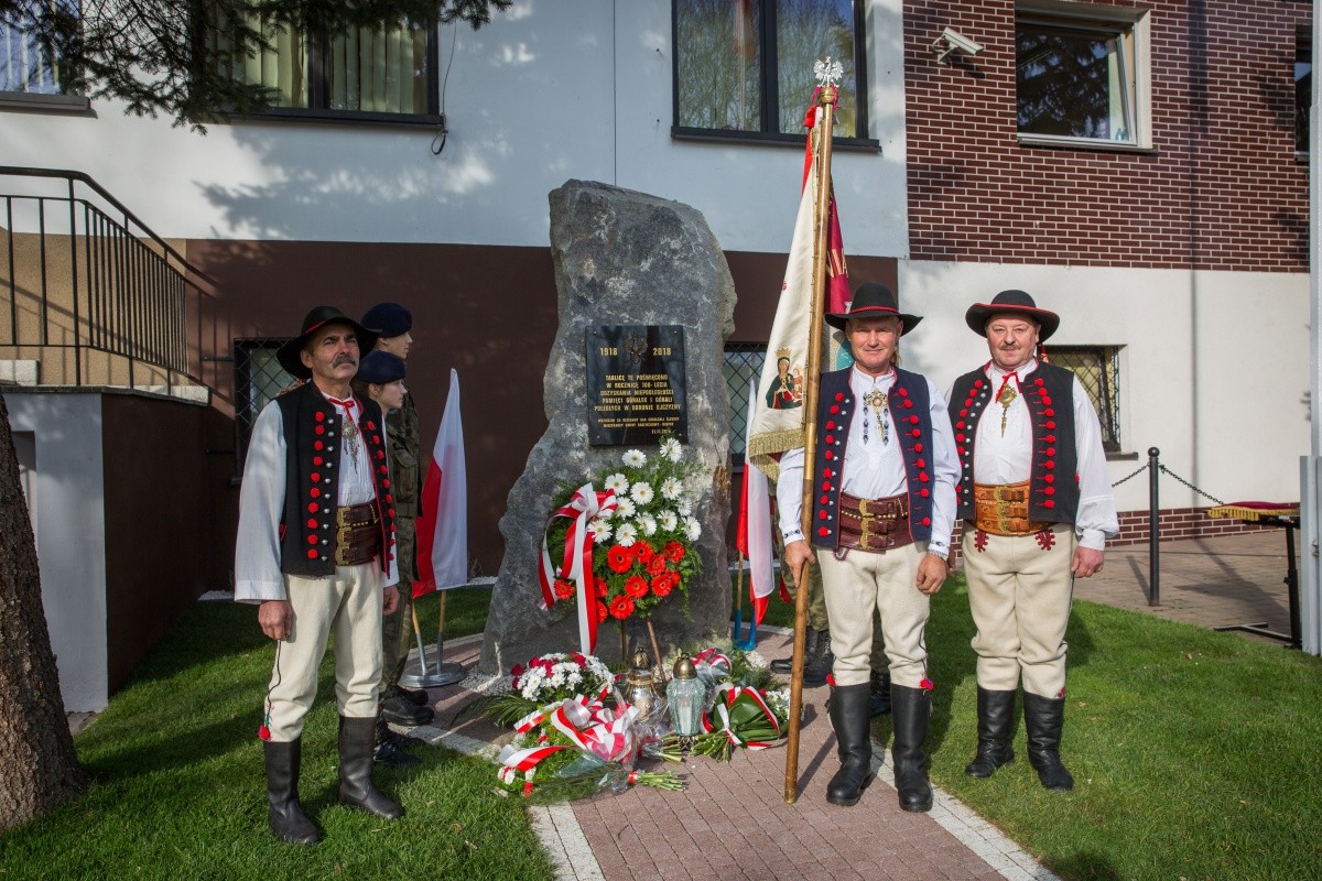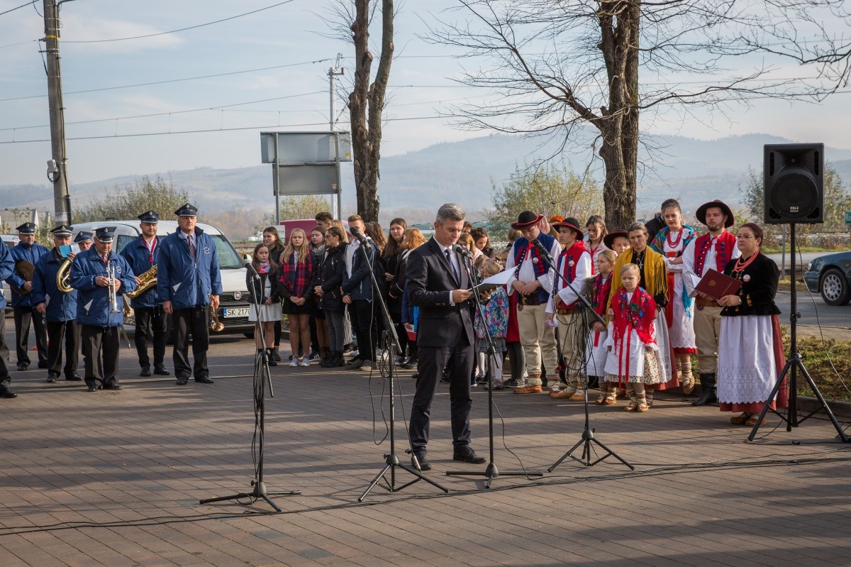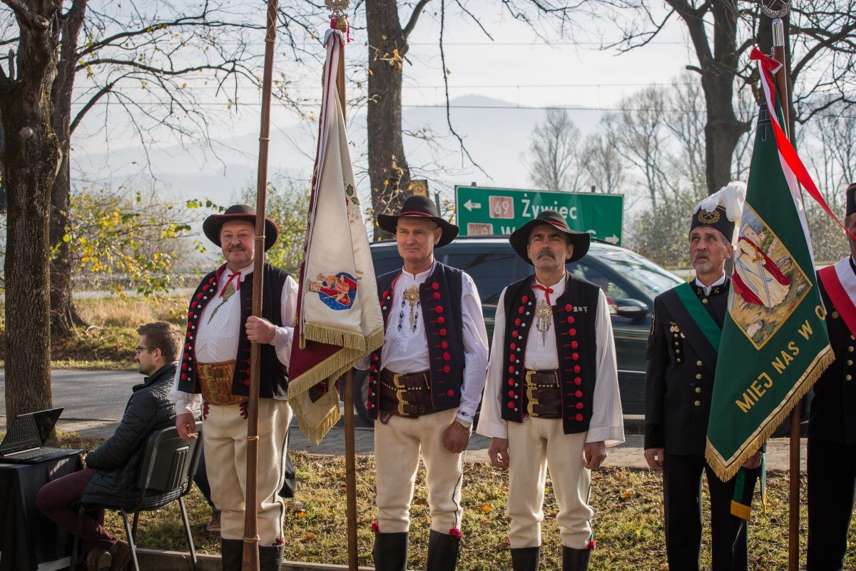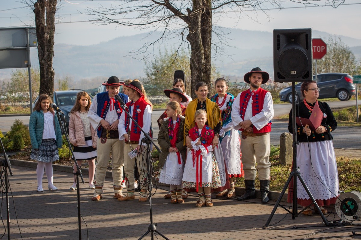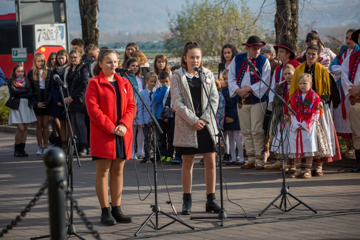 W piątek – 9 listopada, ok. godz. 11:00 wybrzmiały dźwięki góralskiej trombity, które oznajmiały rozpoczęcie świętowania. Równo o godz. 11:11 wszyscy obecni na uroczystości goście jednoczyli się z uczniami w szkołach z terenu całej Polski i odśpiewali cztery zwrotki Hymnu Polski, spoglądając na biało – czerwone barwy flagi wznoszonej na maszt. Po części oficjalnej poświęcenia i odsłonięcia Tablicy Pamiątkowej przez Wójta Gminy Radziechowy – Wieprz Macieja Mikę oraz Prezesa Etnobanku Spółdzielczego (który jest współfundatorem tablicy) zaprezentowały się szkoły z naszego terenu. Krótki program artystyczny przeszedł oczekiwania wszystkich widzów i wspaniale wprowadził nas w klimat nadchodzących dni. Swój repertuar zagrała także Orkiestra Dęta z Radziechów, a śpiewem wtórowali im wszyscy przybyli goście oraz inne obecne delegacje organizacji działających na tym terenie. Byli to min.: Związek Podhalan na Żywiecczyźnie, Klub Seniora Wrzos, Zespoły Regionalne, Stowarzyszenie Dzieci Serc, Uczniowie Klas Wojskowych z Liceum w Moszczanicy, Szkoły Podstawowe, Górnicy, Pszczelarze i inni, którzy przybyli tego dnia ze sztandarami, aby uświetnić niezwykłe wydarzenia. Wielu z nich składało kwiaty i zapalało znicze pod pamiątkową tablicą, dedykowaną naszym przodkom. Po południu, tego samego dnia, uczniowie z Przybędzy zapraszali wszystkich mieszkańców na przygotowany przez siebie spektakl pt.: „Droga do Wolności”, zaprezentowanym w Domu Ludowym, którzy zachwycił wszystkich widzów.