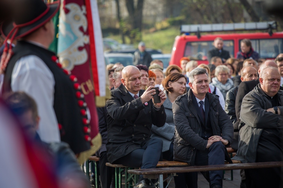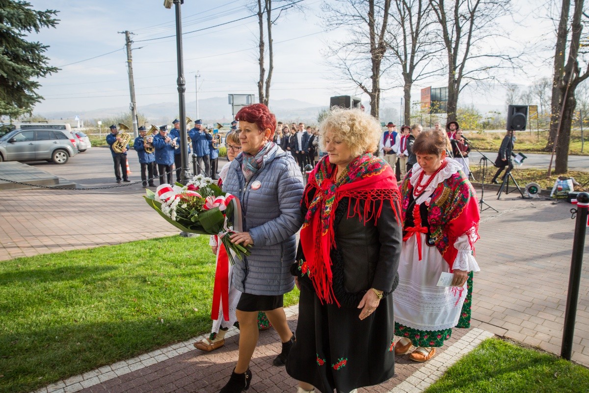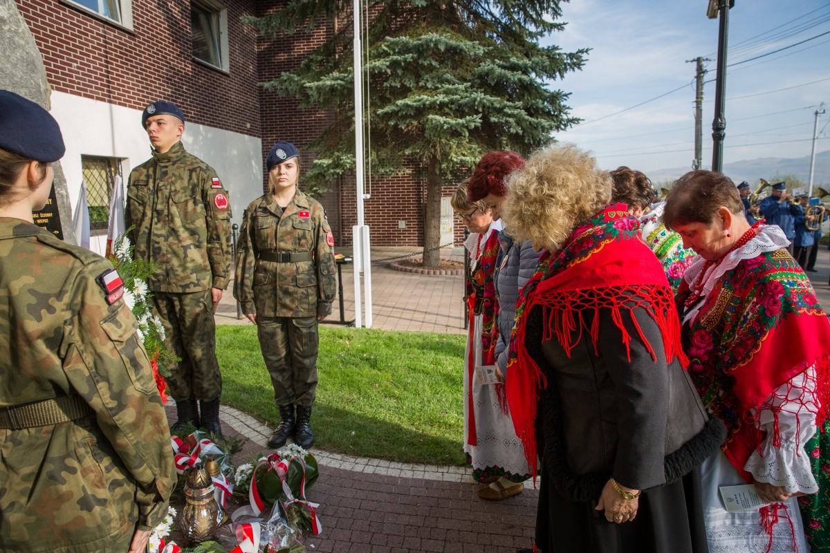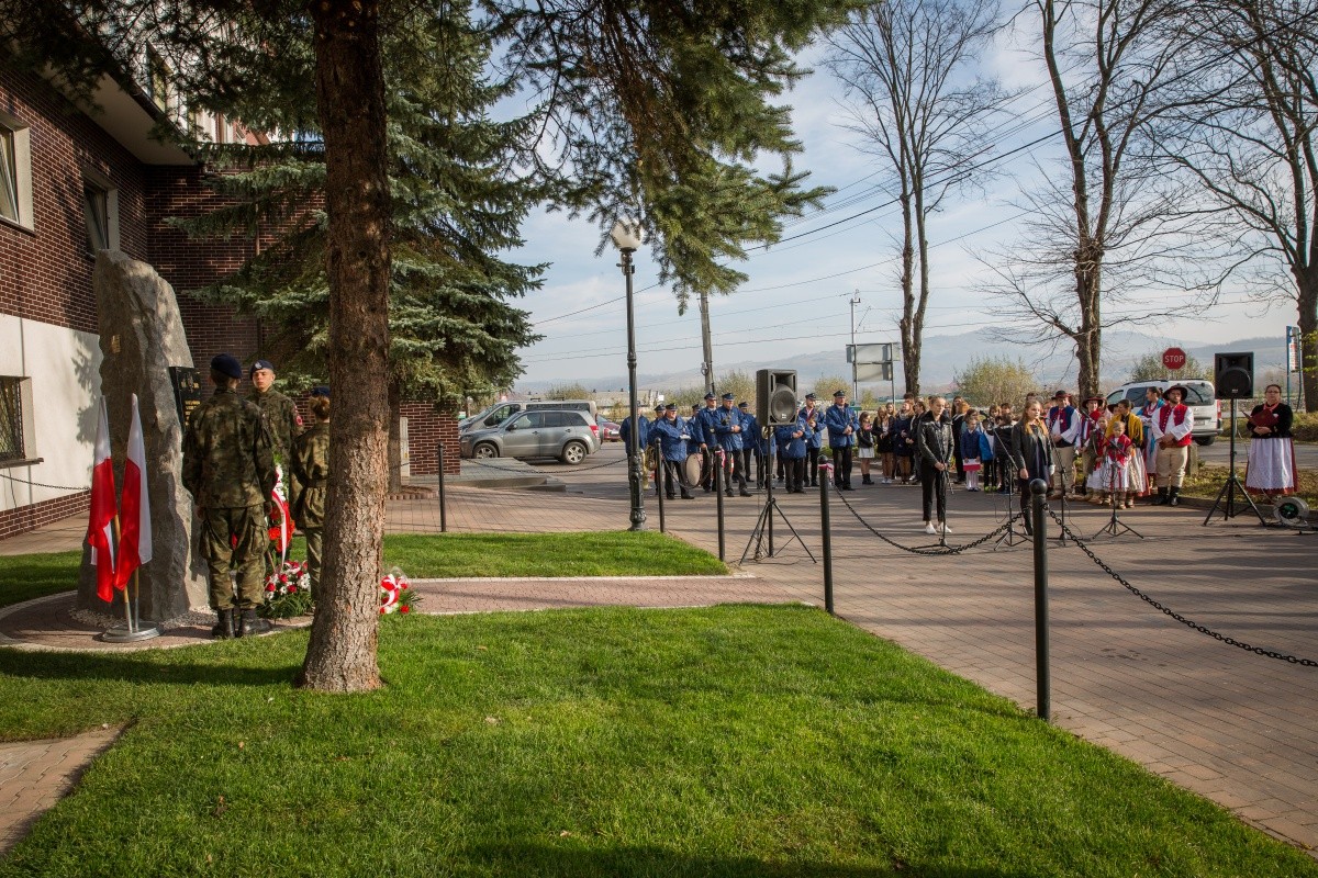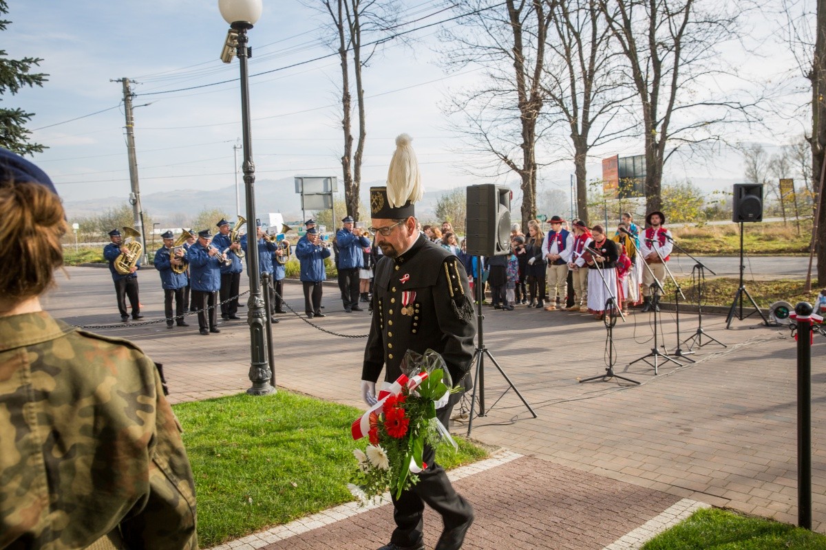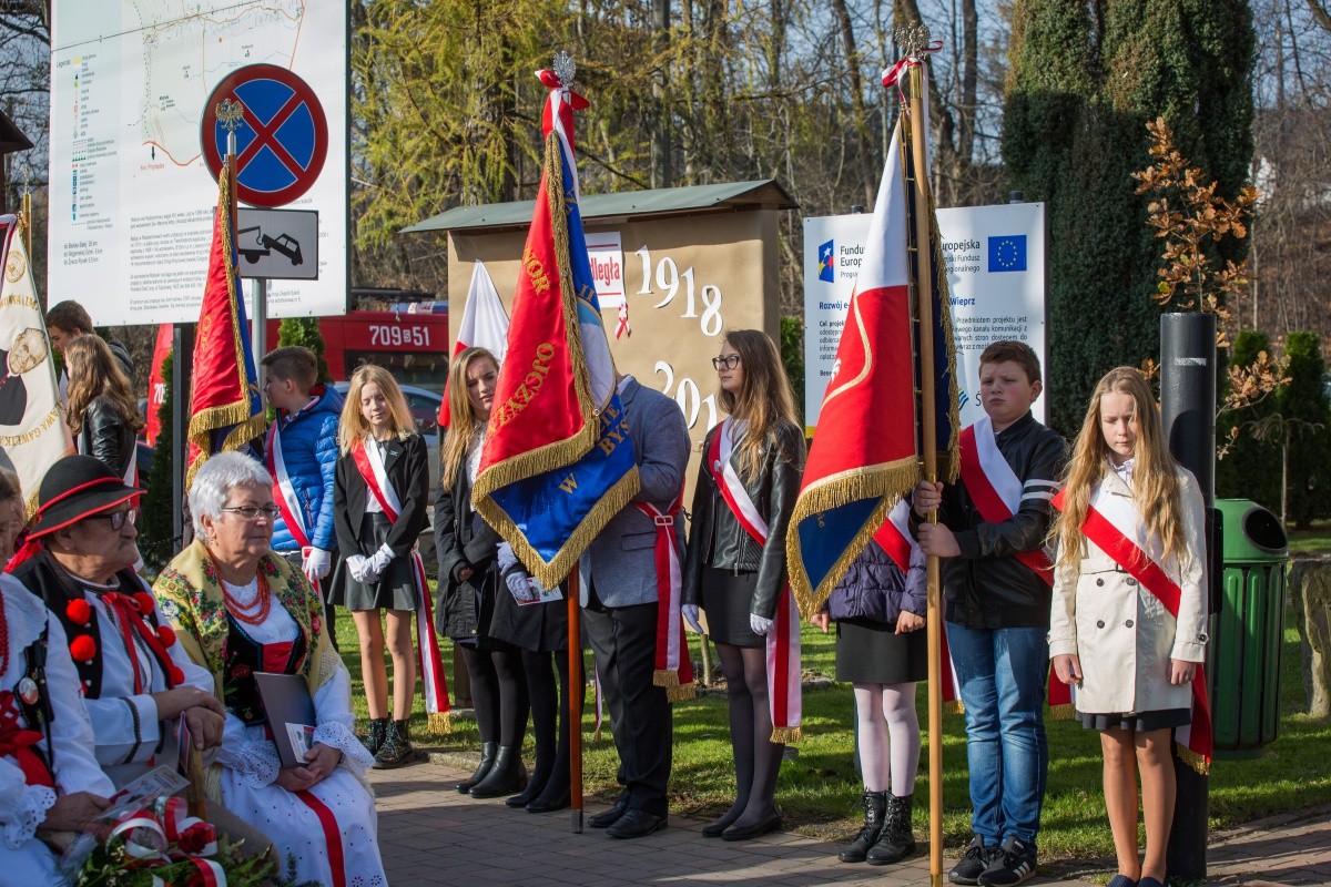W piątek – 9 listopada, ok. godz. 11:00 wybrzmiały dźwięki góralskiej trombity, które oznajmiały rozpoczęcie świętowania. Równo o godz. 11:11 wszyscy obecni na uroczystości goście jednoczyli się z uczniami w szkołach z terenu całej Polski i odśpiewali cztery zwrotki Hymnu Polski, spoglądając na biało – czerwone barwy flagi wznoszonej na maszt. Po części oficjalnej poświęcenia i odsłonięcia Tablicy Pamiątkowej przez Wójta Gminy Radziechowy – Wieprz Macieja Mikę oraz Prezesa Etnobanku Spółdzielczego (który jest współfundatorem tablicy) zaprezentowały się szkoły z naszego terenu. Krótki program artystyczny przeszedł oczekiwania wszystkich widzów i wspaniale wprowadził nas w klimat nadchodzących dni. Swój repertuar zagrała także Orkiestra Dęta z Radziechów, a śpiewem wtórowali im wszyscy przybyli goście oraz inne obecne delegacje organizacji działających na tym terenie. Byli to min.: Związek Podhalan na Żywiecczyźnie, Klub Seniora Wrzos, Zespoły Regionalne, Stowarzyszenie Dzieci Serc, Uczniowie Klas Wojskowych z Liceum w Moszczanicy, Szkoły Podstawowe, Górnicy, Pszczelarze i inni, którzy przybyli tego dnia ze sztandarami, aby uświetnić niezwykłe wydarzenia. Wielu z nich składało kwiaty i zapalało znicze pod pamiątkową tablicą, dedykowaną naszym przodkom. Po południu, tego samego dnia, uczniowie z Przybędzy zapraszali wszystkich mieszkańców na przygotowany przez siebie spektakl pt.: „Droga do Wolności”, zaprezentowanym w Domu Ludowym, którzy zachwycił wszystkich widzów.