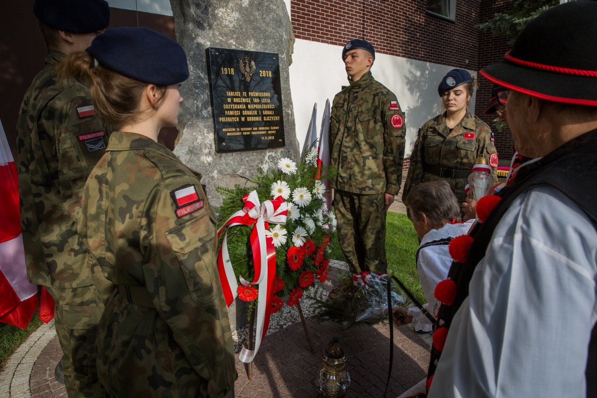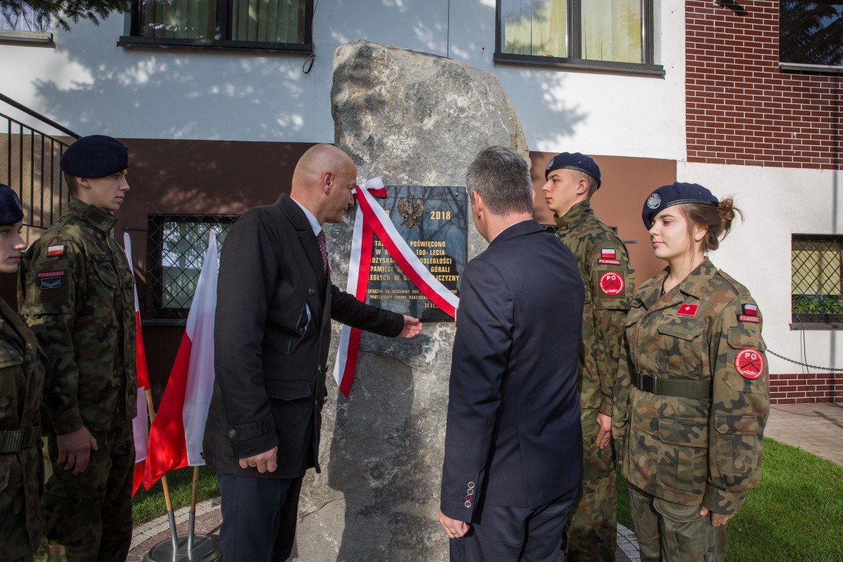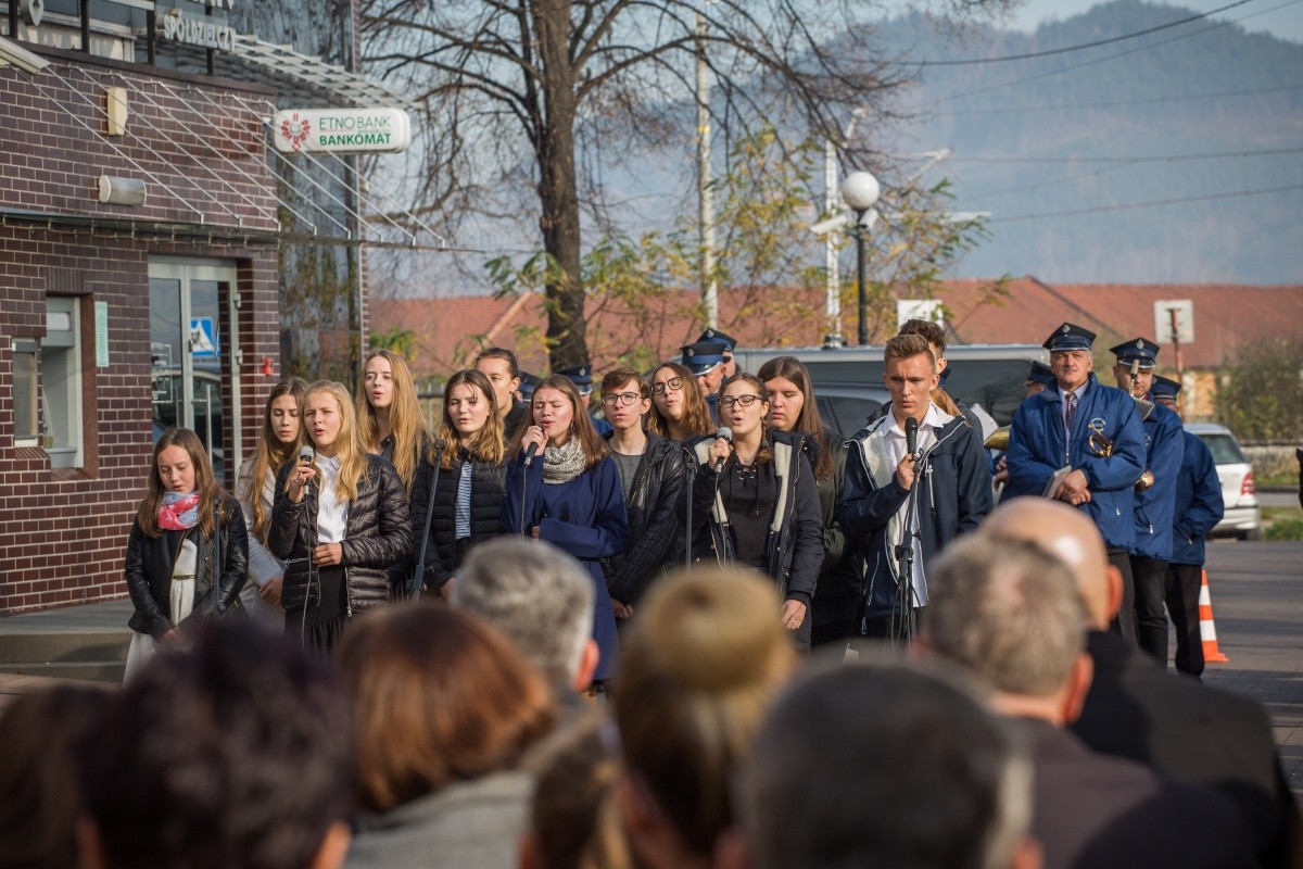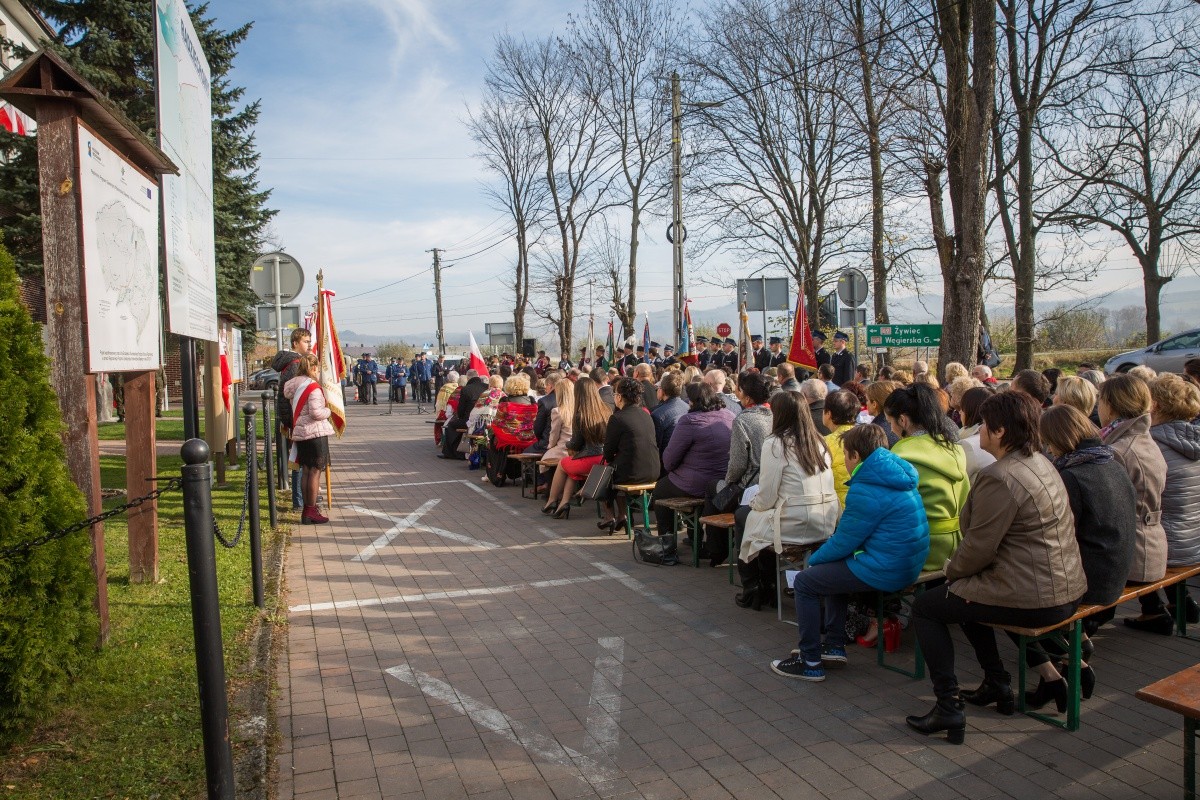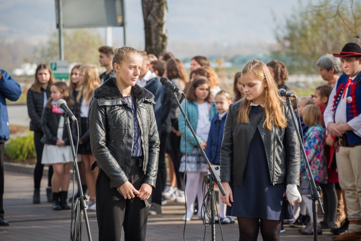 W piątek – 9 listopada, ok. godz. 11:00 wybrzmiały dźwięki góralskiej trombity, które oznajmiały rozpoczęcie świętowania. Równo o godz. 11:11 wszyscy obecni na uroczystości goście jednoczyli się z uczniami w szkołach z terenu całej Polski i odśpiewali cztery zwrotki Hymnu Polski, spoglądając na biało – czerwone barwy flagi wznoszonej na maszt. Po części oficjalnej poświęcenia i odsłonięcia Tablicy Pamiątkowej przez Wójta Gminy Radziechowy – Wieprz Macieja Mikę oraz Prezesa Etnobanku Spółdzielczego (który jest współfundatorem tablicy) zaprezentowały się szkoły z naszego terenu. Krótki program artystyczny przeszedł oczekiwania wszystkich widzów i wspaniale wprowadził nas w klimat nadchodzących dni. Swój repertuar zagrała także Orkiestra Dęta z Radziechów, a śpiewem wtórowali im wszyscy przybyli goście oraz inne obecne delegacje organizacji działających na tym terenie. Byli to min.: Związek Podhalan na Żywiecczyźnie, Klub Seniora Wrzos, Zespoły Regionalne, Stowarzyszenie Dzieci Serc, Uczniowie Klas Wojskowych z Liceum w Moszczanicy, Szkoły Podstawowe, Górnicy, Pszczelarze i inni, którzy przybyli tego dnia ze sztandarami, aby uświetnić niezwykłe wydarzenia. Wielu z nich składało kwiaty i zapalało znicze pod pamiątkową tablicą, dedykowaną naszym przodkom. Po południu, tego samego dnia, uczniowie z Przybędzy zapraszali wszystkich mieszkańców na przygotowany przez siebie spektakl pt.: „Droga do Wolności”, zaprezentowanym w Domu Ludowym, którzy zachwycił wszystkich widzów.