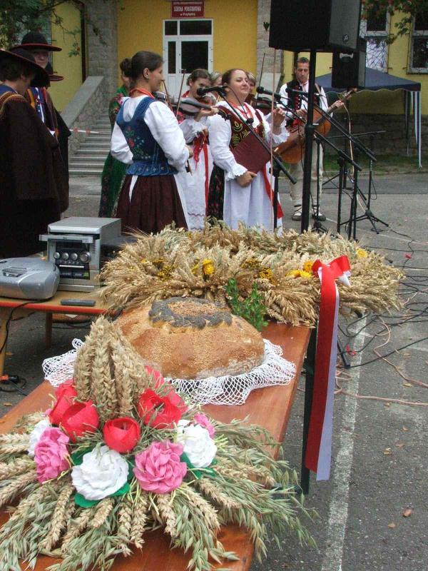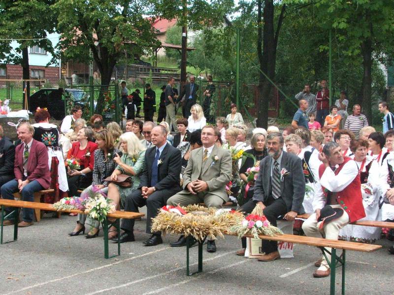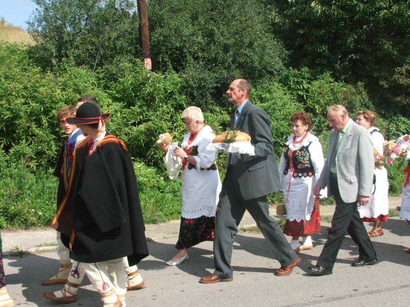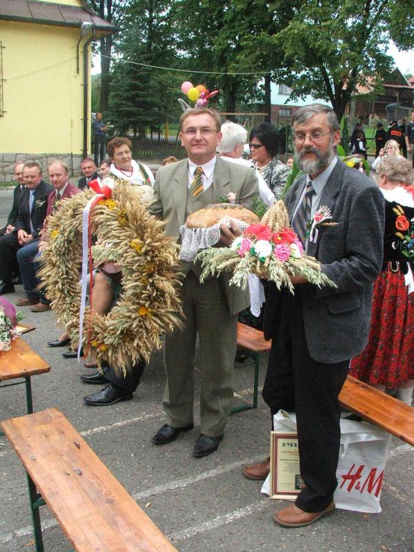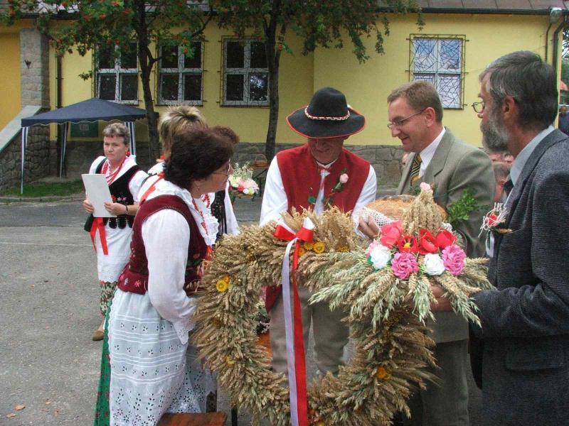 Okolicznościowymi wieńcami i chlebem uhonorowano gości Dożynek: Wójta Gminy Aleksandra Kaletkę, Przewodniczącego Rady Edwarda Dudka, delegację zaprzyjaźnionej gminy Mieroszów, Irenę Syposz, Zofię Barcik, radnego Janusza Słowego, delegację ODR i innych zaproszonych gości.