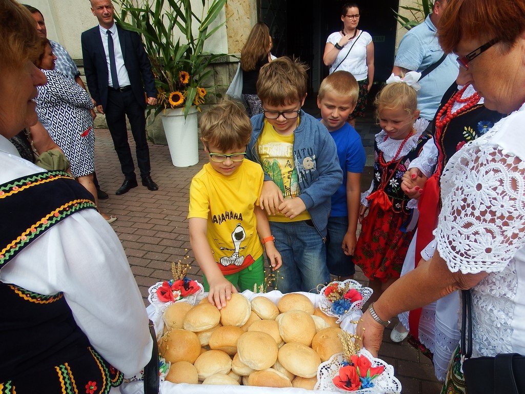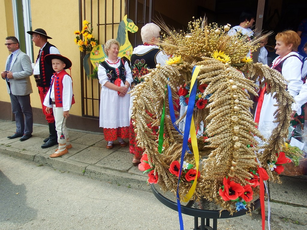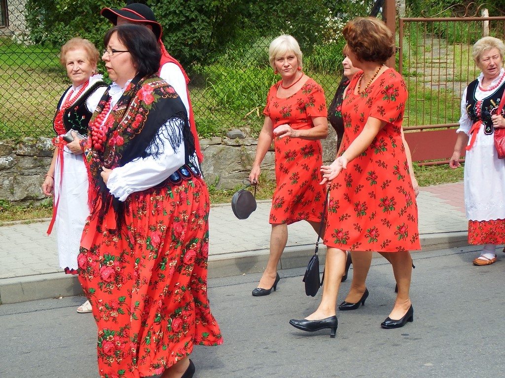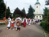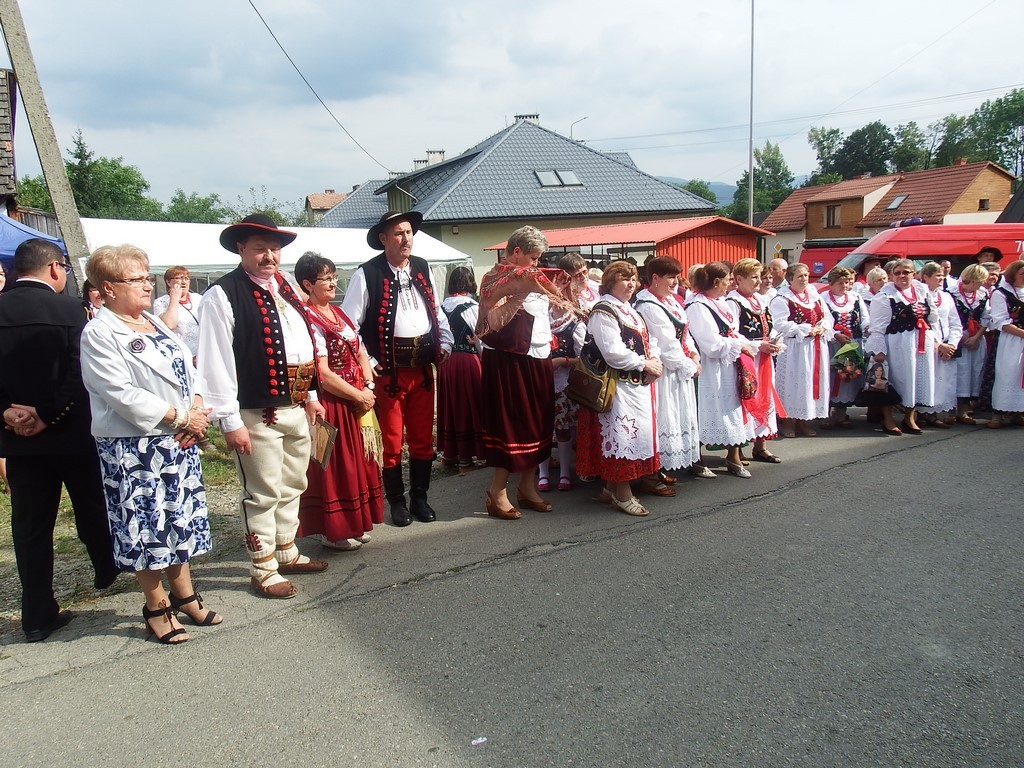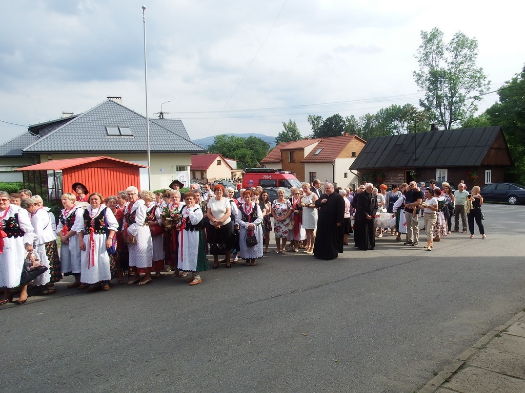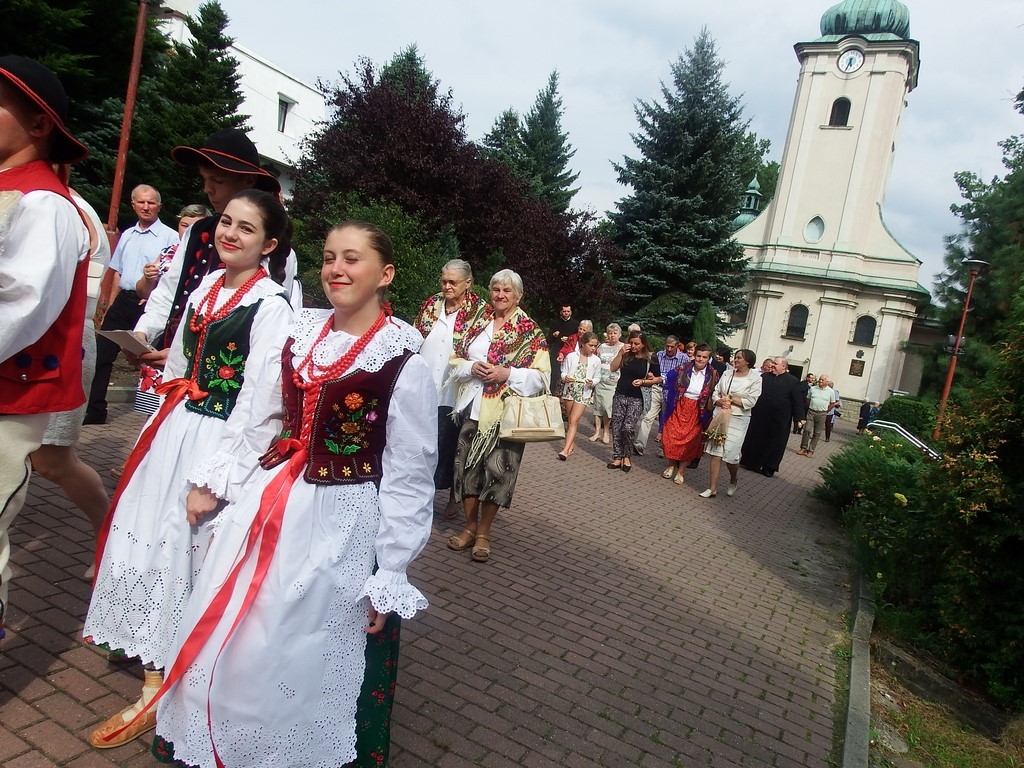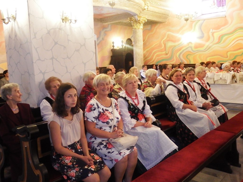 Dożynkowy korowód w marszowych rytmach prowadziła do kościoła Orkiestra Dęta OSP Radziechowy, przy udziale pocztów sztandarowych OSP z Radziechów i Przybędzy oraz Związku Podhalan, przedstawicieli Zespołu Pieśni i Tańca „GROJCOWIANIE”, „JODEŁEK”, delegacji Kół Gospodyń z całej gminy, zaproszonych gości, radnych, sołtysów, sponsorów, i mieszkańców Radziechów. Wszyscy w dożynkowej scenerii, uczestniczyli w uroczystej Mszy Św., którą wraz z Ks. Proboszczem Piotrem Pokojnikowem, celebrowało 5 księży.