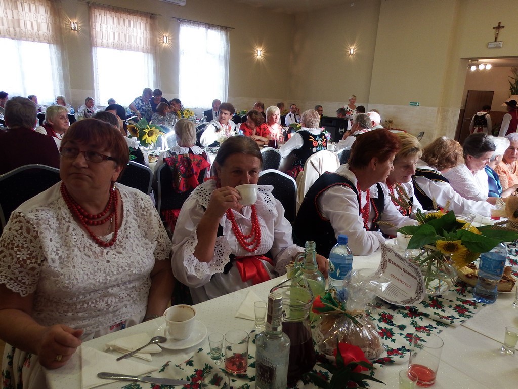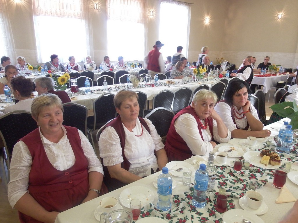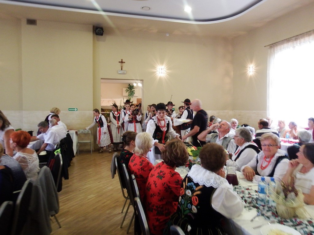 Orkiestra Dęta dała koncert przed salą domu ludowego, a w tym czasie wszyscy zgromadzeni, zostali zaproszeni na obiad do pięknie udekorowanej sali. Wnętrze domu ludowego zdobiła dodatkowo wspaniała wystawa dożynkowa.