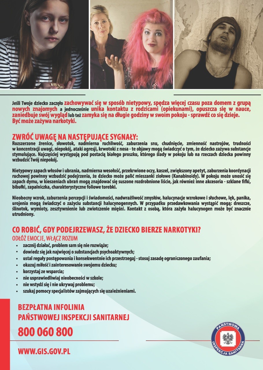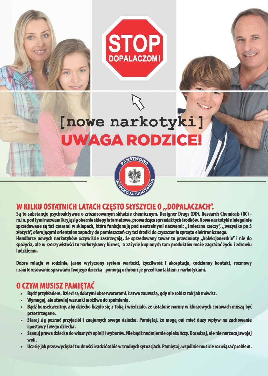 Państwowy Powiatowy Inspektor Sanitarny w Żywcu w związku ze zbliżającym się okresem wakacyjnym, ku przestrodze młodzieży przed stosowaniem środków zastępczych (dopalaczy) rozpowrzechnia ulotki oraz plakaty, które wspomagają nasze wspólne działania z problemem dopalaczy.
