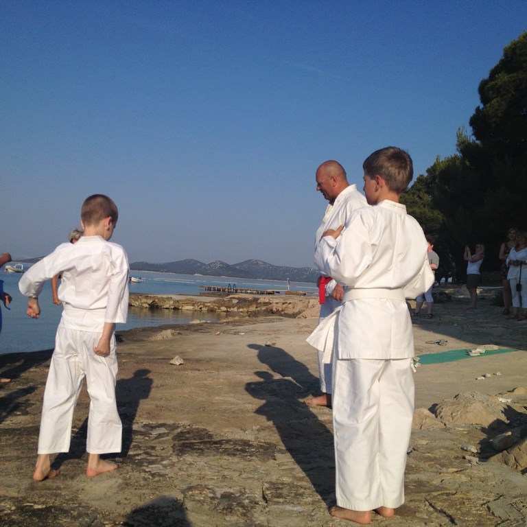 Obcując z nadmorską naturą, przy pięknej pogodzie, młodzi adepci sportów i sztuk walki łączyli przyjemne z pożytecznym, łącząc zajęcia treningowe z klasycznym wypoczynkiem czyli kąpielami i plażowaniem. Na campingu „Rena - Nina” w miejscowości Pakostane wzbudzali żywe zaciekawienie wśród różnojęzycznych turystów.