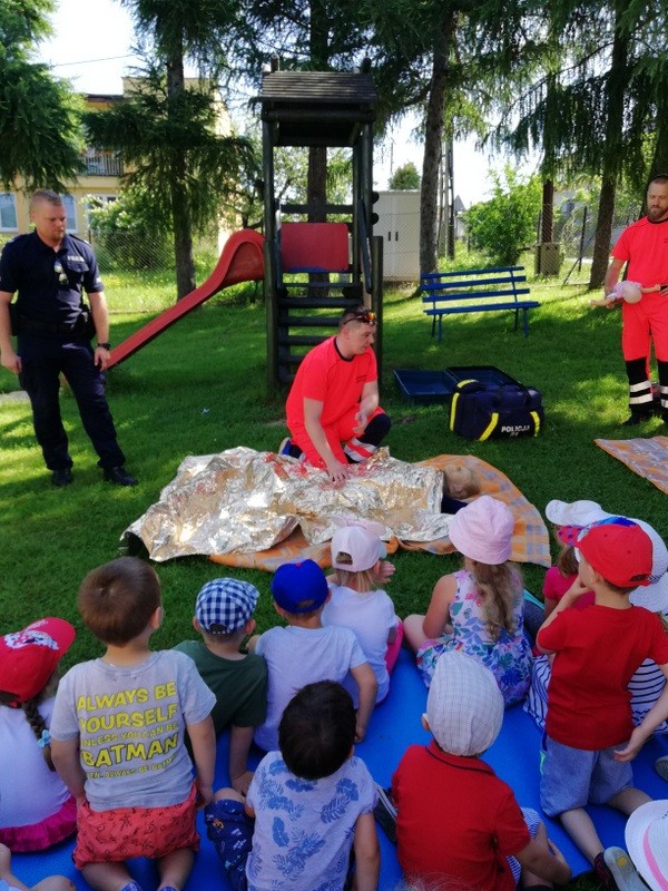 Wakacje dla przedszkolaków już tuż, tuż i wszyscy pragniemy, aby dzieci wróciły po nich do przedszkola zdrowe, wypoczęte i pełne zapału do zabawy. Dlatego też 11 czerwca 2019r. w naszym przedszkolu odbyły się warsztaty dla dzieci pod hasłem "Bezpieczne wakacje". Warsztaty przeprowadzili funkcjonariusze policji z Samodzielnego Pododdziału Prewencji Policji w Bielsku-Białej. Zgodnie z tytułem warsztatów ich nadrzędnym celem było przygotowanie przedszkolaków do "Bezpiecznych wakacji". Dzieci kolejny już raz wzbogacały wiedzę i umiejętności z zakresu zasad ruchu drogowego, bezpiecznej zabawy w domu, ogrodzie czy nad zbiornikiem wodnym. Uczyły się wykonywania prostych czynności udzielania pierwszej pomocy oraz prawidłowego zachowania się w czasie wypadku, w sytuacjach zagrożenia życia lub zdrowia swojego i innych.
