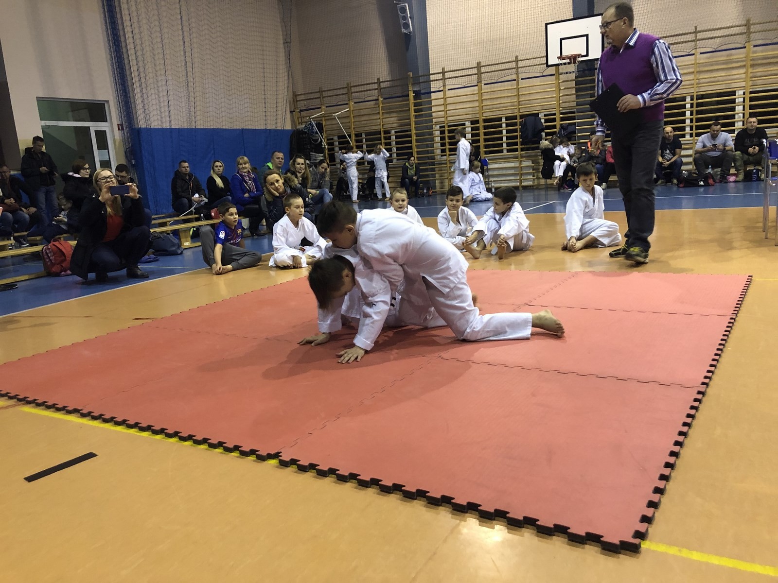 Klub Arawashi z sukcesami realizuje pasje młodzieży w sporcie karate-shotokan na obszarze naszej gminy, już pisano nierzadko, jak nasi młodzi karatecy walczyli zdobywali medale jak w kraju tak zagranicą. Tym razem w zorganizowanym w Wieprzu turnieju, w którym wzięli udział najlepsi zawodnicy klubów z naszego powiatu. Wprawdzie czasy kiedy nasi praprzodkowie walczyli na ciupagi odeszły w zapomnienie (… choć nie zawsze i nie wszędzie !), teraz młode pokolenie, dalecy potomkowie Hetmanów Zbójnickich walczyli o jakże cenne i wartościowe nagrody. Karatecy rywalizowali w dwóch konkurencjach walk kumite oraz układów technik kata, gdzie w konkurencji open toczyły się zażarte boje, których celem było zdobycie atrakcyjnych nagród i ciekawych publikacji książkowych. Na turniej przybyli tłumnie rodzice kibicując swoim faworytom sportowym oraz przedstawicielki lokalnych władz, gościnnie był również radny Gminy Rajcza Dariusz Płoskonka. Podkreślić należy, że turniej odbył się pod honorowym patronatem Wójta Gminy Radziechowy-Wieprz Pana Macieja Miki. Podczas zawodów „Arawashi” wystawiło do rywalizacji młodych, nowych zawodników, tworzących wyśmienity wspierający się team klubu wśród których jest Julia Kachel, być może w przyszłości talent na skalę międzynarodową. Nie były to łatwe pojedynki, a o zwycięstwo zażarcie przyszło walczyć do samego końca, silne emocje, pot, łzy – to nieodłączne elementy rywalizacji w karate. Wielkie klaskania należą się młodym klubowiczom z drużyny Arawashi, którzy rozpoczęli treningi we wrześniu tego roku i przecierali swój waleczny szlak – to naprawdę był dla nich rozkoszny stres, startować w doborowym towarzystwie doświadczonych karateków. Dało się odczuć, że starszaki łatwo nie dadzą sobie odebrać trofeów.