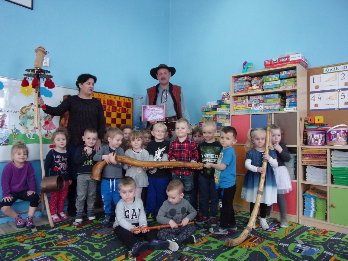 Warsztaty muzyczne przeprowadzone przez Panią Brygidę Murańską i Pana Grzegorza Brodkę w dniach 25 i 26 marca 2019r. sprawiły wiele radości przedszkolakom i ich wychowawczyniom. Serdecznie dziękujemy za poświęcony czas i chęć dzielenia się swoją pasją, za wsparcie w poznawaniu i pielęgnowaniu pięknych tradycji regionalnych.