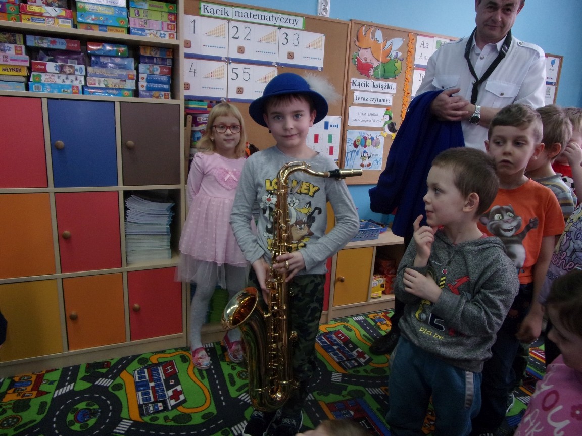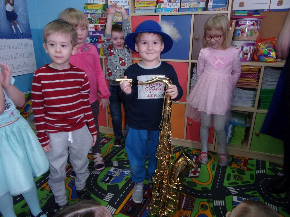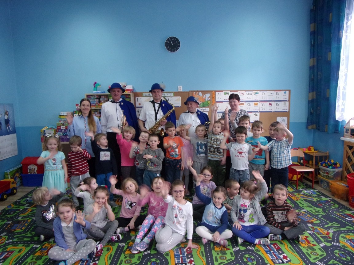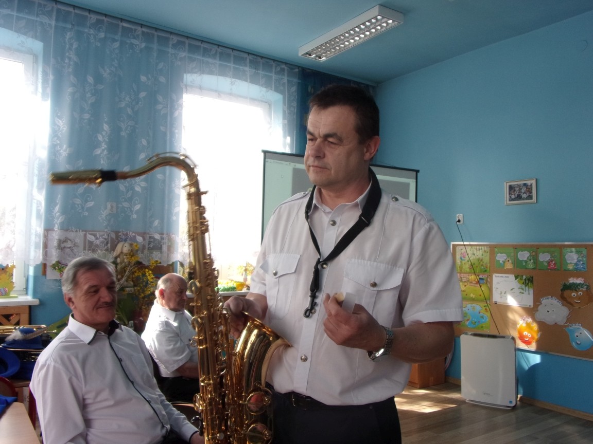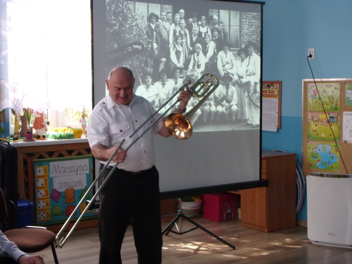 Potem nastały wyjątkowo ciężkie dla Radziechów czasy II wojny światowej. Również powojenny czas nie sprzyjał dobrej organizacji orkiestry. Pan Stanisław Koźbiał puzonista , chyba najstarszy członek orkiestry opowiedział o początkach swojej muzycznej drogi. W czasach jego dzieciństwa nie było szkoły muzycznej. Jako 9-letni chłopiec uczęszczał na naukę gry do Domu Harcerza w Żywcu. Panowie Bogusław Michalski i Zdzisław Piecuch mieli już możliwość uczęszczania do Szkoły Muzycznej. Przez wiele lat po wojnie prężnie działała orkiestra dęta przy Zakładach Papierniczych „Solali” w Żywcu, która składała się w przeważającej części z radziechowian. Po jej rozwiązaniu muzycy zorganizowali się przy OSP w Radziechowach pod kierownictwem najpierw Andrzeja Króla, a potem Dariusza Jurasza. Pan Dariusz Jurasz od 2001r. do dzisiaj pełni funkcję kapelmistrza. Spotkanie przebiegło w bardzo miłej atmosferze. Znacząco poszerzyła się wiedza przedszkolaków na temat instrumentów dętych. Pan Bogusław pięknie opowiedział dzieciom o zaletach trąbki, Pan Zdzisław zaprezentował wyjątkowe brzmienie saksofonu. Motywy z bajek dla dzieci grane przez Pana Stanisława na puzonie wywołały zachwyt przedszkolaków.
