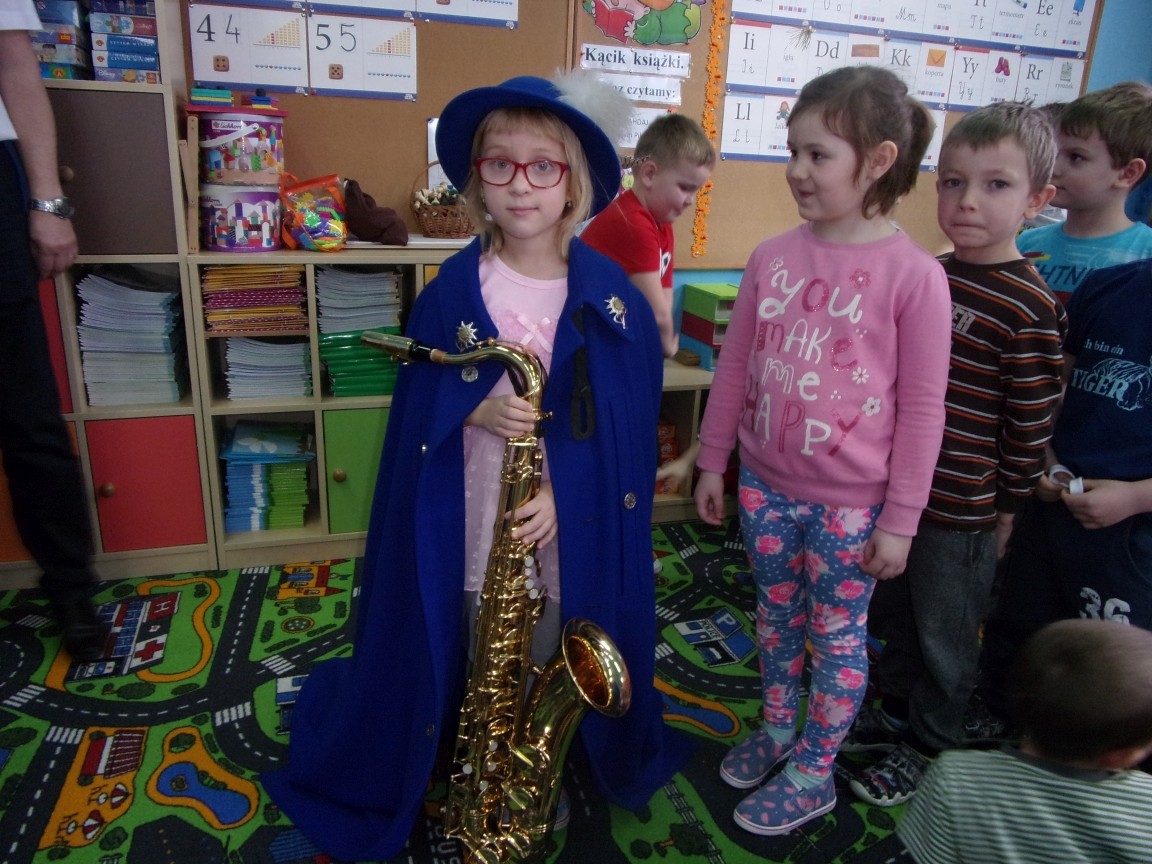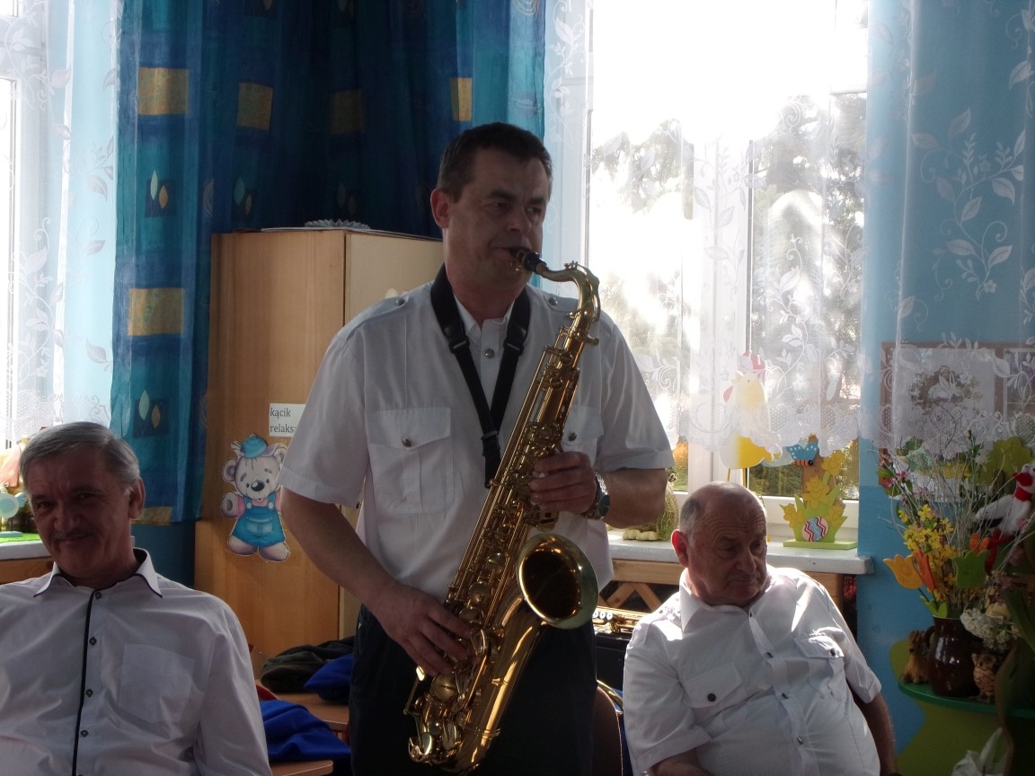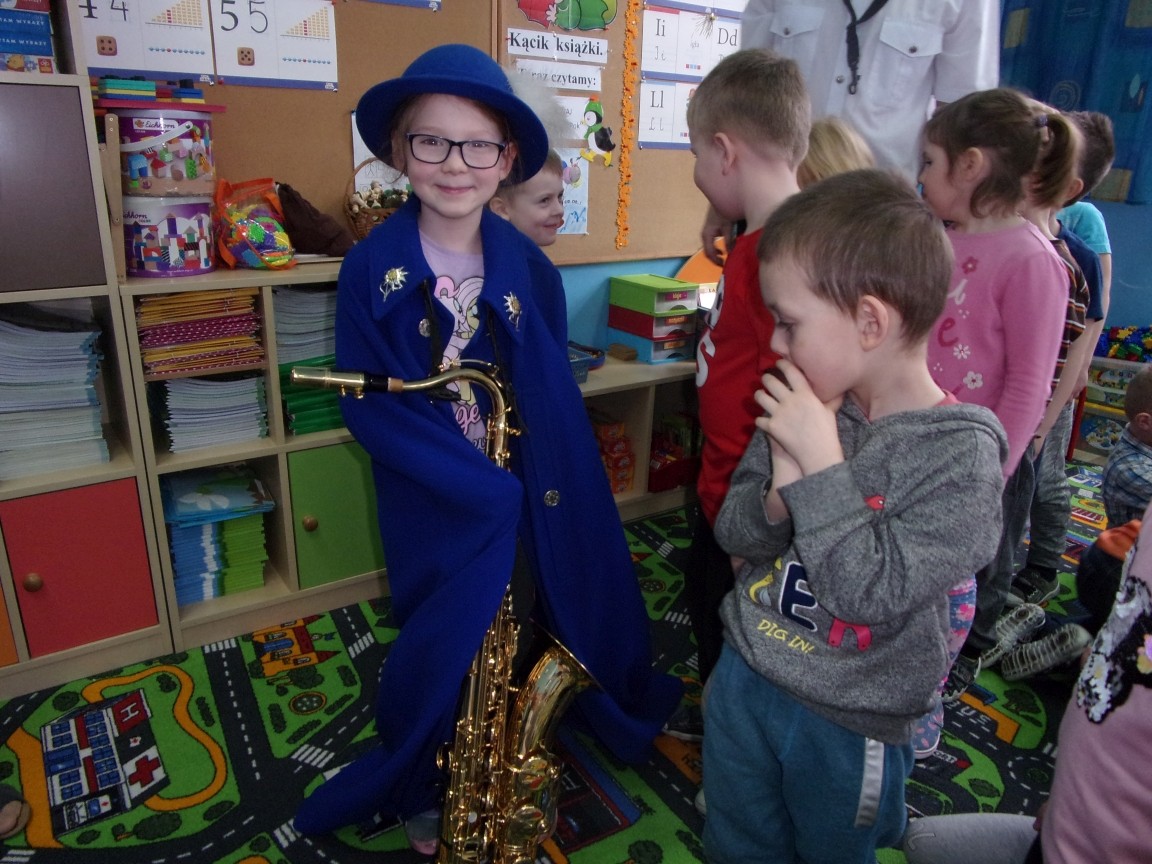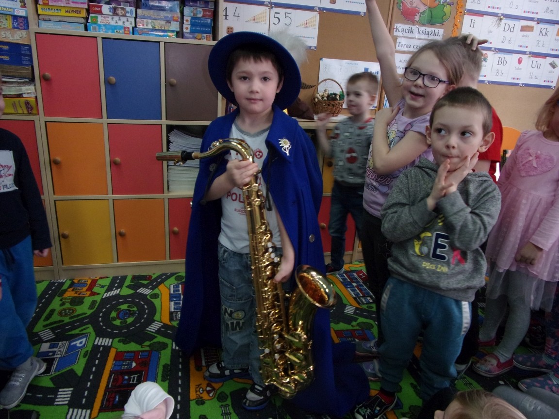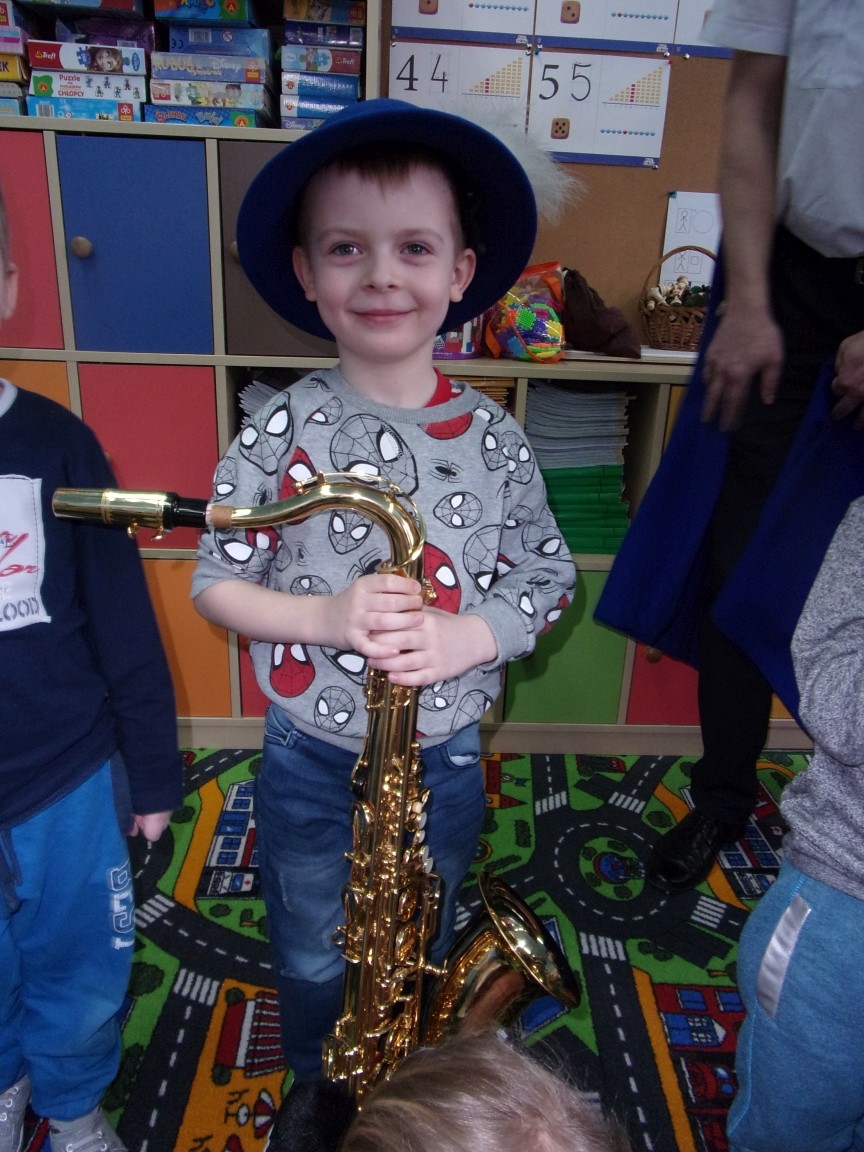 Potem nastały wyjątkowo ciężkie dla Radziechów czasy II wojny światowej. Również powojenny czas nie sprzyjał dobrej organizacji orkiestry. Pan Stanisław Koźbiał puzonista , chyba najstarszy członek orkiestry opowiedział o początkach swojej muzycznej drogi. W czasach jego dzieciństwa nie było szkoły muzycznej. Jako 9-letni chłopiec uczęszczał na naukę gry do Domu Harcerza w Żywcu. Panowie Bogusław Michalski i Zdzisław Piecuch mieli już możliwość uczęszczania do Szkoły Muzycznej. Przez wiele lat po wojnie prężnie działała orkiestra dęta przy Zakładach Papierniczych „Solali” w Żywcu, która składała się w przeważającej części z radziechowian. Po jej rozwiązaniu muzycy zorganizowali się przy OSP w Radziechowach pod kierownictwem najpierw Andrzeja Króla, a potem Dariusza Jurasza. Pan Dariusz Jurasz od 2001r. do dzisiaj pełni funkcję kapelmistrza. Spotkanie przebiegło w bardzo miłej atmosferze. Znacząco poszerzyła się wiedza przedszkolaków na temat instrumentów dętych. Pan Bogusław pięknie opowiedział dzieciom o zaletach trąbki, Pan Zdzisław zaprezentował wyjątkowe brzmienie saksofonu. Motywy z bajek dla dzieci grane przez Pana Stanisława na puzonie wywołały zachwyt przedszkolaków.