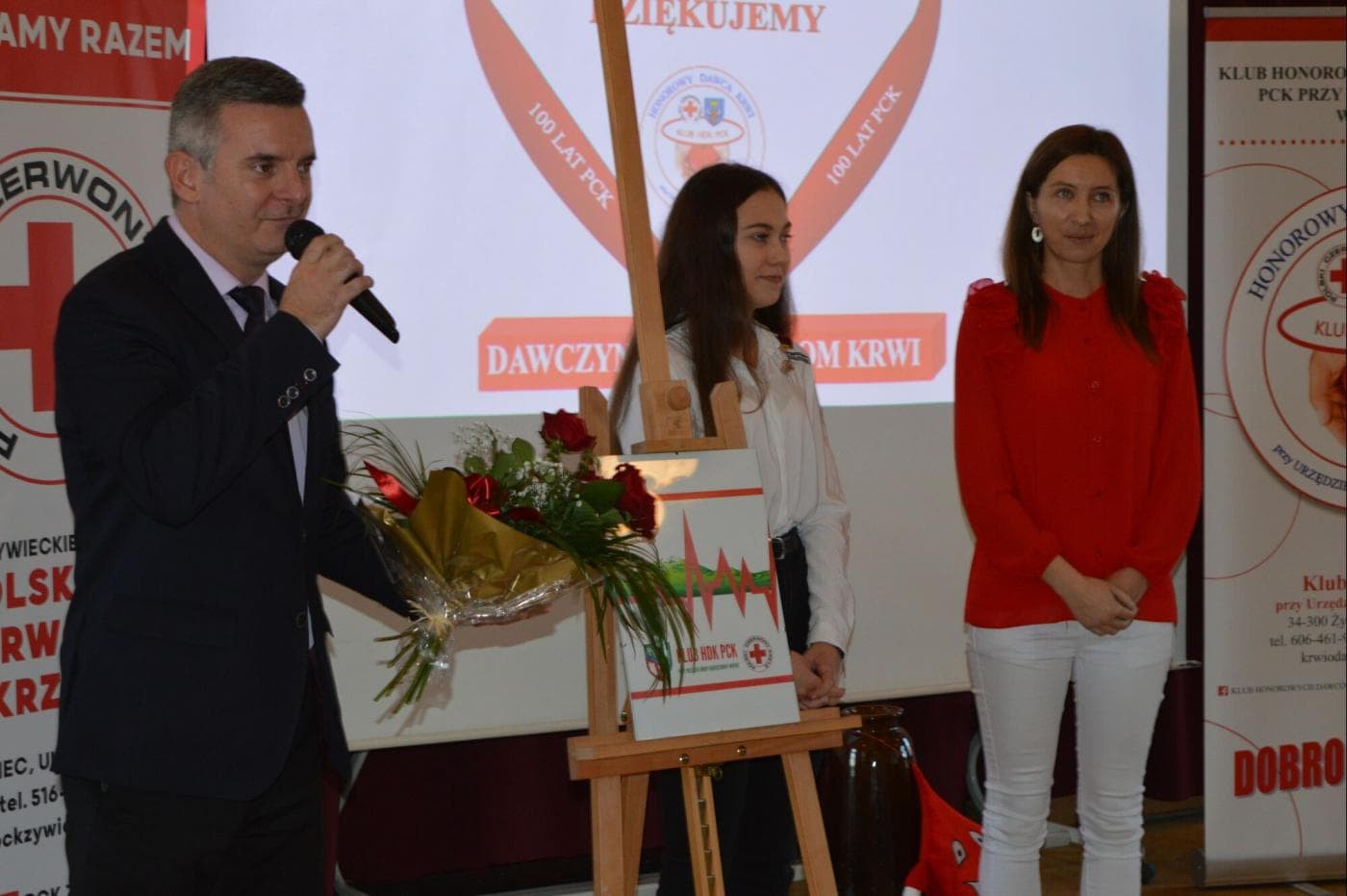 15 listopada podczas obchodów 100-lecia Polskiego Czerwonego Krzyża w Zespole Szkół Ekonomiczno-Gastronomicznych, w Żywcu, miało miejsce oficjalne odsłonięcie logo Klubu Honorowych Dawców Krwi PCK przy Urzędzie Gminy Radziechowy-Wieprz. Aktu tego dokonał włodarz naszej Gminy wójt Maciej Mika wraz z Gabrielą Pieczarką, Prezesem Klubu.