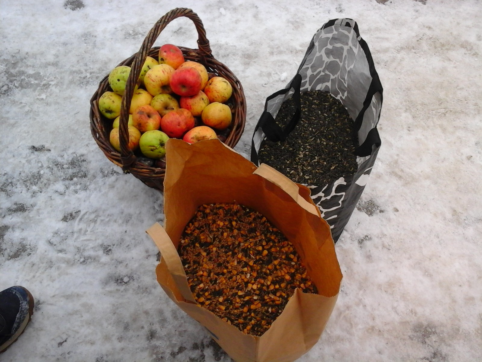 Były: worki z sianem, jabłka, buraki, marchew, ziemniaki, kukurydza, ziarna zbóż, żołędzie oraz kasztany.