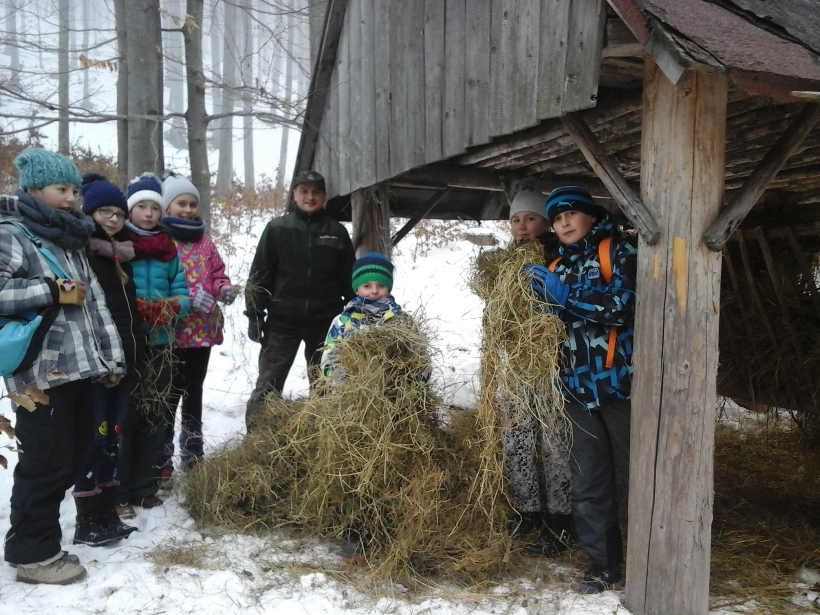 W drugim tygodniu ferii zgromadzoną karmę uczniowie przekazali na ręce Pana Leśniczego Leśnictwa Morońka Janusza Rubys, wraz z którym saniami wyruszyli do lasu w Twardorzeczce. Potem udali się do paśnika, aby osobiście przygotować prawdziwą ucztę dla zwierząt, a także nauczyć się rozpoznawać ich tropy na śniegu. Następnie młodzi miłośnicy przyrody wysłuchali prelekcji na temat dokarmiania zwierzyny leśnej przez leśników i myśliwych oraz pracy w lesie, której mogli osobiście się przyjrzeć.