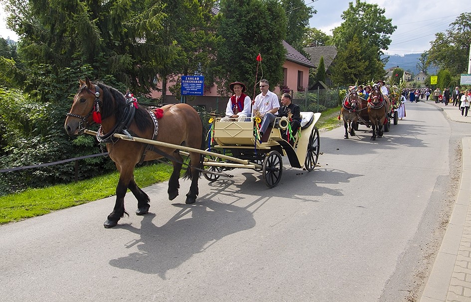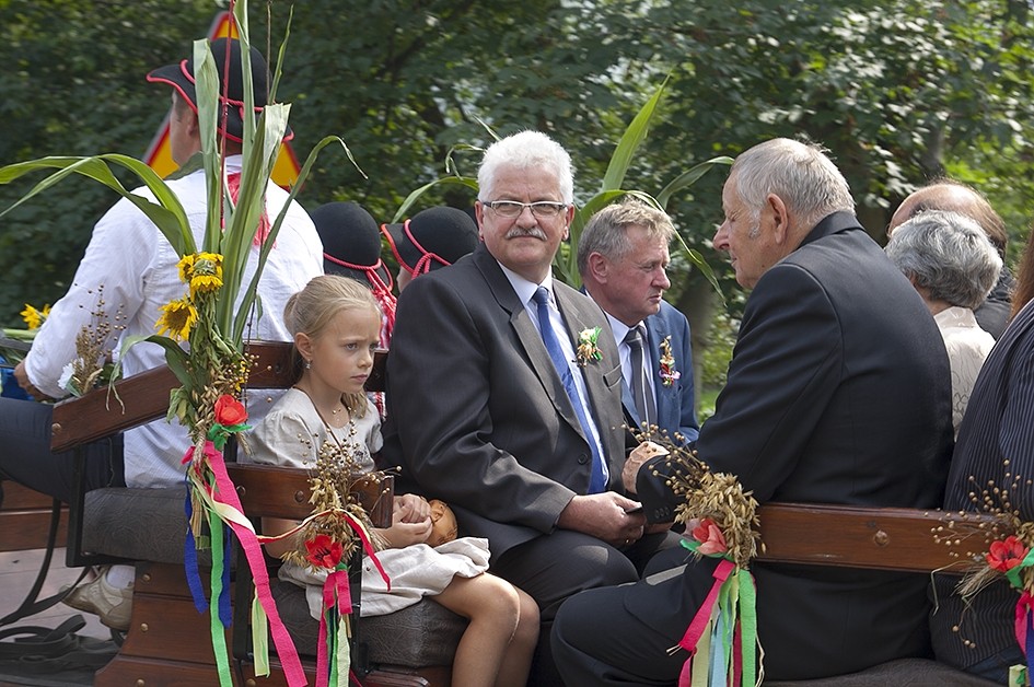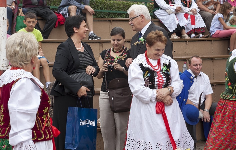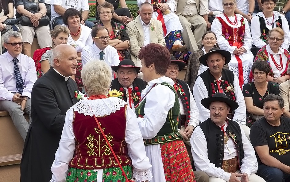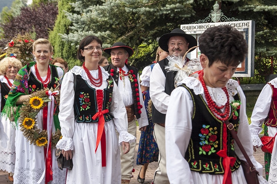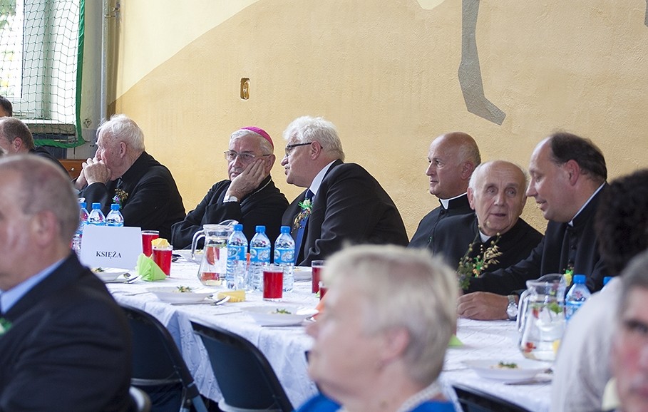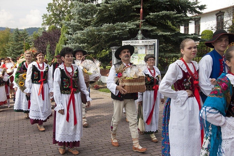 Tłoczno i uroczyście było na sobotniej dziękczynnej Mszy Świętej o godzinie 12.00 w Radziechowach. Rolnicy, Koła Gospodyń Wiejskich, a także przedstawiciele Ochotniczej Straży Pożarnej i Związku Podhalan wraz z władzami Gminy Radziechowy-Wieprz i zaproszonymi gośćmi wnieśli do świątyni dary i gorące podziękowania, za każdy plon zrodzony w tym trudnym dla rolników roku. Posługę kapłańską tego dnia sprawowali proboszczowie wszystkich parafii na terenie naszej gminy na czele z witającym gości ks. Ryszadrem Kubasiakiem, proboszczem Parafii Radziechowskiej. Pouczające kazanie tego dnia wygłosił gościnnie przewodniczący sprawowaniu Eucharystii Biskup Tadeusz Pieronek. Gdy dobiegły końca uroczystości w Kościele pw. św. Marcina w Radziechowach, odbyło się jeszcze uroczyste poświęcenie nowego samochodu strażackiego zakupionego pod koniec sierpnia przez OSP w Radziechowach. Po zakończeniu religijnej części obchodów Dożynek długi korowód prowadzony przez Orkiestrę Dętą z Radziechów powędrował w stronę Zespołu Szkół im. ks. prał. Stanisława Gawlika w Radziechowach, gdzie na gości czekał wyśmienity obiad oraz liczne atrakcje. Część artystyczną programu otworzyło tradycyjne przekazanie przez tegorocznych starostów dożynek – państwa Monikę i Sebastiana Rybarskich – chleba i miodu Panu Grzegorzowi Figurze Wójtowi Gminy Radziechowy-Wieprz.