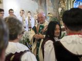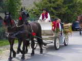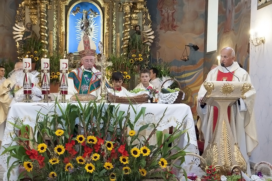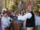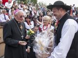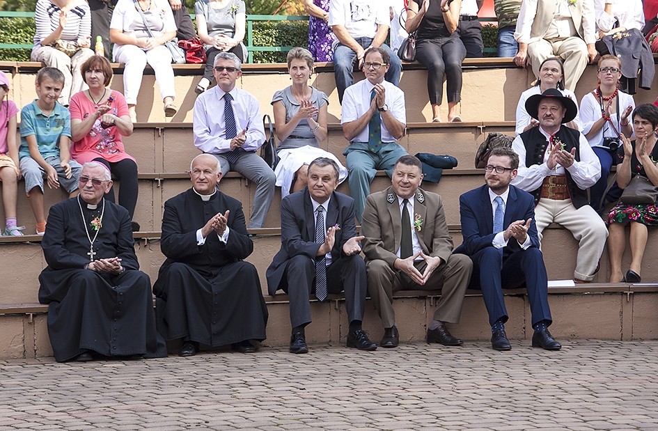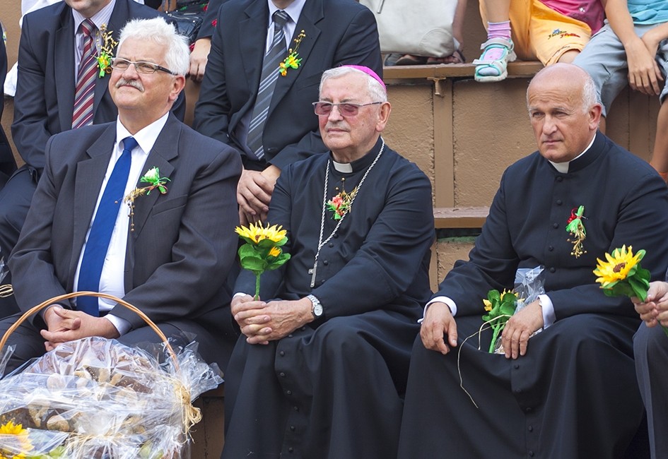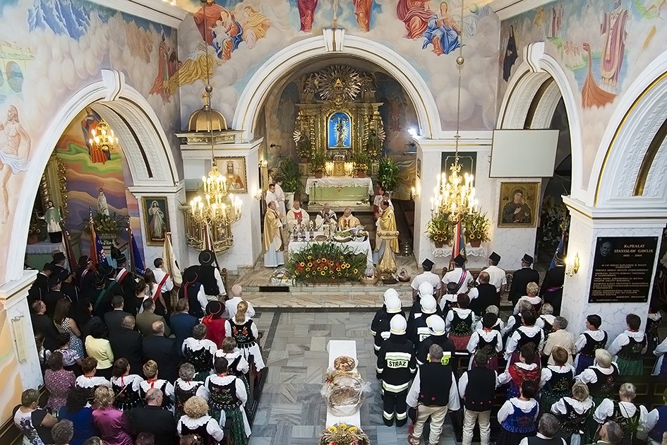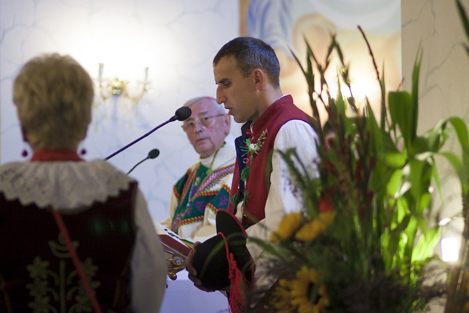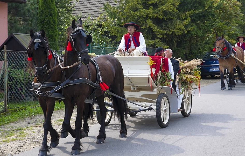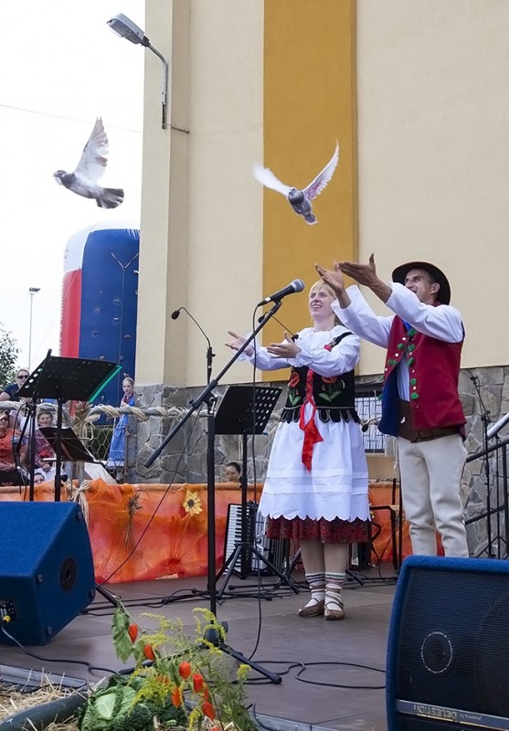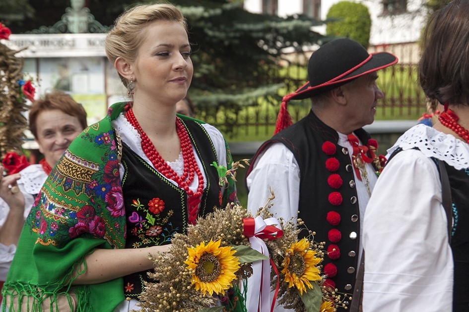 Tłoczno i uroczyście było na sobotniej dziękczynnej Mszy Świętej o godzinie 12.00 w Radziechowach. Rolnicy, Koła Gospodyń Wiejskich, a także przedstawiciele Ochotniczej Straży Pożarnej i Związku Podhalan wraz z władzami Gminy Radziechowy-Wieprz i zaproszonymi gośćmi wnieśli do świątyni dary i gorące podziękowania, za każdy plon zrodzony w tym trudnym dla rolników roku. Posługę kapłańską tego dnia sprawowali proboszczowie wszystkich parafii na terenie naszej gminy na czele z witającym gości ks. Ryszadrem Kubasiakiem, proboszczem Parafii Radziechowskiej. Pouczające kazanie tego dnia wygłosił gościnnie przewodniczący sprawowaniu Eucharystii Biskup Tadeusz Pieronek. Gdy dobiegły końca uroczystości w Kościele pw. św. Marcina w Radziechowach, odbyło się jeszcze uroczyste poświęcenie nowego samochodu strażackiego zakupionego pod koniec sierpnia przez OSP w Radziechowach. Po zakończeniu religijnej części obchodów Dożynek długi korowód prowadzony przez Orkiestrę Dętą z Radziechów powędrował w stronę Zespołu Szkół im. ks. prał. Stanisława Gawlika w Radziechowach, gdzie na gości czekał wyśmienity obiad oraz liczne atrakcje. Część artystyczną programu otworzyło tradycyjne przekazanie przez tegorocznych starostów dożynek – państwa Monikę i Sebastiana Rybarskich – chleba i miodu Panu Grzegorzowi Figurze Wójtowi Gminy Radziechowy-Wieprz.