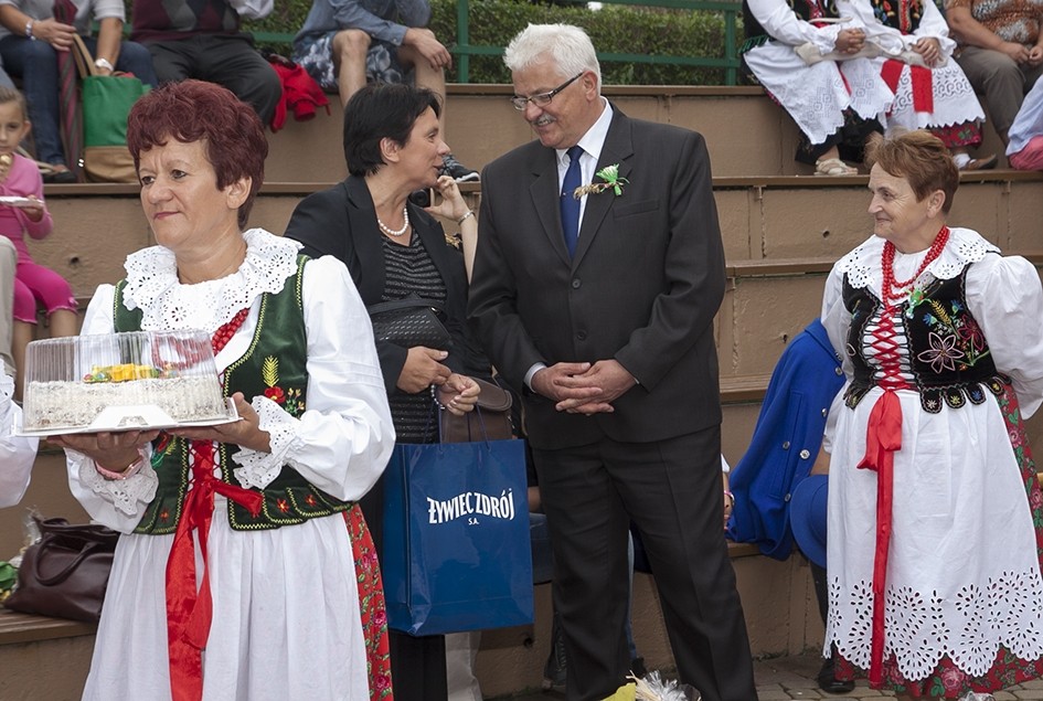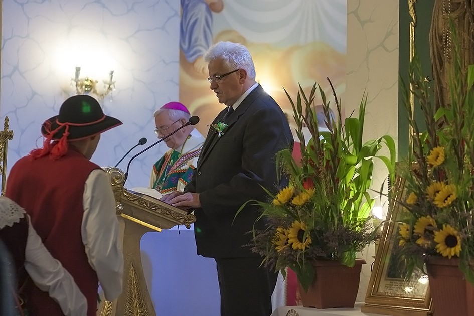 - 16 lat temu po reformie administracyjnej kraju pierwsze dożynki diecezjalno-powiatowo-gminne odbyły się właśnie tutaj wraz ze świętej pamięci ks. prałatem Stanisławem Gawlikiem. Dziś mogę tutaj powrócić do Gminy, która przez ten czas zdała samorządowy egzamin i rozwijała się wspaniale. – mówi w krótkim przemówieniu przybyły Starosta Żywiecki Andrzej Zieliński.