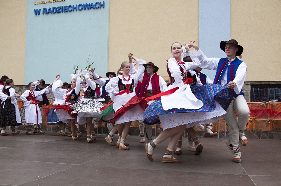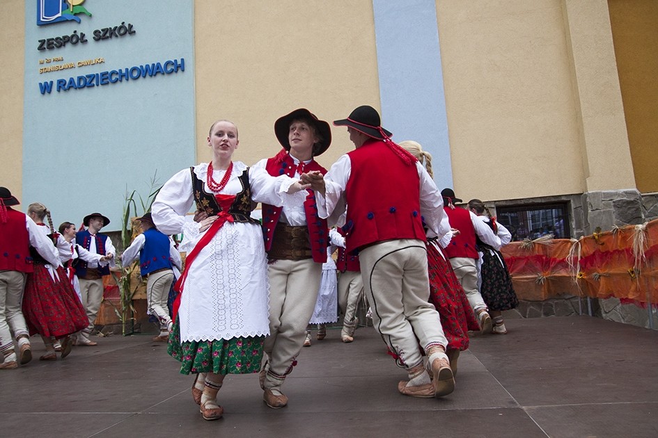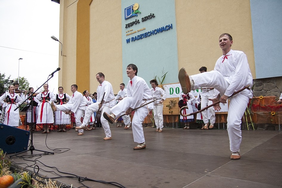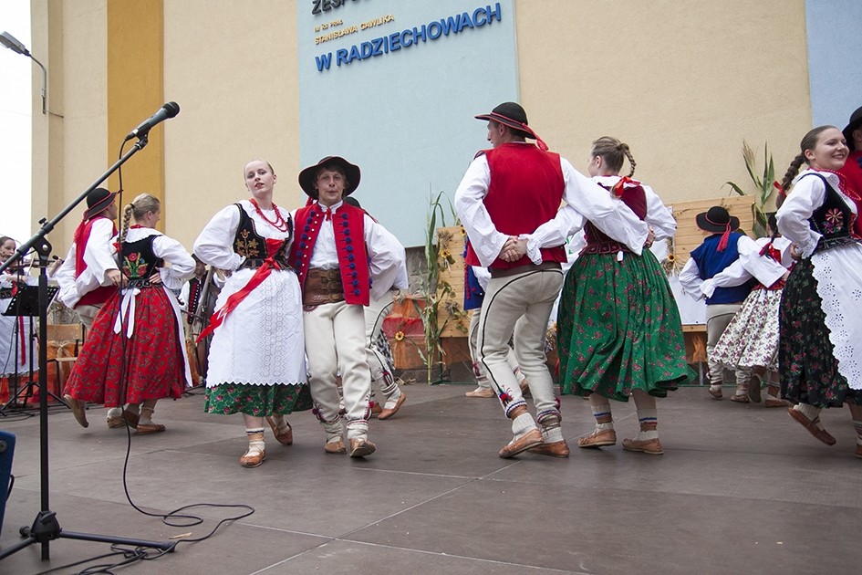 Na scenie tego dnia wystąpiły Panie z Koła Gospodyń Wiejskich w Radziechowach z poezją i tradycyjnymi przyśpiewkami, którym towarzyszyło wręczanie chleba gościom i sponsorom tegorocznych dożynek. Zagrali i tańczyli dla zebranych tego dnia także członkowie Zespołu Pieśni i Tańca „Jodełki” prezentując się na scenie aż trzykrotnie za każdym razem z innym repertuarem tańców z Opoczna, Rzeszowa a także na zakończenie repertuarem góralskim, w którym ani nie zabrakło głębokiego brzmienia trąbit, ani popisów zwinności młodzieży. Zagrała dla zebranych także raz jeszcze Orkiestra Dęta z Radziechów. Nie należy zapomnieć także o występie uczniów szkoły w Radziechowach, która nie tylko ugościła wszystkich przybyłych, ale także przygotowała piosenki i skecze, które wzbogacić miały przebieg uroczystości. Zaśpiewali dla nas tego dnia najzdolniejsi uczniowie i uczennice placówki, a także Joanna Pytlarczyk absolwentka szkoły.