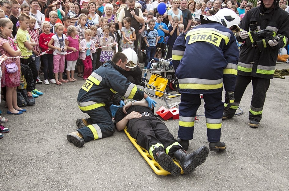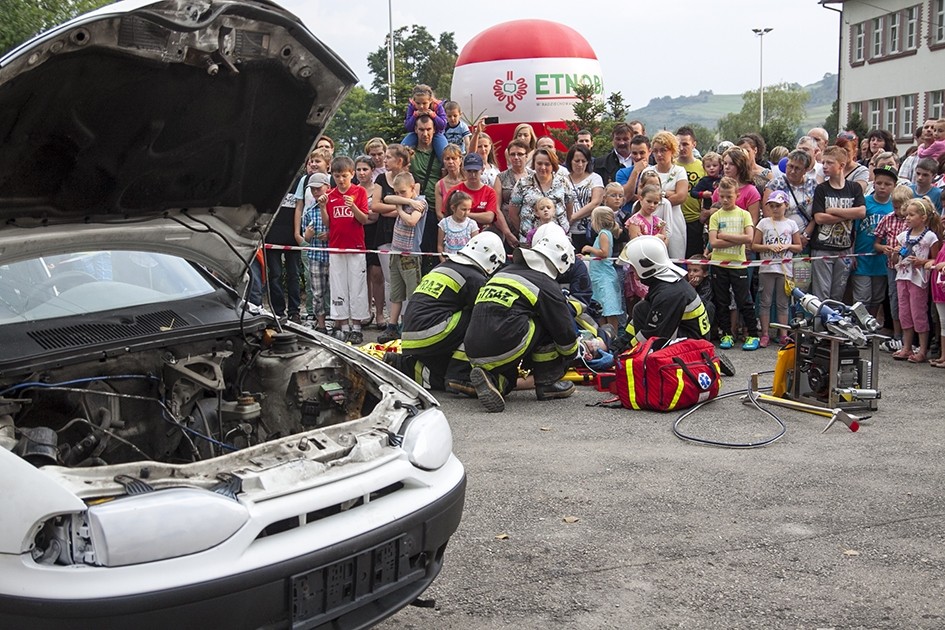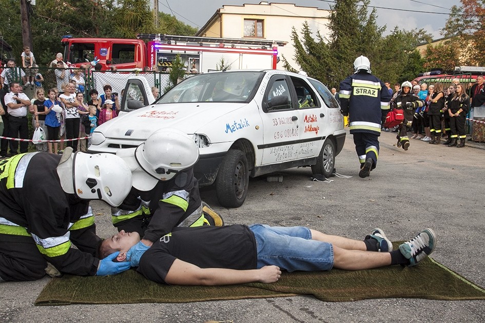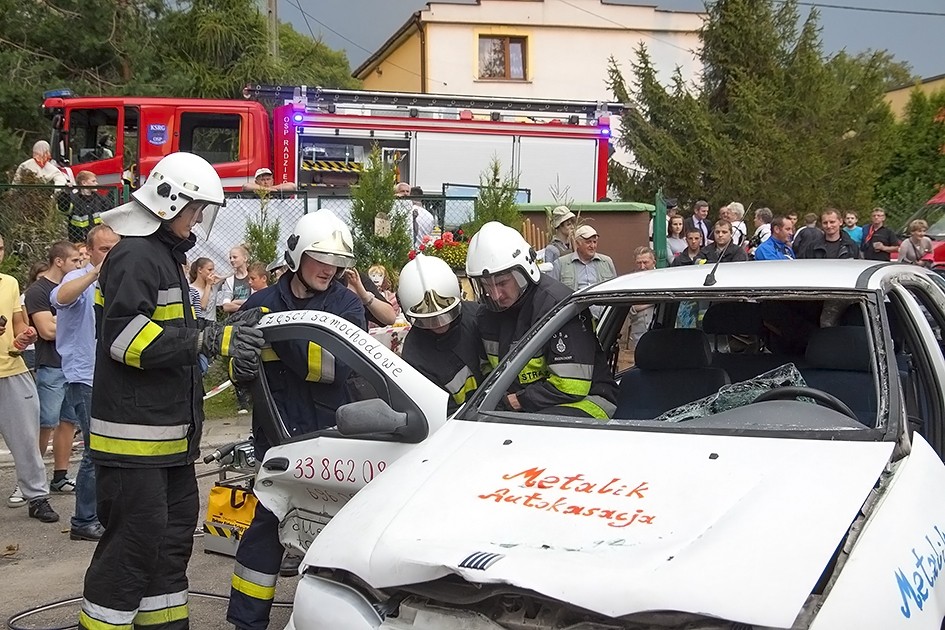 Ostatnią atrakcją wieńczącą artystyczną część Dożynek był przygotowany przez Ochotniczą Straż Pożarną w Radziechowach pokaz pierwszej pomocy przedmedycznej oraz ratownictwa drogowego, w postaci uwalniania uwięzionej w samochodzie ofiary wypadku poprzez rozcięcie samochodu.