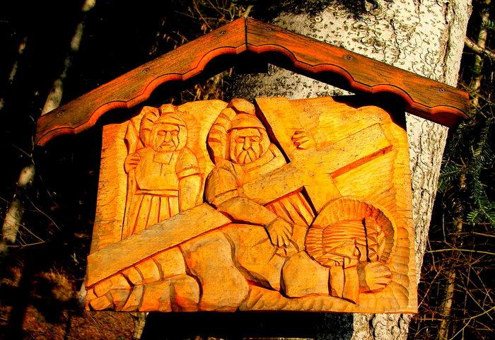 Trasa Drogi Krzyżowej wiedzie od Kościoła Parafialnego w Wieprzu przez sołectwo Brzuśnik i jego prawe skrzydło aż na Przegib i pod Kaplicę na Butorzonce. W 2001 r w 10 rocznicę pierwszej Drogi Krzyżowej staraniem byłych członków Katolickiego Stowarzyszenia Młodzieży zamontowano 14 płaskorzeźb na całej trasie do Butorzonki. Kapliczki wykonali rzeźbiarze - Ryszard Stroński i Marek Płoskonka. 30 marca 2001 r. w kościele parafialnym w Wieprzu Proboszcz Stanisław Jania poświęcił je i już 1 kwietnia uczestnicy kolejnej Drogi Krzyżowej mogli modlić się przy nowych stacjach. Nabożeństwu przewodniczył podobnie jak i w tym roku ks. Jerzy Matura. Droga na Butorzonkę nie należy do łatwych a ostatnie podejście na Przegib to prawdziwa “golgota” zwłaszcza gdy na tym zacienionym stoku zalega jeszcze śnieg.