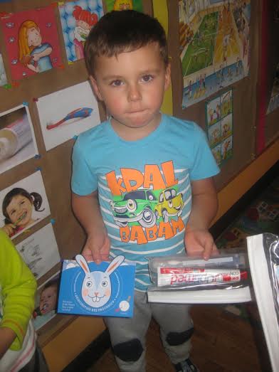 „Witajcie dzieci! Jestem Królikiem, Czystych Zębów Orędownikiem! Ha ha ha! Kto zdrowe zęby ma, ten się cieszy tak jak ja! Ha ha ha!”- tymi słowami przywitał się z przedszkolakami królik Pampiś, który wraz z Panią Dorotą Czerkies- edukatorem projektu „Dzieciństwo bez próchnicy” na terenie województwa śląskiego odwiedził Publiczne Przedszkole w Radziechowach w dniu 9 listopada 2015r.