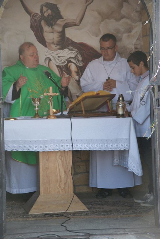 O godz. 15;00 uczestniczyliśmy we Mszy Św. którą sprawował w intencji śp. Ks. Prałata Stanisława Gawlika proboszcza radziechowskiego, obecny proboszcz ks. Piotr Pokojnikow. Po Mszy Św. nastąpiło złożenie kwiatów i zniczy przy Kurhanie Pamięci Narodowej w 25 rocznicę męczeńskiej śmierci bł. O. Michała Tomaszka oraz w 72 rocznicę wybuchu Powstania Warszawskiego, jak również 70 rocznicę rozstrzelania "Inki" i "Zagończyka" oraz rocznicę śmierci św. O. Maksymiliana Kolbe
