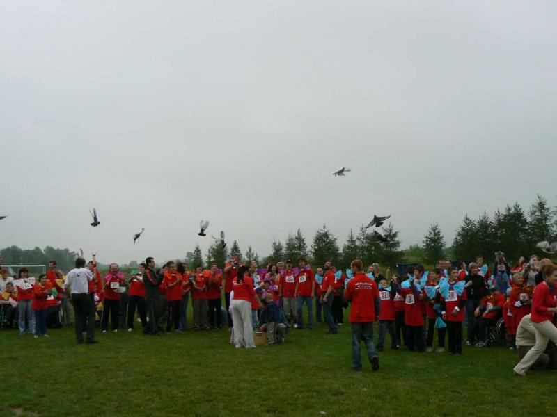 Kto tu nie pracuje; KGW gotuje zupę dla ponad 300 osób, LKS układa ławki i parasole, Koło Hodowców Gołębi przynosi skrzynki pełne tych, symbolicznych ptaków, Biuro Promocji Gminy ustawia nagłośnienie. A pozostali; nauczyciele i uczniowie z Gimnazjum oraz SP w Wieprzu, wolontariusze z Zespołu Szkół Samorządowych w Sułkowicach z Belęciny koło Andrychowa, członkowie stowarzyszenia Dzieci Serc i mieszkańcy wsi przygotowują wystrój areny cyrkowej. O 8 przyjeżdżają pierwsze grupy. Każdy uczestnik otrzymuje czerwoną koszulkę, numerek i dużą, kolorową kokardę pod szyję. Poszczególne grupy zostają ułożone w kolumnę marszowa i w radosnej atmosferze oczekują na ten najważniejszy moment wkroczenia na arenę.
