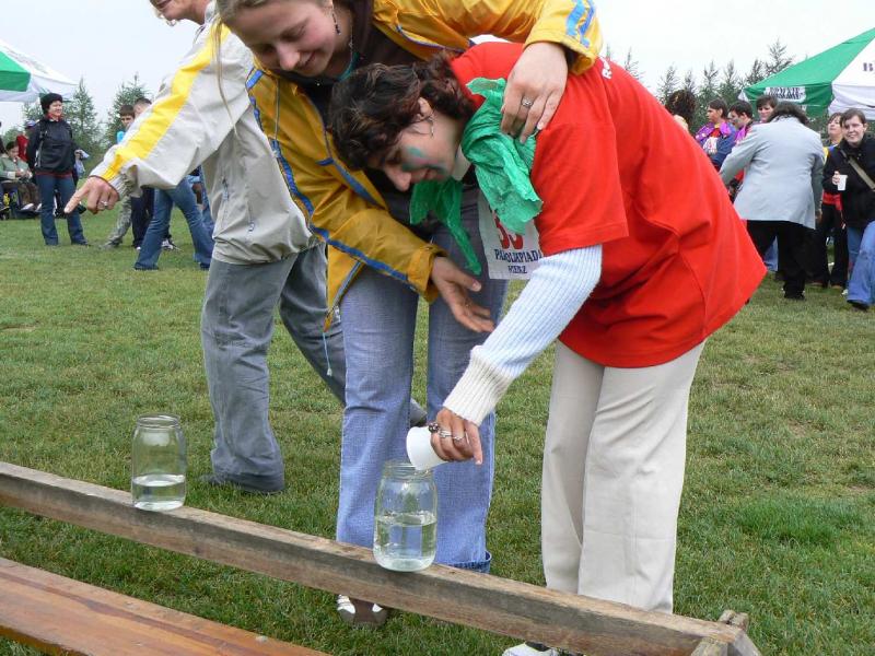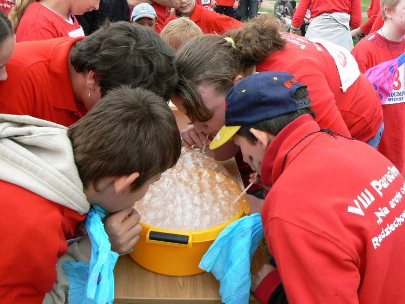 - konkurs dla Łakomczucha – po jednej osobie z drużyny, z zamkniętymi oczami trzeba było