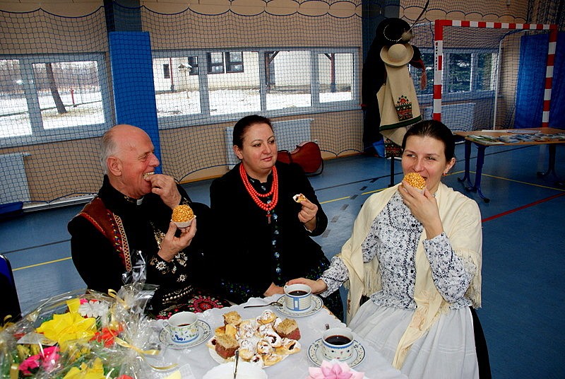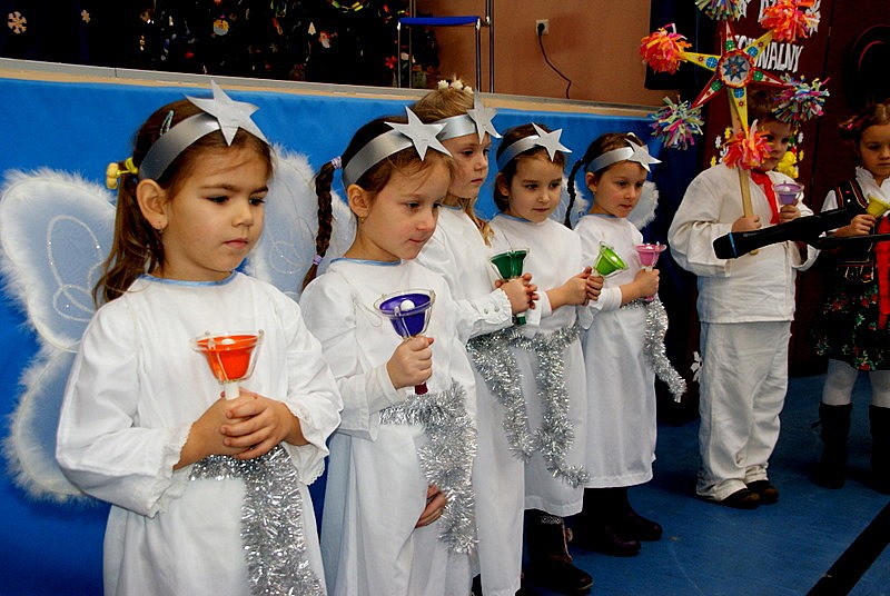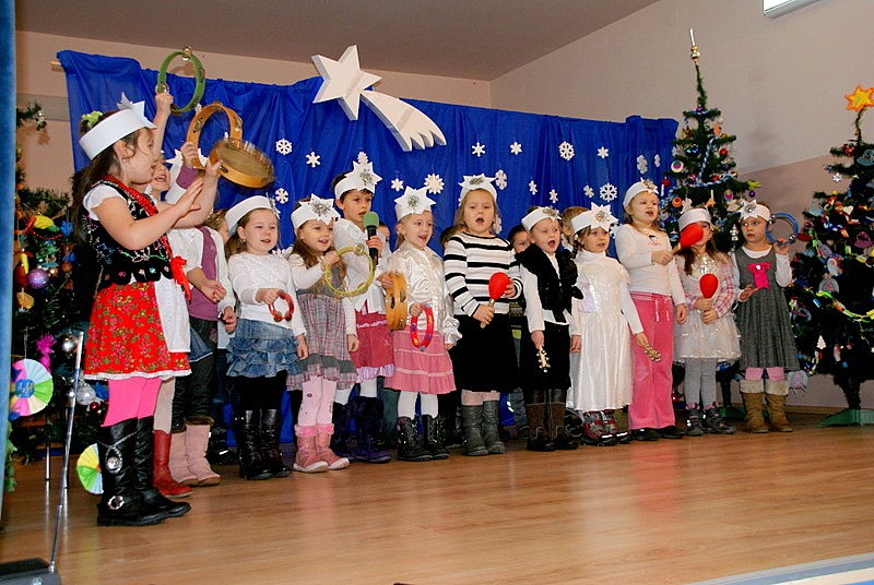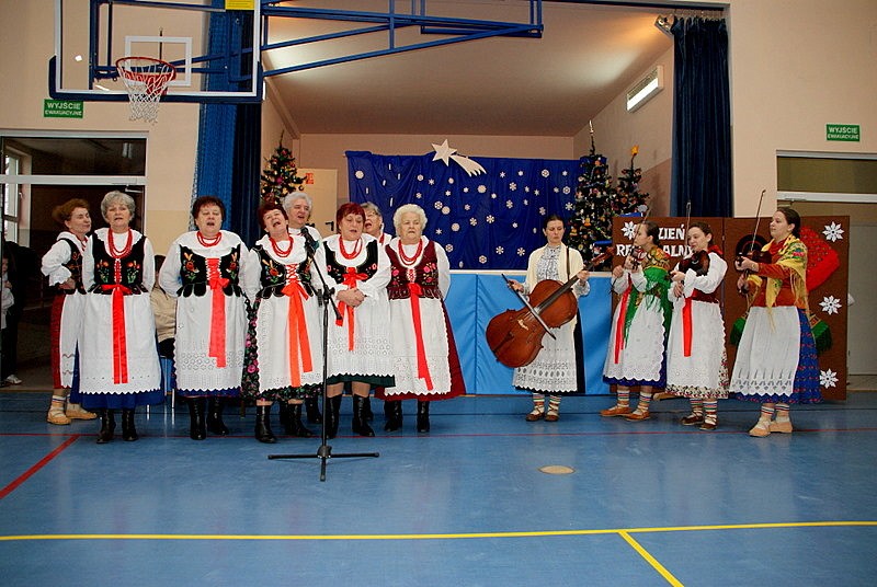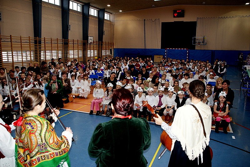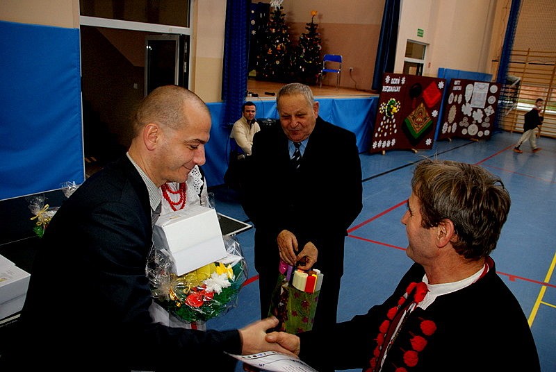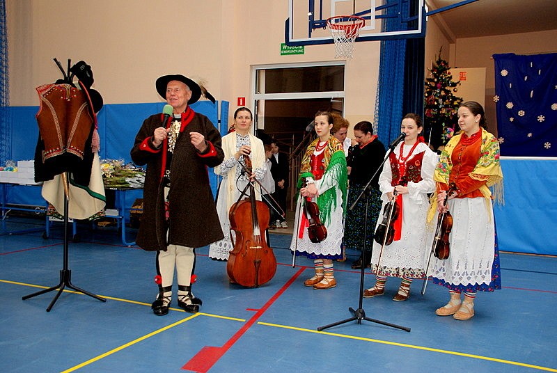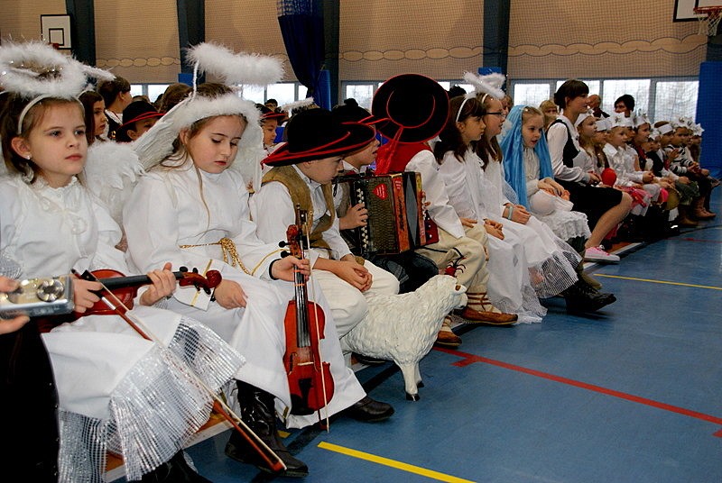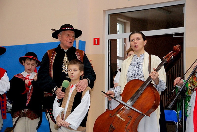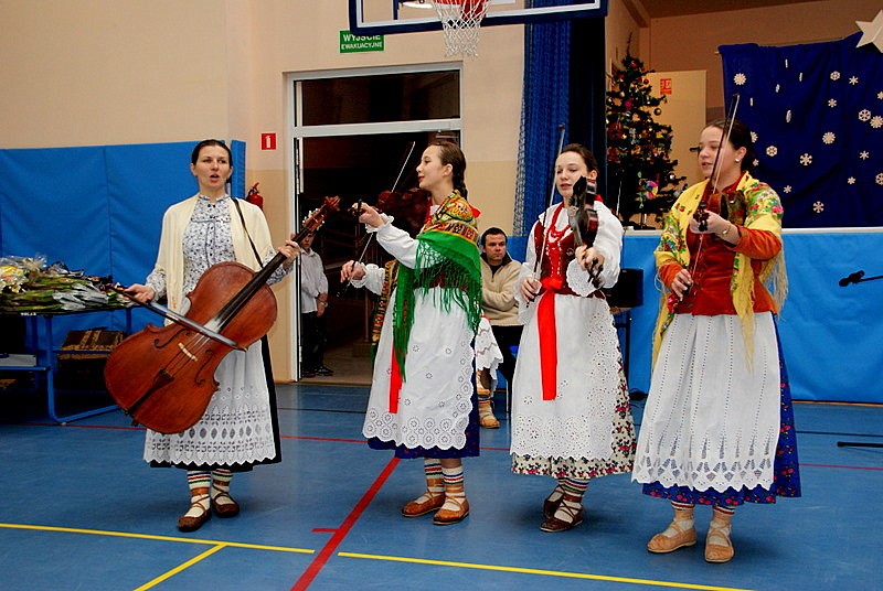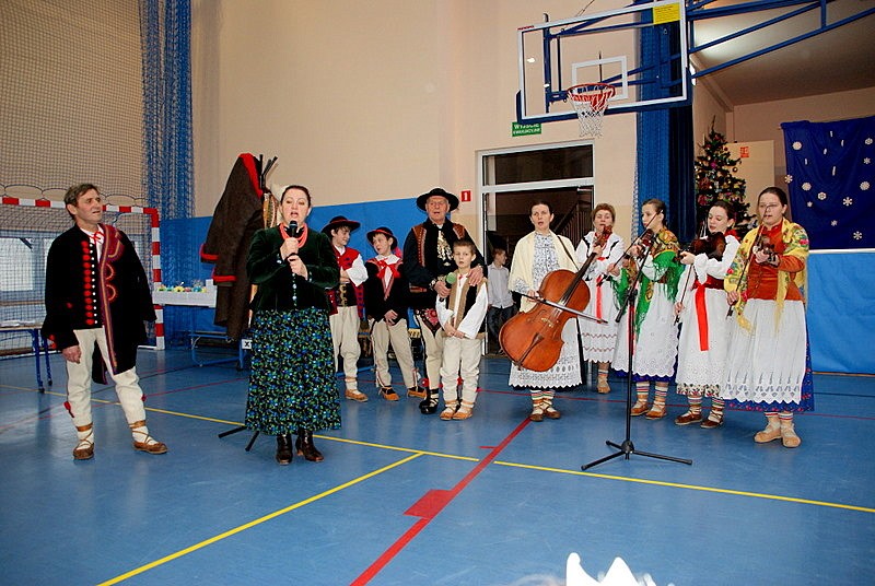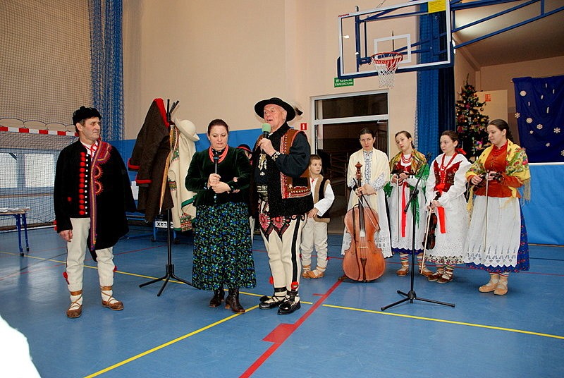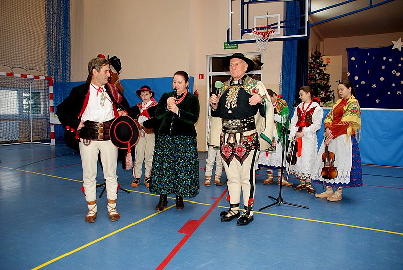 Na zakończenie wspólnie z Kapelą „Grojcowianie” wszyscy śpiewali pastorałki a prym wiodły tu przedszkolaki, które na wcześniejszych zajęciach regionalnych poznawały teksty i melodie. Wśród gości spotkania nie można pominąć Koła Gospodyń Wiejskich z Wieprza i twórców ludowych którzy współpracują ze Szkołą w Wieprzu. Wszystkie grupy szkolne i goście otrzymali od organizatorów wspaniałe nagrody i słodycze. Możliwe to było dzięki licznym ludziom dobrej woli czyli – DOBRODZIEJOM.