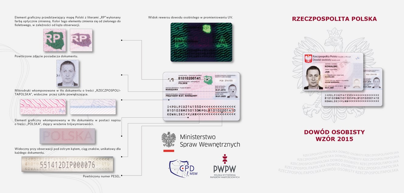 Elementy zabezpieczające nowe dowody osobiete przez fałszerstwem