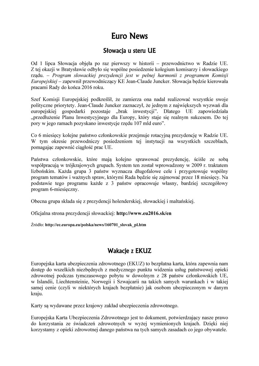 EUROPE DIRECT - Informator Europejski - lipiec 2016