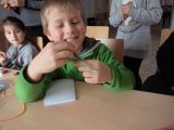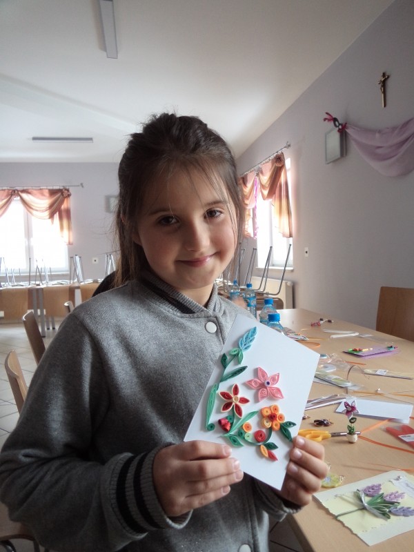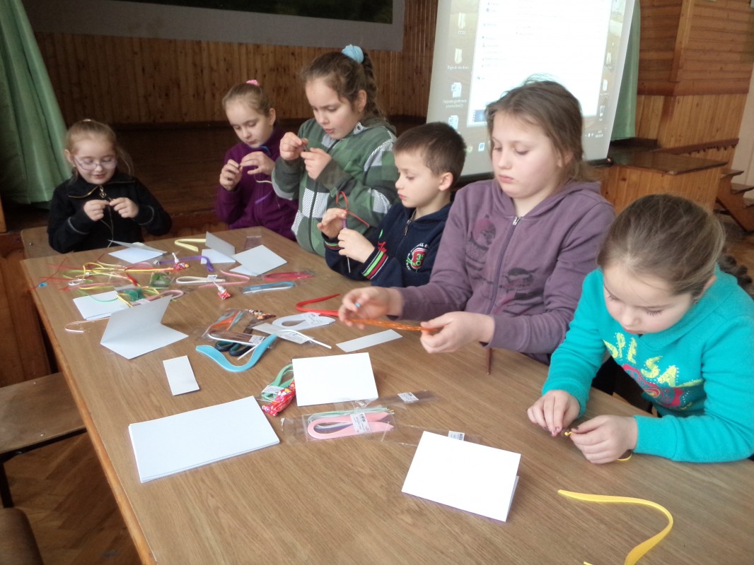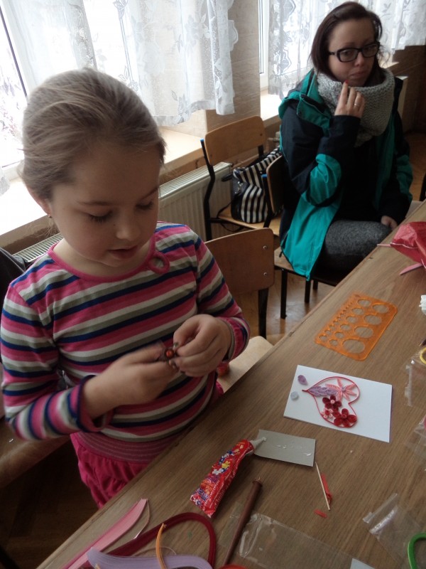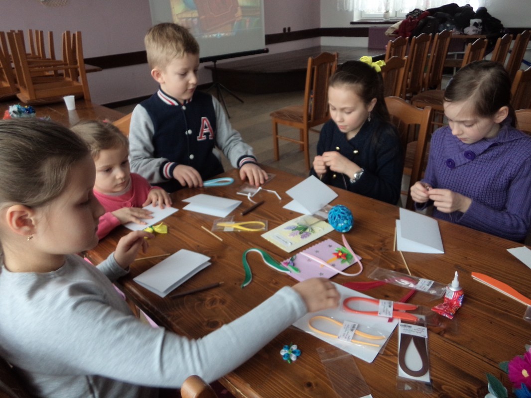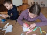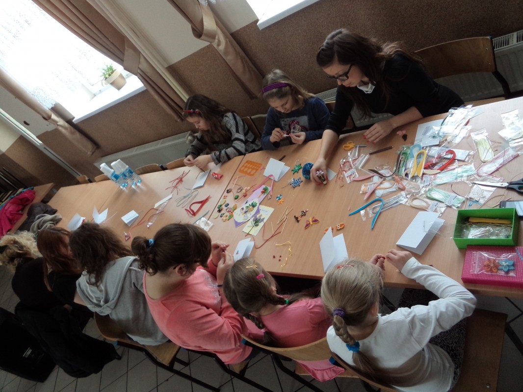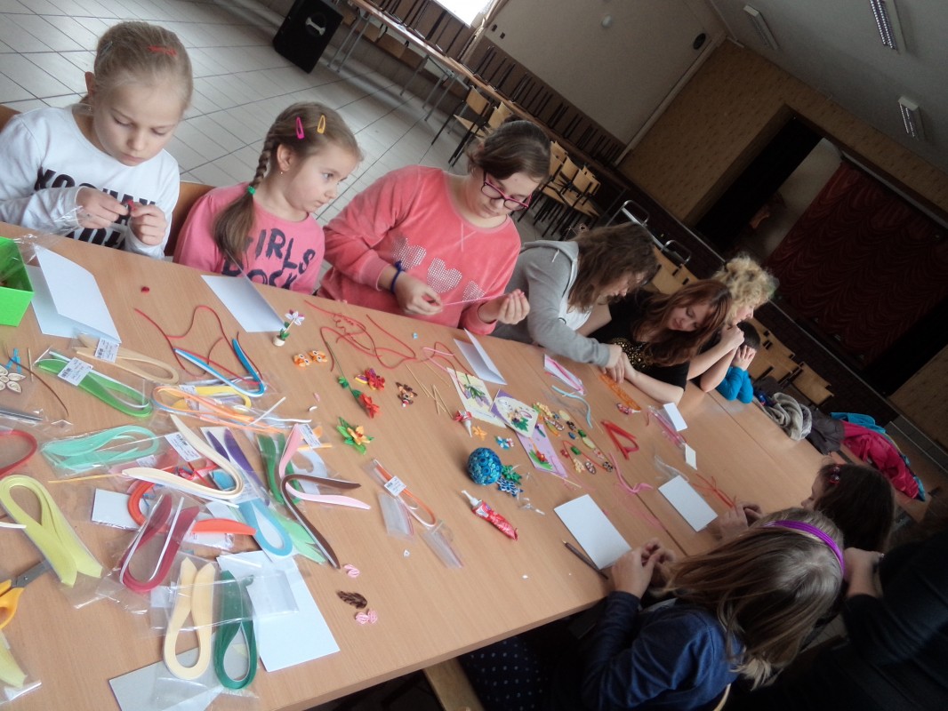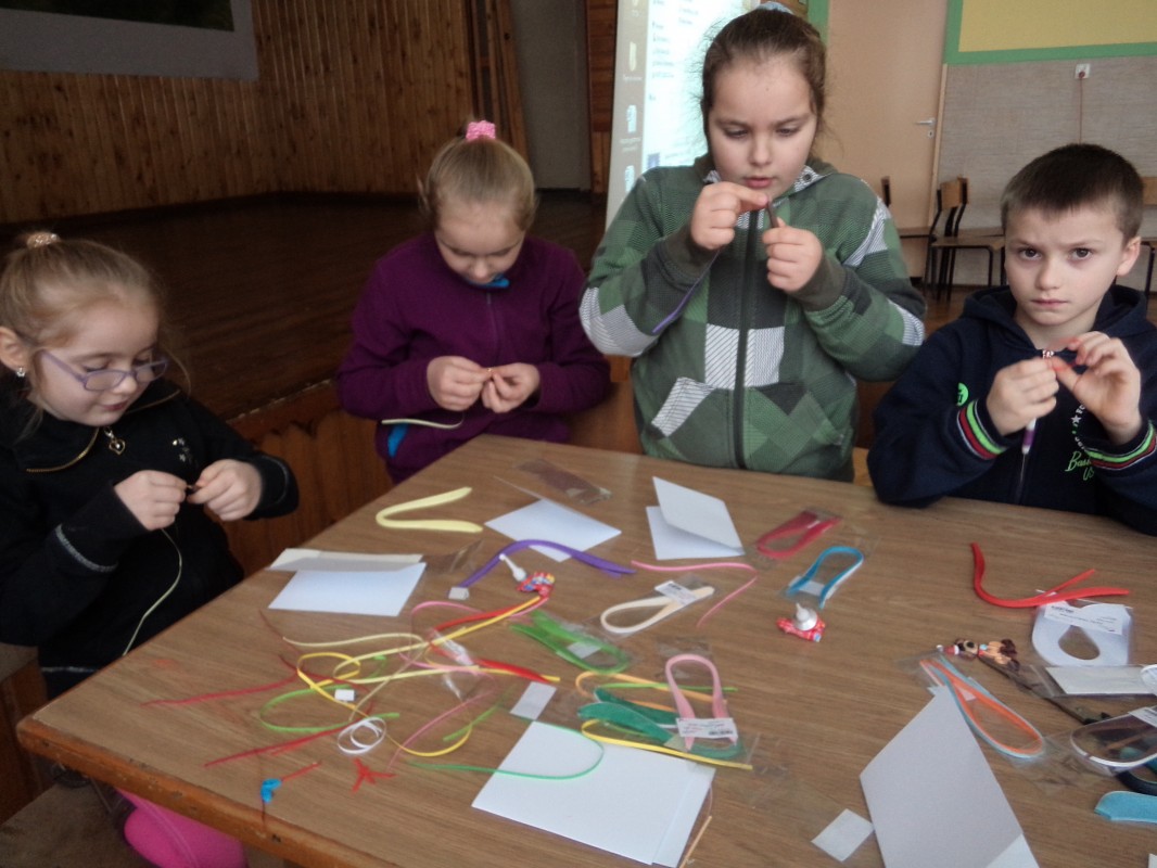 Dla tych dzieci, którym nie straszne było wstać rano mimo dni wolnych do szkoły, czekała nagroda: były nią zajęcia pt. „Bajkowe spotkania śladami Braci Grimm” oraz warsztatach quillingu prowadzone przez Panią Łucję Walczyńską i bibułkarskie prowadzonych przez znaną twórczynię ludową Panią Marię Grzegorek z Juszczyny.