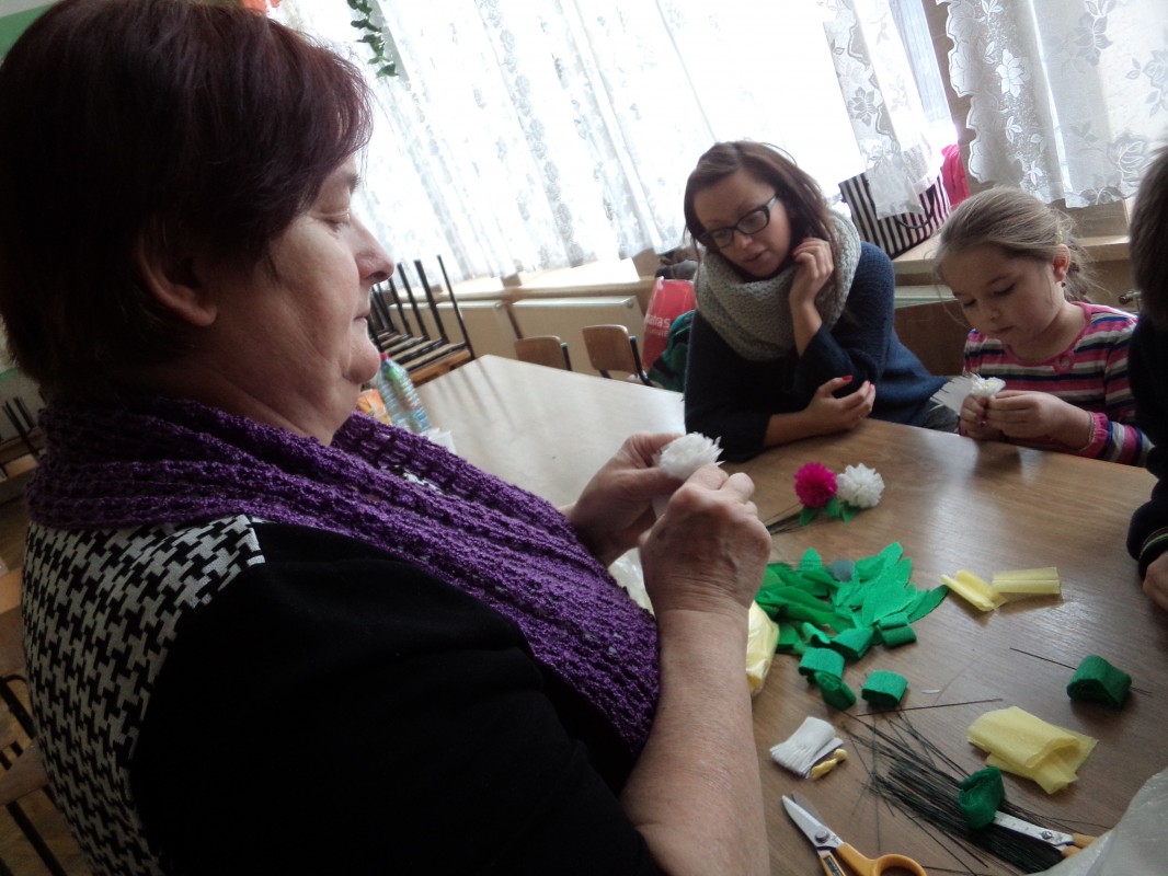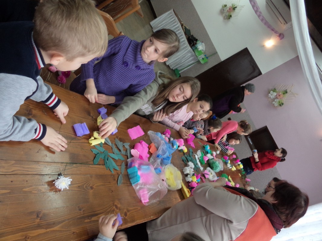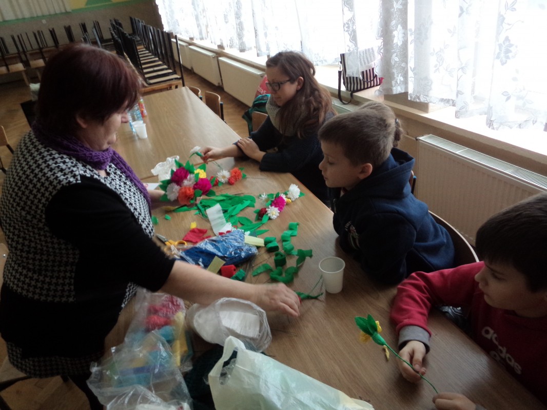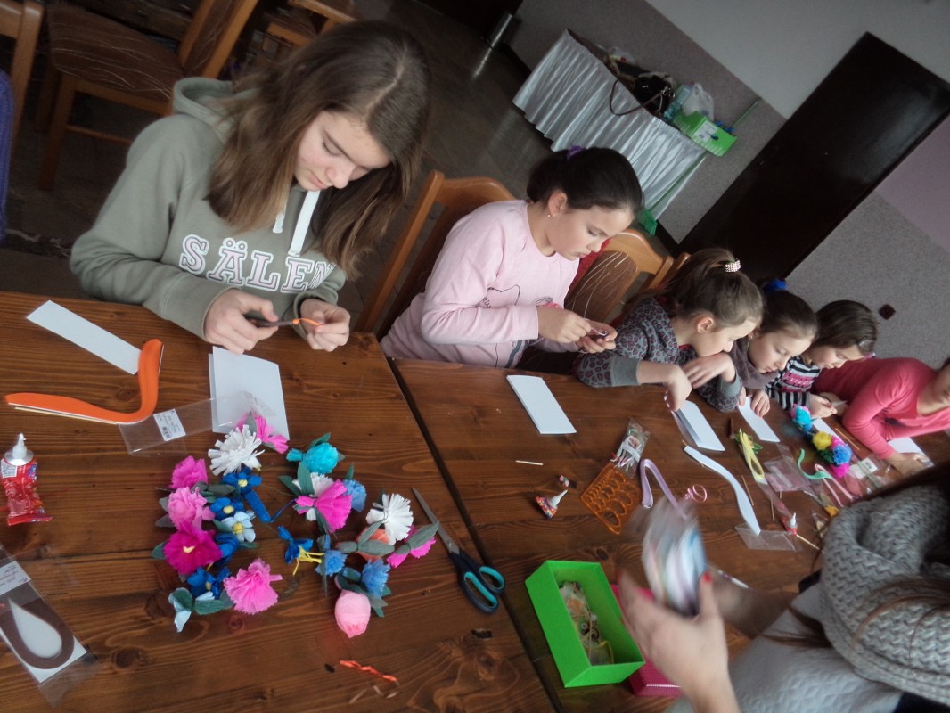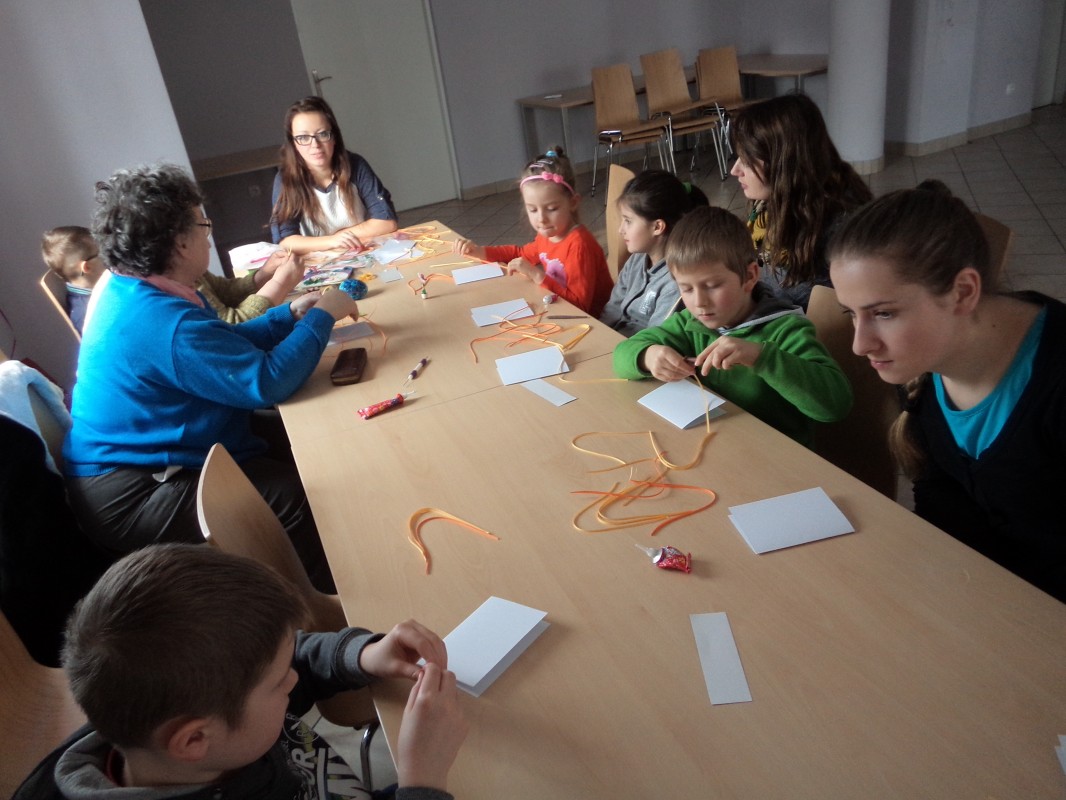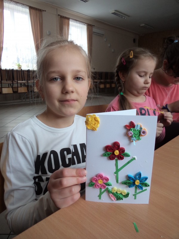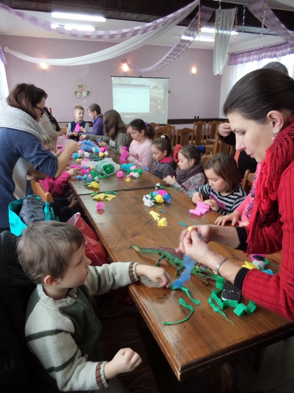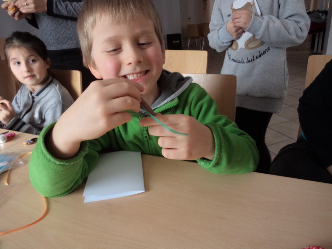 Dla tych dzieci, którym nie straszne było wstać rano mimo dni wolnych do szkoły, czekała nagroda: były nią zajęcia pt. „Bajkowe spotkania śladami Braci Grimm” oraz warsztatach quillingu prowadzone przez Panią Łucję Walczyńską i bibułkarskie prowadzonych przez znaną twórczynię ludową Panią Marię Grzegorek z Juszczyny.