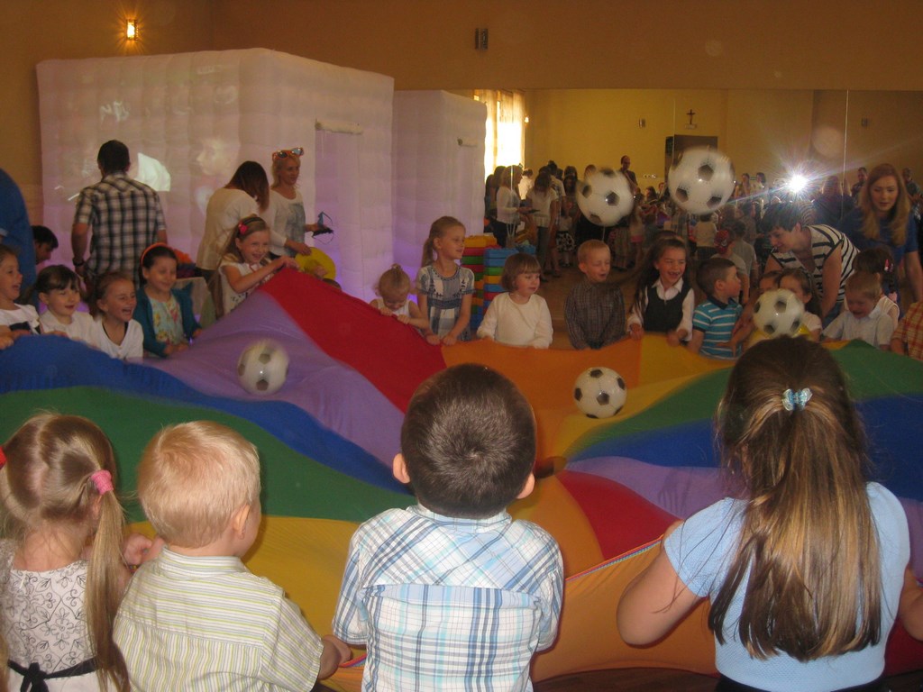 stąd jej otwarciem były występy przedszkolaków i upominki dla rodziców. Później przyszedł czas na wspólne radosne świętowanie. O fantastyczną zabawę przedszkolaków zadbał, podobnie jak w poprzednich latach, pan Sebastian Chmiel ze swoją ekipą. Nie zabrakło konkursów, wspólnych zabaw i tańców z rodzicami, zabawnych zdjęć pamiątkowych w fotobudce. Serdecznie dziękujemy wszystkim osobom, które przyczyniły się do organizacji festynu. Szczególne podziękowania kierujemy do Wójta Gminy Radziechowy-Wieprz pana Macieja Miki za udostępnienie sali i mediów. Mamom naszych przedszkolaków dziękujemy za pyszne ciasta, Firmie Żywiec-Zdrój za napoje dla dzieci, a panu Pawłowi Roczynie za pomoc w ich pozyskaniu. Nagrody konkursowe zapewnili również rodzice naszych przedszkolaków. Dzięki zaangażowaniu Rady Rodziców, grona pedagogicznego oraz obsługi przedszkola wspólne świętowanie było bardzo udane. Przeżyjmy jeszcze raz te radosne chwile oglądając galerę zdjęć.