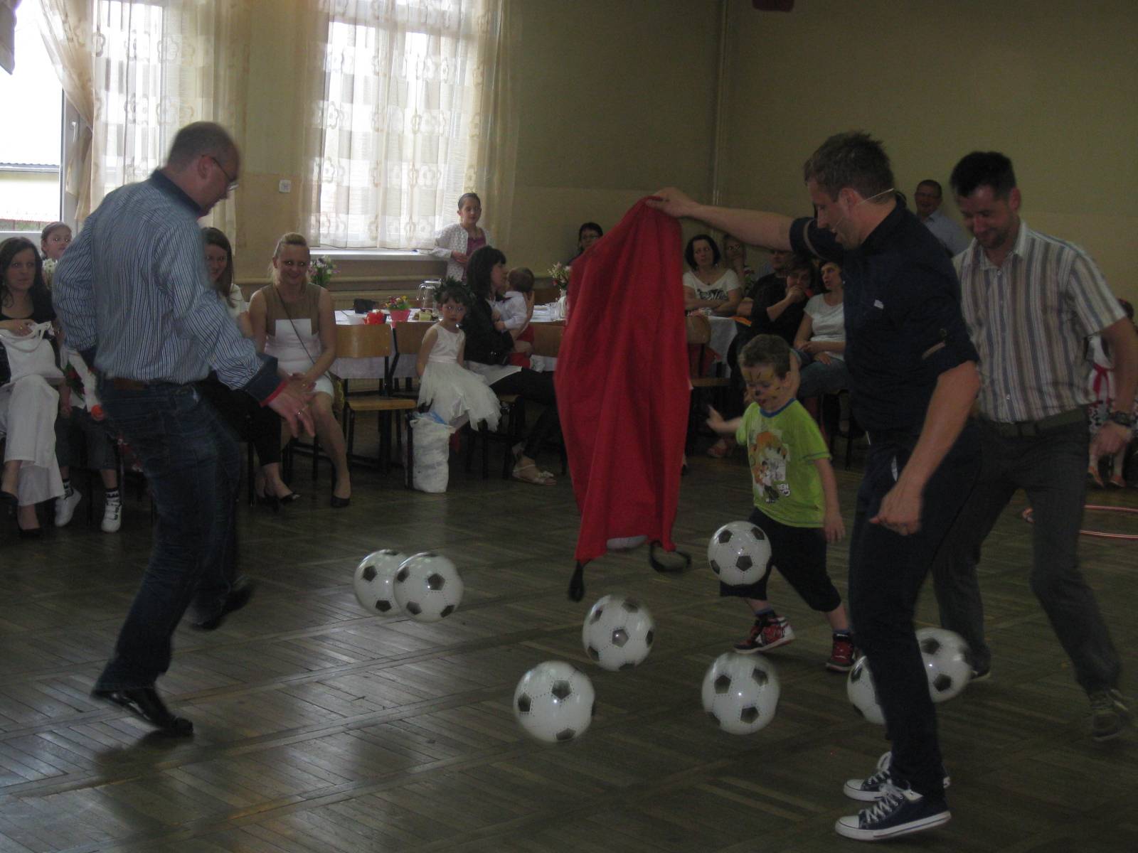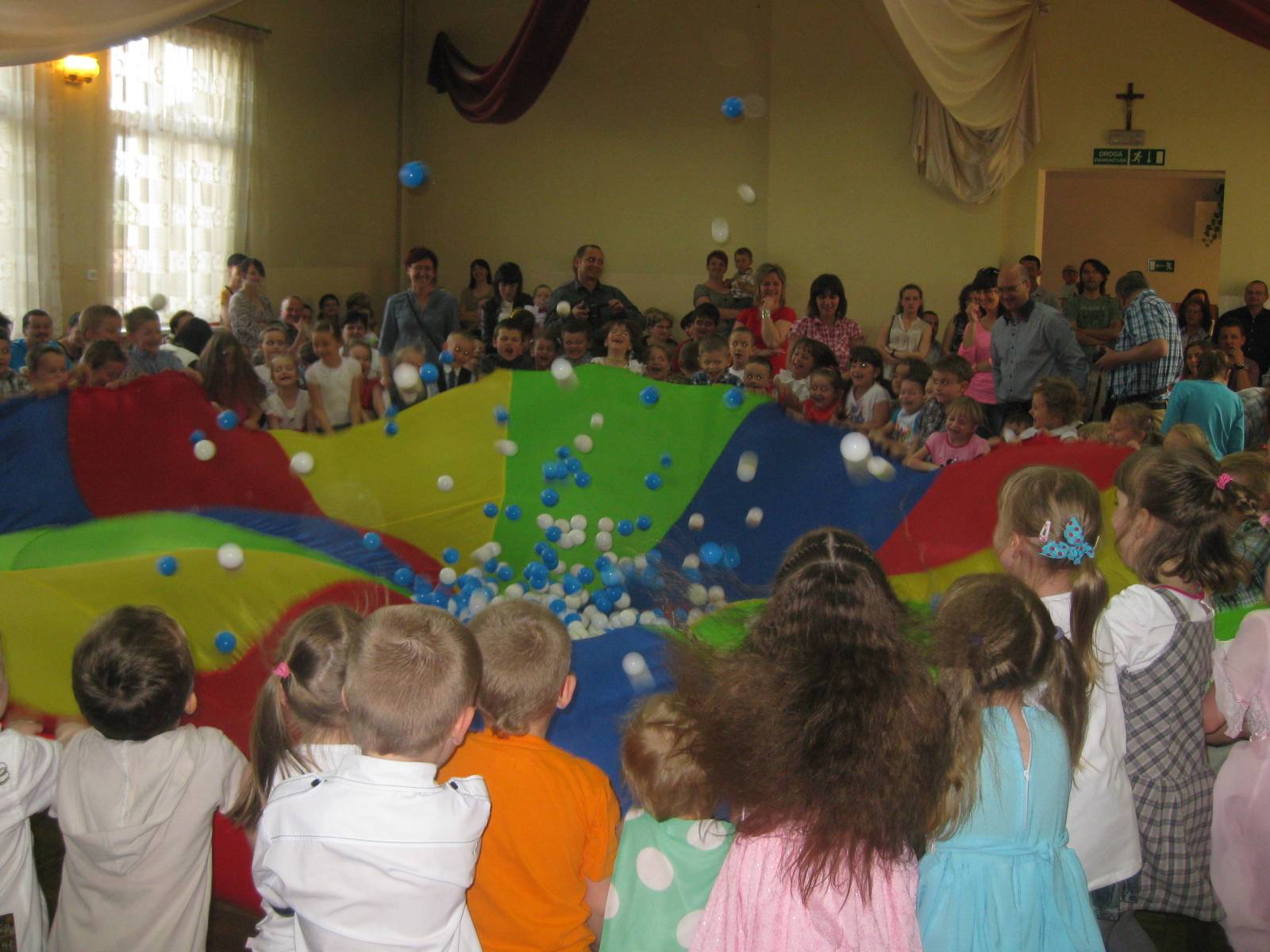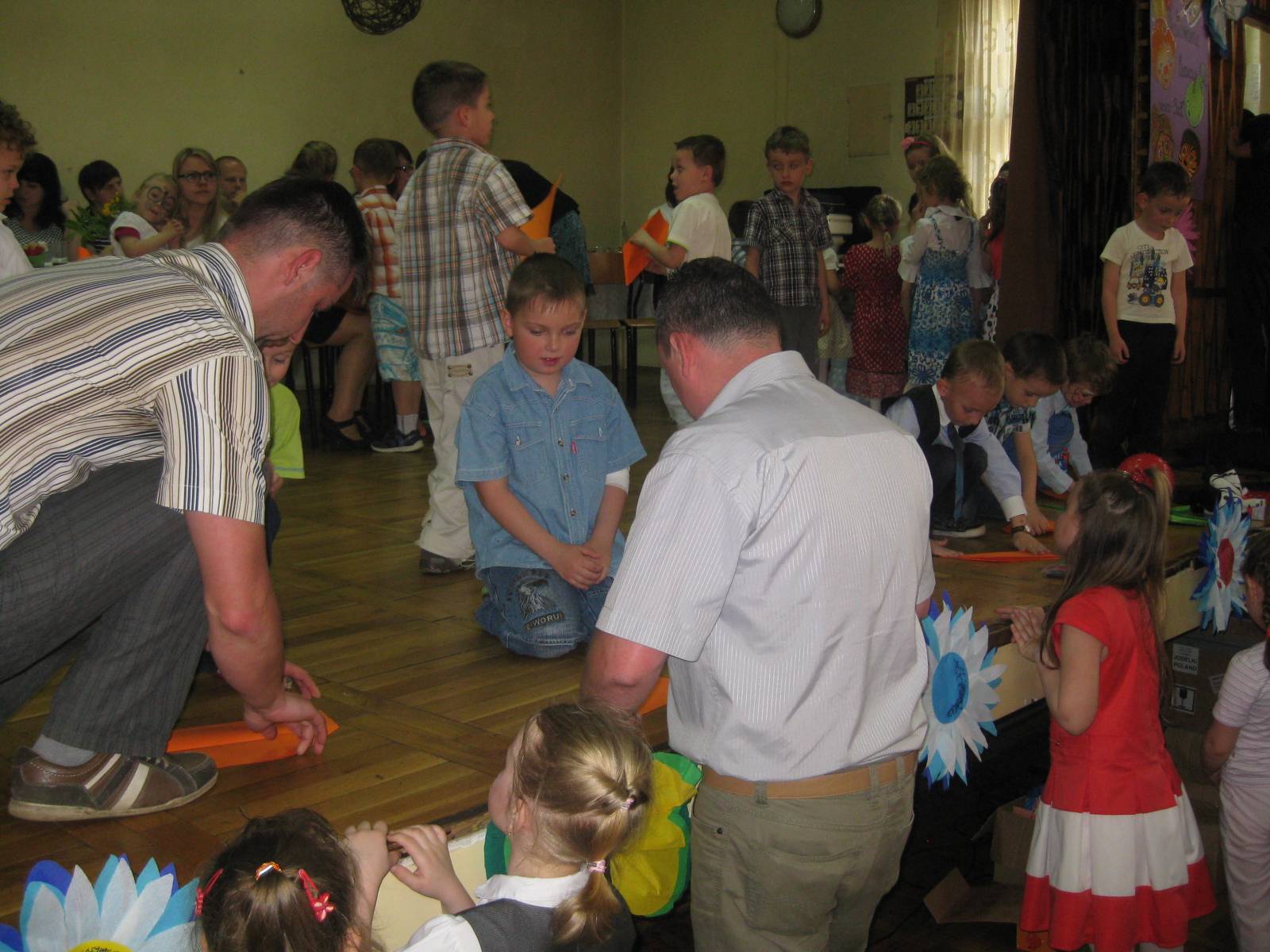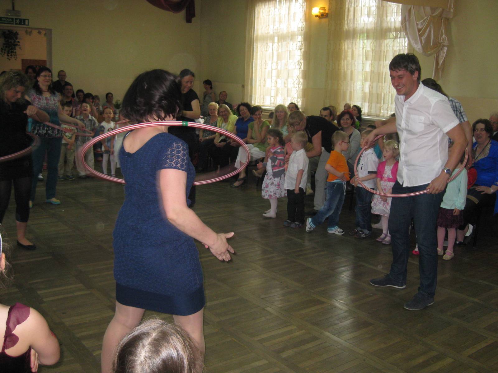 Impreza, będąca połączeniem Święta Matki, Ojca i przede wszystkim Dnia Dziecka wpisała się już w tradycję naszej placówki. Honorowymi gośćmi na naszym festynie byli: Wójt Gminy Radziechowy- Wieprz Pan mgr inż. Grzegorz Figura oraz Pani Dyrektor Gminnego Zarządu Oświaty Radziechowy- Wieprz mgr Elżbieta Kosiec. Serdecznie dziękujemy rodzicom naszych przedszkolaków za tak liczne przybycie. Mamy nadzieję, że wszyscy uczestnicy bawili się dobrze. Oprawę muzyczną festynu oraz prowadzenie zabaw i konkursów dla dzieci zapewnił Pan Sebastian Chmiel. Program artystyczny w wykonaniu przedszkolaków pod kierunkiem wychowawczyń spotkał się z ogromnie ciepłym przyjęciem. Konkursowe nagrody dla dzieci, słodycze i napoje zawdzięczamy sponsorom imprezy, czyli Państwu: Magdalenie i Markowi Skrzypkom, Agnieszce i Wacławowi Ciurlom, Beacie Okrzesik-Biela i Witoldowi Bieli, Katarzynie i Maciejowi Mikom, Oldze i Mariuszowi Koziełom, Annie i Grzegorzowi Markom, Monice i Piotrowi Mieszczakom, Monice i Jackowi Knapkom. Dziękujemy mamom, które upiekły ciasta oraz rodzicom naszych przedszkolaków, którzy wspomogli nas w zapewnieniu dzieciom upominków. Wielką radość przedszkolakom sprawiły pamiątki dla każdego dziecka w postaci barwnych wiatraczków. Jeszcze raz wszystkim uczestnikom Festynu Rodzinnego 2014 składamy najserdeczniejsze życzenia.