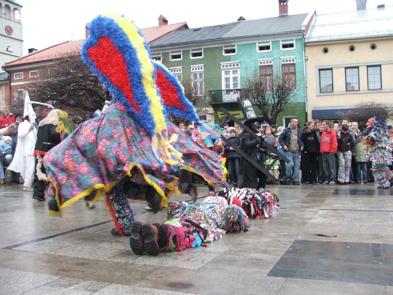 Sobota była dniem prezentacji między innymi naszej Gminy Radziechowy-Wieprz. W barwnym korowodzie ulicami Żywca i w żywiołowym kolędowaniu na żywieckim Rynku zaprezentowała się grupa dziadów noworocznych z Brzuśnika “Gronicki” pod kierownictwem Artura Figury. Jest to nowa grupa, która po raz pierwszy bierze udział w cyklu tegorocznych imprez związanych z “Żywieckimi Godami”. Obok tej grupy w namiocie na żywieckim Rynku zaprezentowała swe kolędy młodzieżowa grupa wokolno- instrumentalna “Qvo Vadis” z Radziechów kierowana przez Dariusza Jurasza. Olbrzymim powodzeniem cieszyła się wyśmienita “kwaśnica” przygotowana na tę okazję przez Gminny Ośrodek Kultury oraz nieocenione i niezawodne jak zawsze Panie z Koła Gospodyń Wiejskich w BRZUŚNIKU.