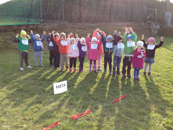Nasz bieg odbył się na boisku trawiastym w Bystrej 29 października o godzinie 10.00, gdzie był wyznaczony dystans do przebiegnięcia. Udział w maratonie brała grupa starszaków. Każdy maratończyk posiadał numer startowy. Odbyła się wspólna rozgrzewka przeprowadzona przez wychowawcę grupy. Po skończonym biegu dzieci otrzymały dyplomy i medale a dla przedszkola CERTYFIKAT jak również spożyły zdrowe przekąski batoniki owsiane przygotowane przez wychowawcę grupy mgr E. Witkowską według przepisów dietetyka i edukatora żywieniowego w programie ” Zdrowo jemy, Zdrowo rośniemy” zgodnie z Rozporządzeniem Ministra Zdrowia. Biegi sprawiły ogromną radość wszystkim, dzieci były szczęśliwe, uśmiechnięte i chętnie pobiegłyby jeszcze nie raz. Ogólnie w biegach wzięło udział 14 uczestników, co dało nam dystans przebyty w metrach 2240. Nasze przedszkole dołączyło sprintem do grona małych maratończyków.