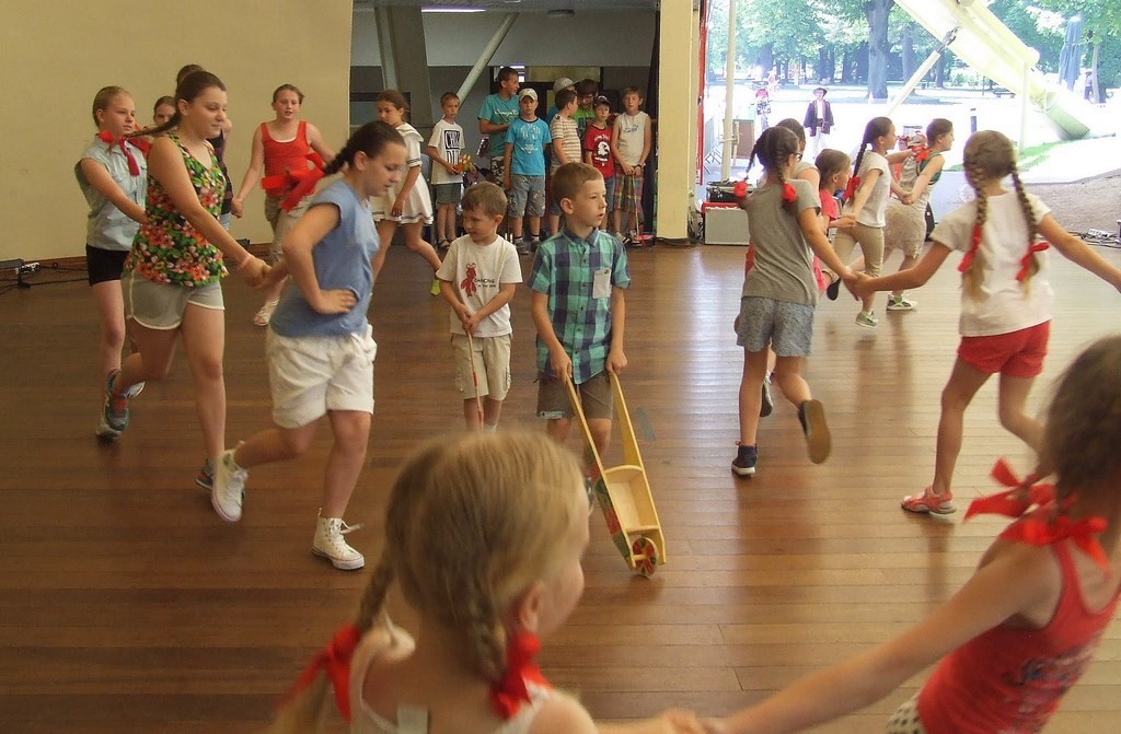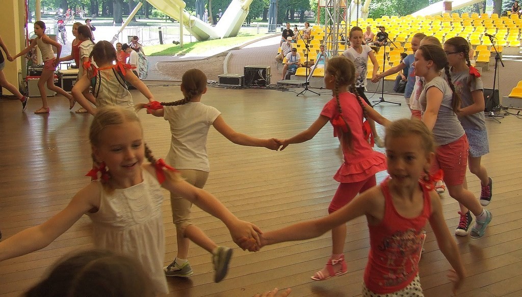 bawiły się zabawkami zakupionymi na odpuście, bawiąc się, tańcząc i śpiewając.