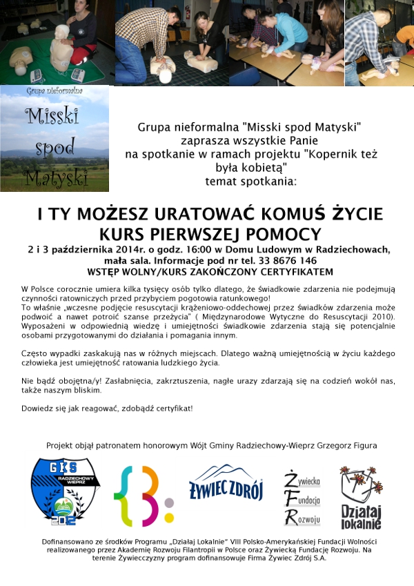 w ramach projektu Biblioteki gminnej zapraszamy do udziału w bezpłatnym kursie pierwszej pomocy.