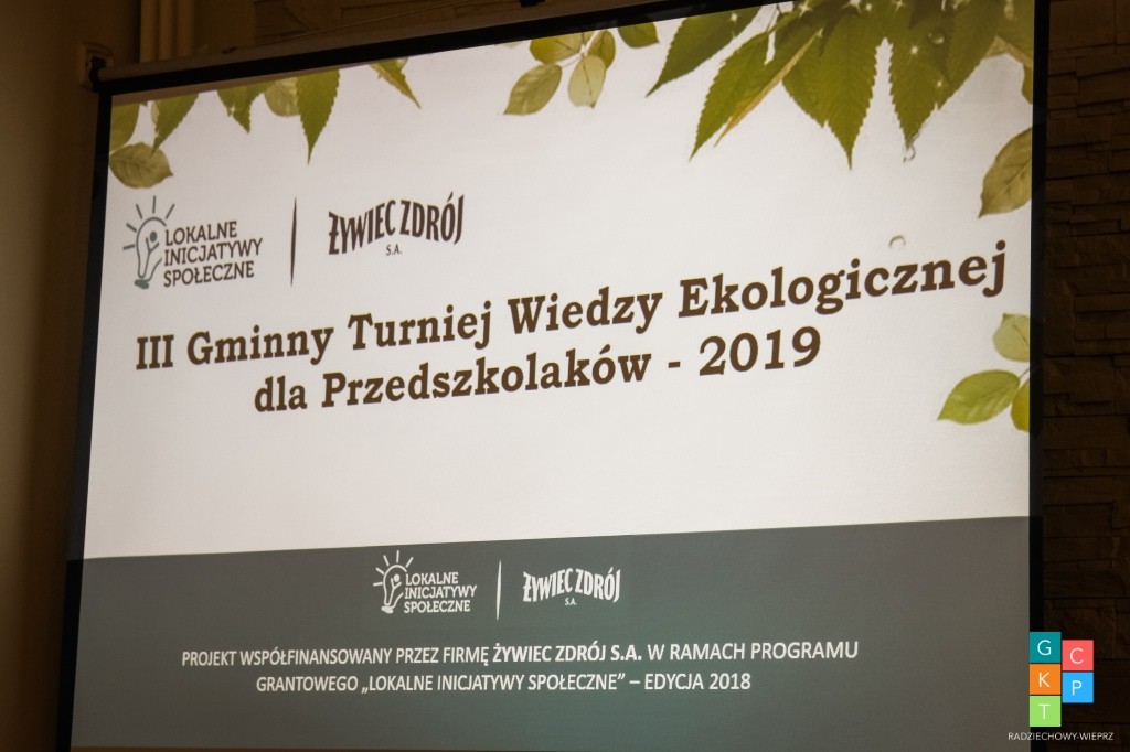 22 marca 2019r. w sali Domu Ludowego w Wieprzu odbył się III Gminny Turniej Wiedzy Ekologicznej Dla Przedszkolaków – 2019, który zorganizowany był w zakresie realizacji projektu „Ekologia modne słowo – odkrywamy je na nowo” współfinansowanego przez Firmę Żywiec Zdrój S.A. w ramach programu „LOKALNE INICJATYWY SPOŁECZNE’ – edycja 2018.