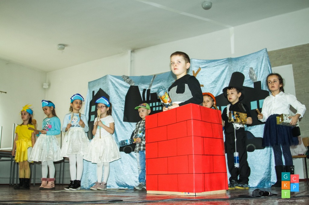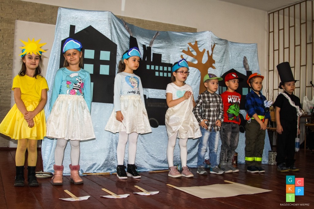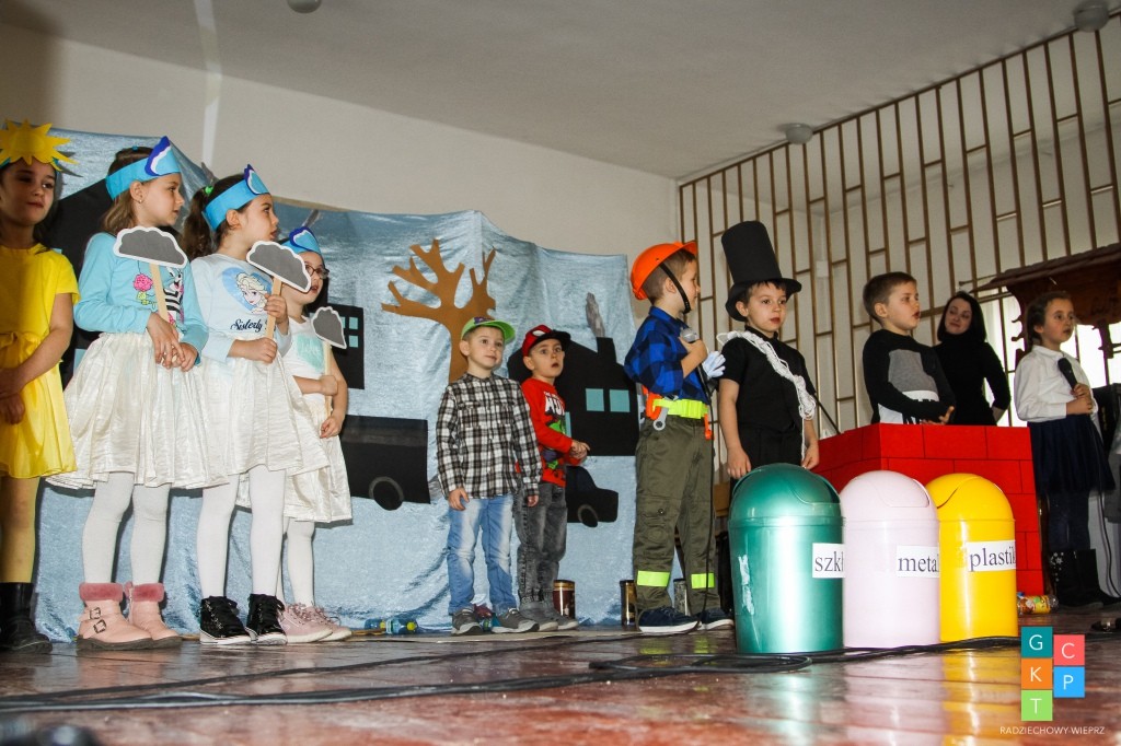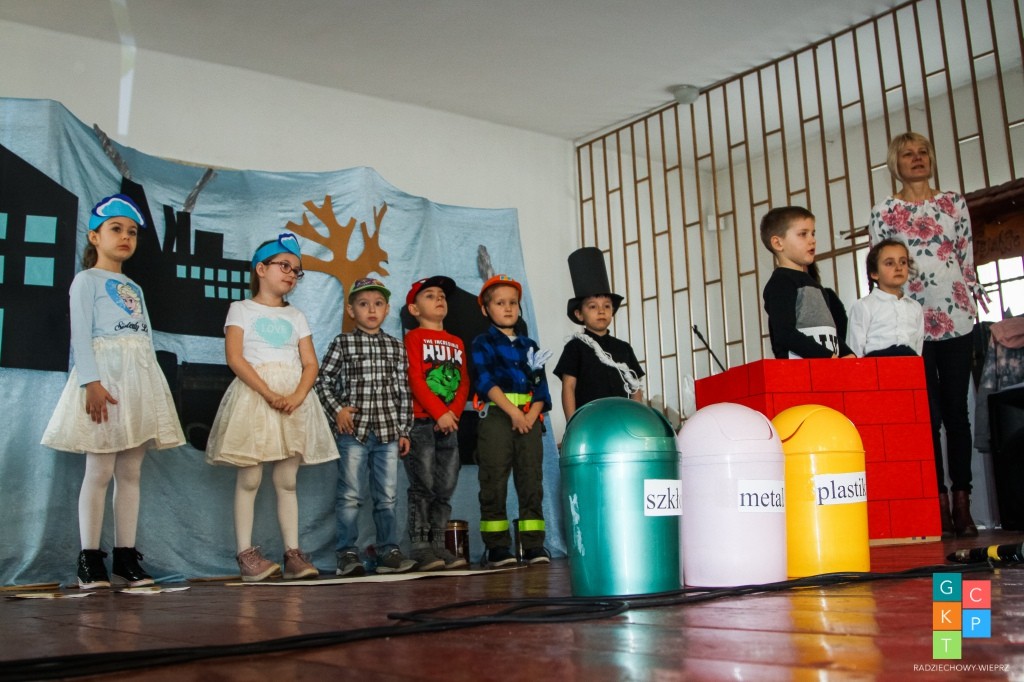 Do turnieju zgłosiło się 9 trzyosobowych drużyn z przedszkoli z terenu Gminy Radziechowy – Wieprz, które przed przystąpieniem do rozgrywek obejrzały przedstawienie o treści ekologicznej pt. „Chory komin” w wykonaniu dzieci 6 - letnich pod kierunkiem wychowawczyń Pani Barbary Dudek i Pani Małgorzaty Słowy.