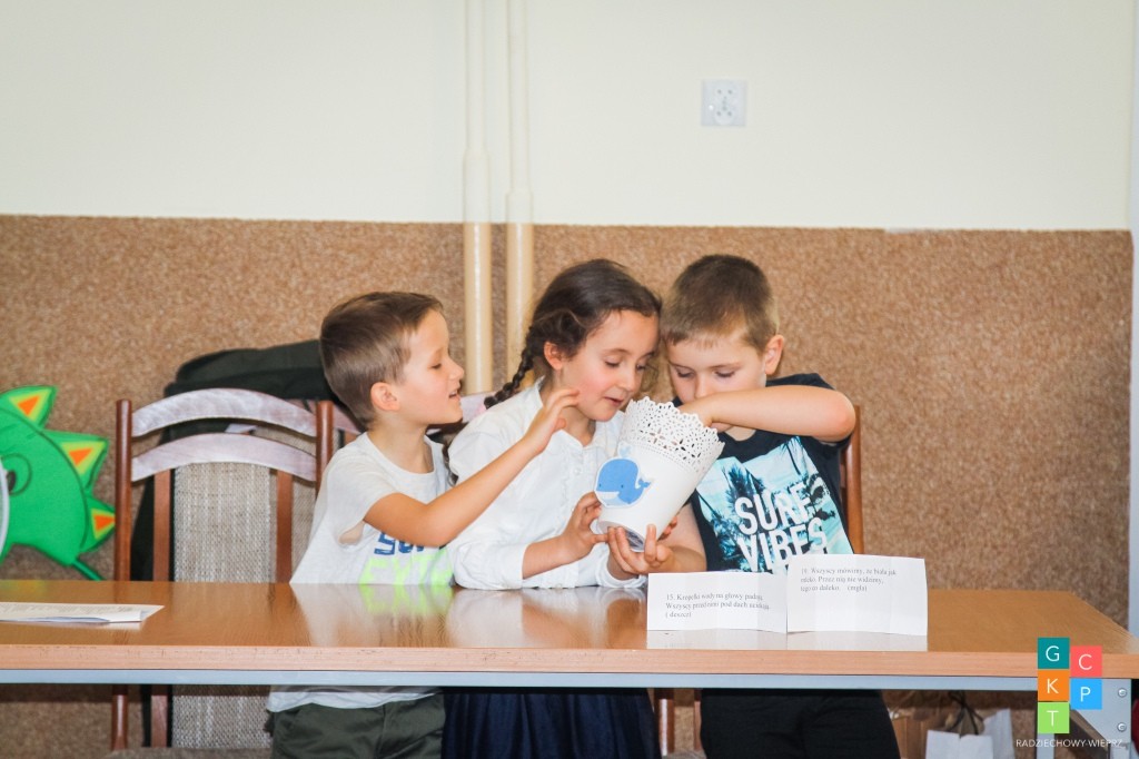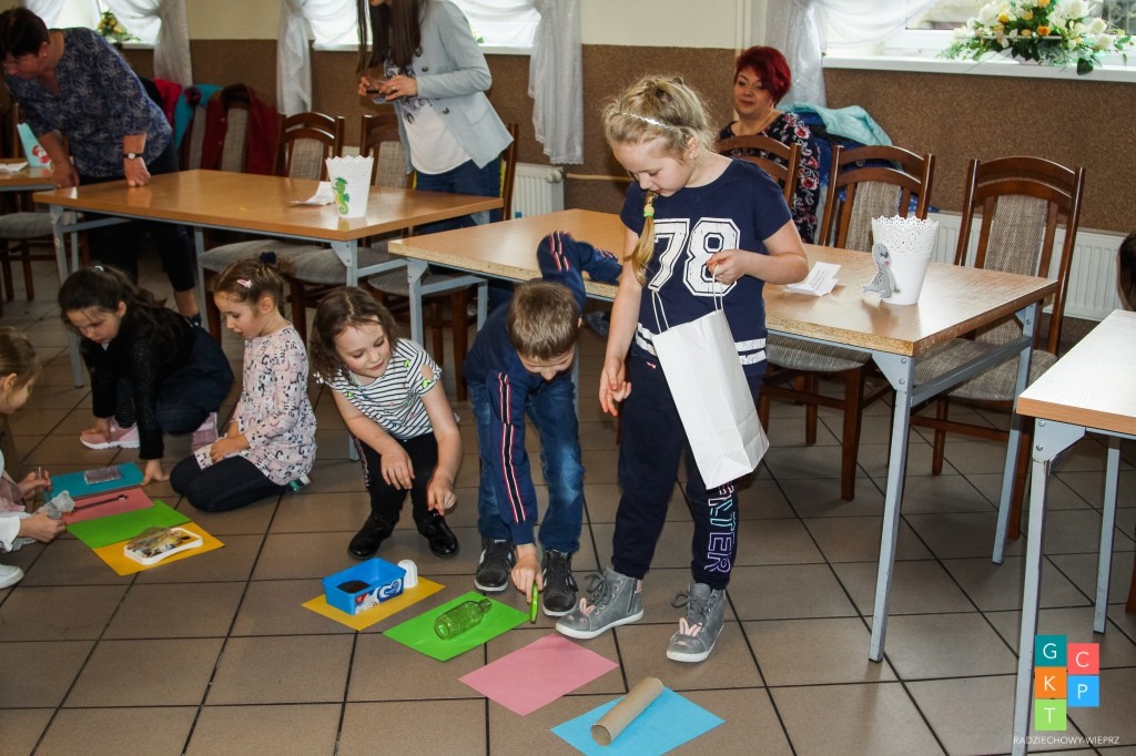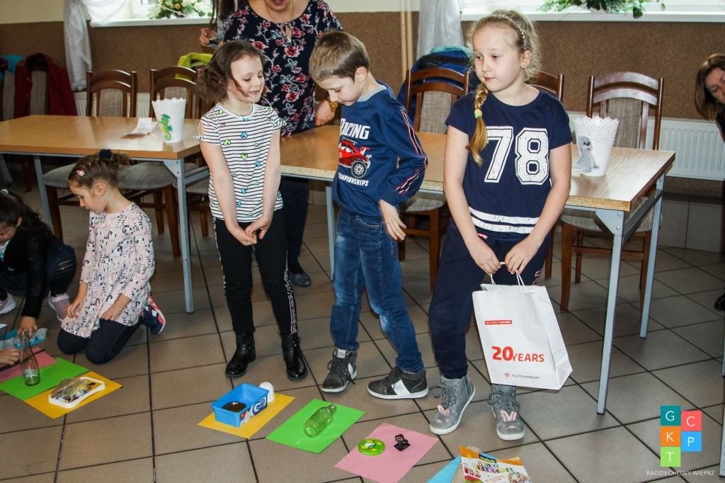 Zadania poprawnie wykonane były premiowane punktami w formie plastikowych nakrętek z butelek po napojach, które drużyny zbierały do kolorowych osłonek na doniczki.