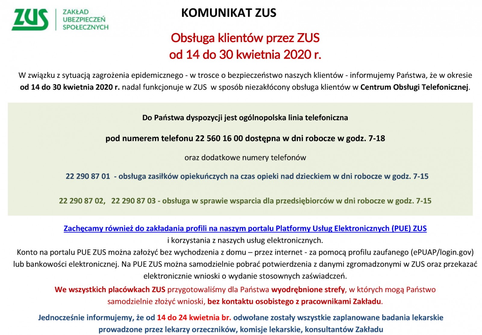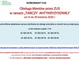 INFORMACJI O ZASADACH OBSŁUGI KLIENTÓW ZAKŁADU UBEZPIECZEŃ SPOŁECZNYCH W DNIACH OD 14 DO 30 KWIETNIA BR. W ZWIĄZKU Z SYTUACJĄ EPIDEMIOLOGICZNĄ W POLSCE