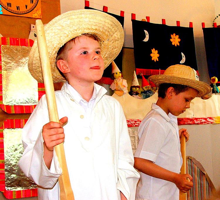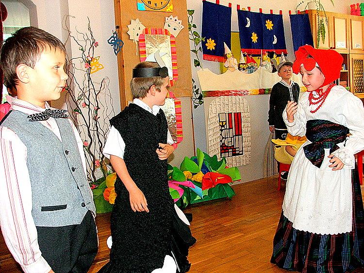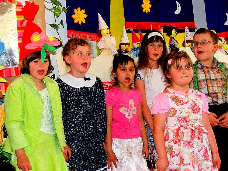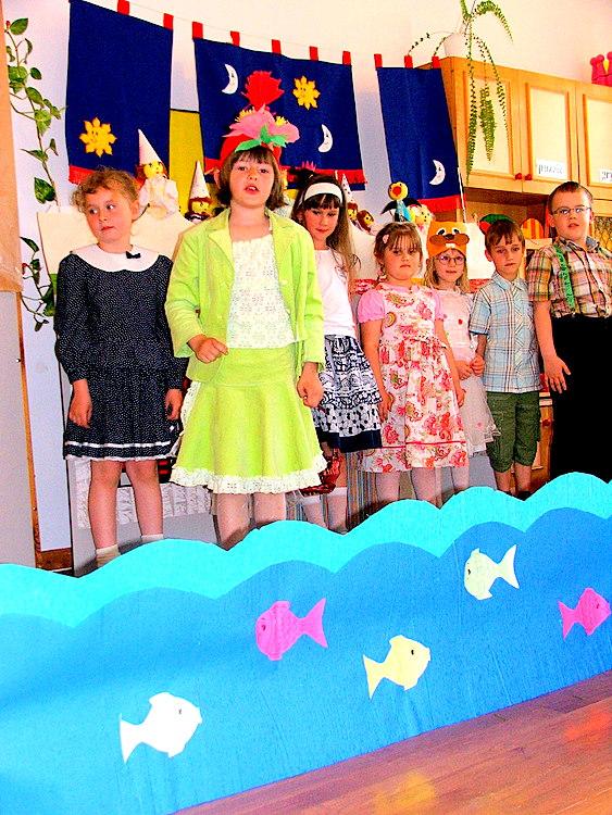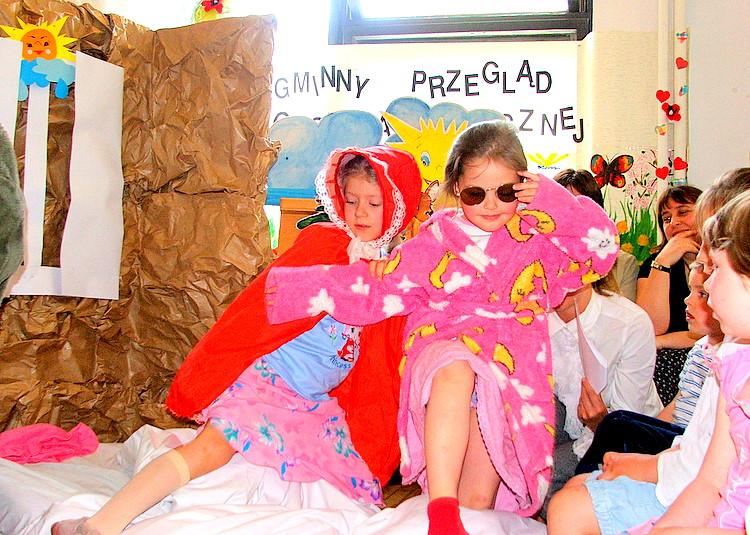 W bieżącym roku w przeglądzie brały udział dzieci z czterech przedszkoli . Artyści z ZSP w Bystrej pokazali inscenizację bajki „Czerwony Kapturek”. Widownia z dużym zainteresowaniem śledziła przebieg akcji. Przygotowana przez nauczycielki Agnieszkę Rączkę i Ewelinę Dudys dekoracja stanowiła dodatkową atrakcję. Przedszkole nr 1 w Radziechowach zaprezentowało montaż słowno-muzyczny pt. „Żyj z przyrodą w zgodzie” . Program opracowany był z dużą starannością , a jego treści dydaktyczne skierowane zarówno do dzieci jak i do dorosłych. Występ przygotowały nauczycielki Jadwiga Howaniec, Dorota Konior i Stanisława Lizak. Wyjątkowo pomysłową i barwną dekoracją mogło się poszczycić Przedszkole w Juszczynie . Szczególnie do powielenia nadaje się pomysł palmy zrobionej z drabinki metalowej składanej. Program nosił tytuł „Bajeczka o małpce” , a przygotowany był pod kierunkiem nauczycielek : Katarzyny Murańskiej, Grażyny Malinki i Haliny Kocoń. Dekoracja ,stroje dzieci oraz ich talent wokalny spowodowały , że puchar Wójta i pierwsze miejsce (już po raz drugi w historii Przeglądu) pojechały do Przedszkola w Juszczynie. Przedszkolaki z Przybędzy przygotowały program składający się z czterech części: inscenizacji piosenki „Już od progu przedszkola” oraz piosenki braci Golec „Ściernisko”, prezentacji wierszy J.Brzechwy „Kaczka dziwaczka” i „Kwoka”. Różnorodne i bogate stroje oraz dużo rekwizytów sprawiły, że zarówno dzieci jak i dorosła widownia śledziły popisy z dużym zainteresowaniem