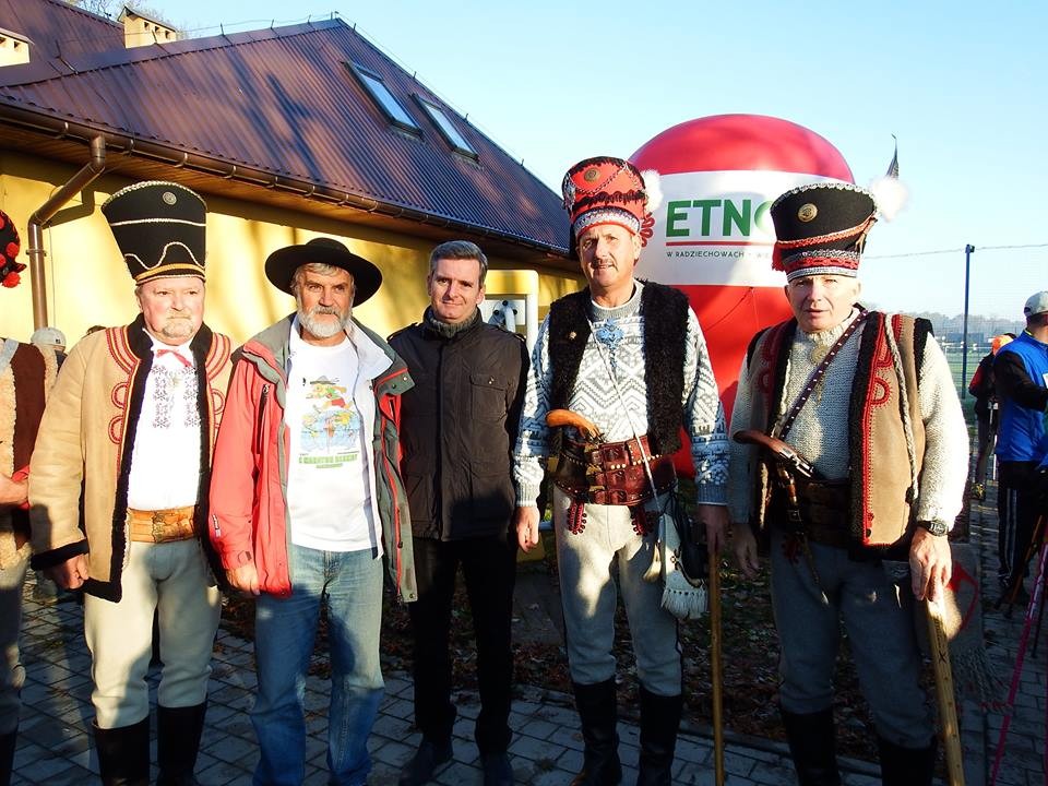 Piękna słoneczna pogoda towarzyszyła zawodnikom już od samego rana. Biuro zawodów rozpoczęło pracę o godzinie 6:00, bo pierwszy start zaplanowano na godzinę 8:00. Od samego świtu gwarno było już w całych Radziechowach, najpierw pakiety startowe z chipami, potem przestawianie samochodów bliżej mety, aby zrobić miejsce do odbioru pozostałym zawodnikom. Po krótkim przemówieniu wójt Maciej Mika zaczął odliczanie. Zanim Komandor się zorientował, Beskidzcy Harnasie odpalili już sygnał startowy i zawodnicy III Międzynarodowych Mistrzostw Polski w Maratonie Górskim Nordic Walking, oraz II Ogólnopolskiej Ligi Mistrzów Nordic Walking "GOLGOTA BESKIDÓW" ruszyli. Sponsorem tych zawodów był Hotel Zacisze z Ciśca. Ten barwny peleton kijkarzy w sile prawie 200 zawodników mknął do przodu pilotowany przez Janusza Sobkowskiego. Dwie godziny później - jak to przedstawił Komandor Edward Dudek - planowany był start ostatniego już Maratonu Beskidy. Po krótkim przywitaniu gości i zawodników oraz modlitwie prowadzonej przez dwóch księży maratończyków, nastąpiło odliczanie i Wójt Gminy na strzał z pukawek dał znak do startu. Zadowy zaczynały się na stadionie GKS Radziechowy – Wieprz. Następny ważny etap trasy jest przy domu komandora. To tutaj na drugim kilometrze trasy znajduje się pierwszy punkt odżywczy, przy którym tradycyjnie rodzina Dudków z mamą Karoliną i naszym muzykiem Bogdanem dopingują maratończyków. Bogdan wygrywa skoczne melodie na trąbce nagradzane wielokrotnie brawami przez maratończyków, których dalej polne drogi prowadzą do Przybędzy, a potem z powrotem do Radziechów, do znajdującego się przy domu ludowym drugiego punktu żywieniowego. Następnie zawodnicy udają się do Twardorzeczki gdzie stołują się na trzecim punkcie odżywczym obsługiwanym przez wolontariuszy szkoły podstawowej. Od szkoły ruszają dalej w stronę Ostrego, gdzie na początku Doliny Zimnika na 12 km czeka na nich 4 punkt odżywczy. Dalej maratończycy biegną przepiękną Doliną Zimnika i odbijają chip na 15 km dokonując pomiaru czasu. Od tego momentu w Buczynie trasa zaczyna się coraz bardziej wznosić ku górze. Na 20,5 km tuż przed wejściem na szlak niebieski, znajduje się najbardziej rozpoznawalny punkt żywieniowy, a obsługuje go wspierany przez przyjaciół sam dyrektor Maratonu Beskidy (przed laty czołowy biegacz narciarski) Sebastian Dudek. Od lat chodzą legendy, że tak zaopatrzonego punktu nie ma nigdzie na świecie. Dalej zaczyna się najtrudniejszy odcinek trasy, prowadzący po ruchomych górskich kamieniach z domieszką śniegu aż pod szczyt Skrzycznego 1257 m n.p.m., gdzie znajdował się punkt kontrolny obsługiwany przez znanych międzynarodowych sędziów narciarskich Adama Cieślara i Jacka Suszkę. Teraz trasa prowadzi 10 km w dół przez Kościelec do Doliny Zimnika, gdzie trasy się łączą. Tu w dolinie na punkcie powrotnym na maratończyków czekali Harnasie Beskidzcy, którzy głośno dopingowali zawodników, a i niejednokrotnie stawali z nimi do zrobienia pamiątkowej fotografii. Sporo niespodzianek czekało jeszcze na tych, którzy po raz pierwszy biegli tą trasą. Najpierw podejście pod Ostre (32 km trasy), następnie pod wapiennik w Radziechowach, potem zbieg obok cmentarza od punktu kontrolnego przy ośrodku zdrowia. Dalej trasa prowadzi na Golgotę Beskidów – wymagający dwukilometrowy odcinek prawdziwej wspinaczki pośród fantastycznie ułożonych stacji Drogi Krzyżowej. Tu na punkcie przemili ludzie Danusia i Stasiu z wnuczką Klaudią Maultz czekali na zawodników z gorąca herbatka i innymi smakołykami. Tradycyjnie nie zabrakło wspaniałych słodkich bułek. Potem tylko zdobycie szczytu Matyski i już z górki na pazurki, czy jak kto woli: zjazd, balet, ślizg po błotnistej mazi. Mało kto potrafił ustać na tej trasie, ale jak podkreślali na mecie ubłoceni po szyję biegacze i nordicowcy, przyjmując gratulacje od szefa, Irenki, czy Weroniki, „zjazd z Matyski to wisienka na torcie tego maratonu”. To tyle o trasie. Na mecie obok domu ludowego spiker Zenon Nowakowski zagrzewał do gorącego dopingu i zapraszał na zawody w Mini Runballu (to nowa ciekawa konkurencja w postaci chodu lub biegu w kuli). Wśród kibiców byli już na mecie zawodnicy z Rajdu Nordic Walking. Pięknie i głośno z trąbkami kibicowała Ilona i Henio Huzarewicz z ekipą Cidry Lotajom z Radzionkowa. Jako pierwszy na mecie pojawił się ubiegłoroczny Mistrz Polski Nordic Walking Marcin Michalec z Krosna z nowym rekordem trasy (4:49;11) zgarniając główną nagrodę - metrową kiełbasę, voucher na super weekend w Hotelu Zacisze i puchar Poseł Małgorzaty Pępek. Jako drugi zawodnik dotarł z kijami w ramach Mistrzostw Polski Górskich NW Karol Stiller Częstochowa 5:03;55 i trzeci zawodnik tej grupy Piotr Niechwiejczyk Świętochłowice 5:04;51.