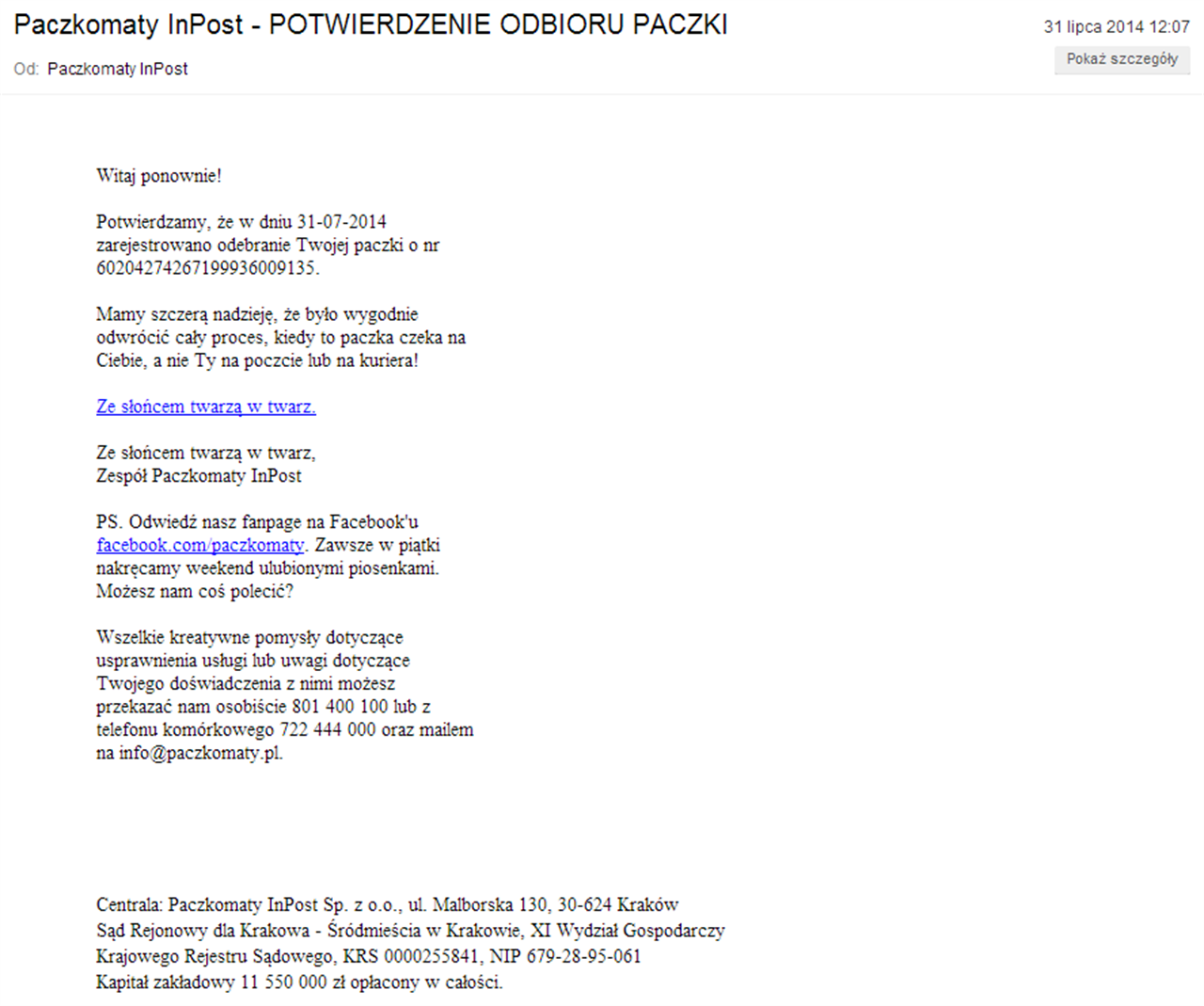 W wiadomościach podszywających się pod informację o odebraniu paczki z paczkomatu InPost oszuści zdecydowali się zagnieździć także piosenkę (z niej pochodzi cytat „ze słońcem twarzą w twarz”). Poza tym tu również znalazło się archiwum ze szkodliwym plikiem.