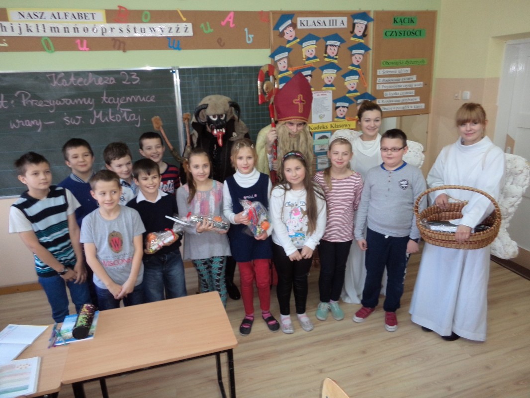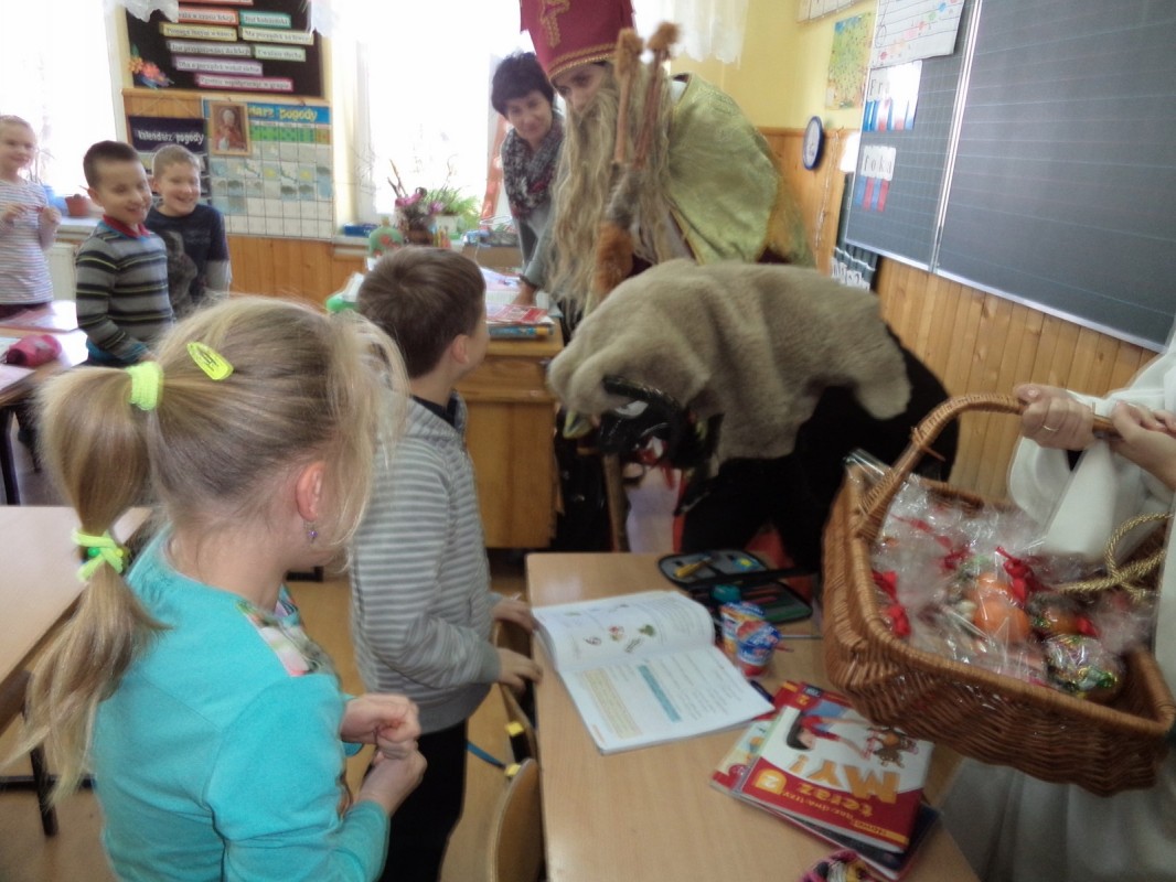 Atrakcją zarówno dla uczniów jak i nauczycieli okazał się sposób wręczenia uczniom nagród. Dzieci w szkołach i przedszkolach odwiedził sam Święty Mikołaj wraz ze swoją grupą, wśród których były dwa pomocne anioły i jeden psotnik – diabeł. Postać diabła cieszyła się dużym zainteresowaniem ze strony dzieci, jednak to Mikołaj skupiał na sobie największą uwagę, gdyż to właśnie on wręczał dzieciom nagrody. Mamy nadzieję, że w przyszłym roku Święty Mikołaj znów odwiedzi nasza gminę w tak doborowym towarzystwie. Wszystkim nagrodzonym dzieciom serdecznie gratulujemy i zapraszamy do udziału w konkursie w przyszłym roku!