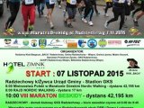 Po 21 latach od tamtego historycznego wydarzenia Radziechowy w tym roku znów są organizatorem po raz pierwszy w Polsce Mistrzostw Polski w Maratonie Górskim Nordic Walking. Dotychczas podczas Maratonu Beskidów bo taką obecnie nosi nazwę, zawody te na maratońskiej trasie rozgrywane były jako Rajd Nordic Walking na dystansie 42,195 km. W tym roku impreza rangi mistrzowskiej pod Patronatem Polskiego Stowarzyszenia Nordic Walking i Sponsora Hotel Zacisze z Ciśca. Na tej górskiej trasie z Radziechów przez Twardorzeczkę, Ostre, przepiękną Dolinę Zimnika, Skrzyczne 1257 m n.p.m. Kościelec i powrót tą samą trasą do Radziechów, następnie wspaniałą drogą Golgoty Beskidów ze szczytem Matyska 610 m n.p.m. i meta przy Domu Ludowym. Dla mniej zaawansowanych wytyczyliśmy krótsza trasę 17 km jednak przy jej wytyczaniu nie ominęliśmy najwspanialszego dzieła naszej gminy jakim jest unikatowa Droga Krzyżowa na Matyskę. Nad prawidłowa techniką marszu czuwać będą sędziowie PSNW, start ze stadionu GKS nastapi o godzinie 8:00 wspólnie dla obu tych grup. Biuro zawodów będzie czynne w domku klubowym GKS od godziny 6:00. Natomiast start już rozgrywanego po raz VIII Maratonu Beskidy nastąpi punktualnie o godzinie 10:00. Aktualnie na listach startowych mamy zgłoszenia z 8 państw, nawet tak odległych jak Canada, wśród których mamy mistrzów świata i Europy, w Radziechowach nie zabraknie też znanych w całej Europie Spartathloczyków ( marzenie każdego ultrasa bieg z Aten do Sparty 246 km, który jako pierwszy Polak pokonał w 1995 roku Radziechowianin Edward Dudek i to na wspaniałym czwartym miejscu). Start tych imprez w Radziechowach obok Urzędu Gminy ze stadionu GKS 7 listopada 2015 r. Na listach startowych mamy ponad 500 uczestników. Dla uczestników tego sportowego święta przygotowaliśmy piękne okolicznościowe medale , koszulki, dyplomy i pamiątki. A wszystkich naszych zawodników nakarmi szef kuchni Hotelu Zimnik. Tradycyjnie oprócz pucharów Zakłady Mięsne w Żywcu przygotowują ponad metrowe kiełbasy specjalnie produkowane na tą imprezę. A więc do zobaczenia na starcie i trasie tego wspaniałego wydarzenia, zawodników zapraszamy na start a kibiców i sympatyków o gorący doping.