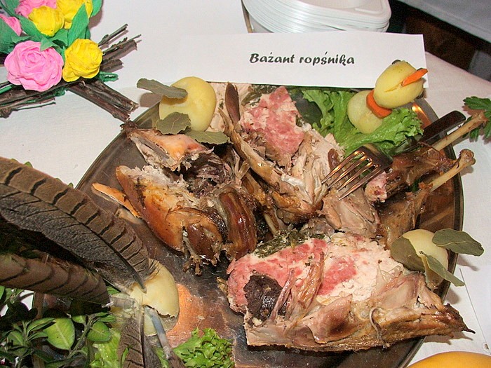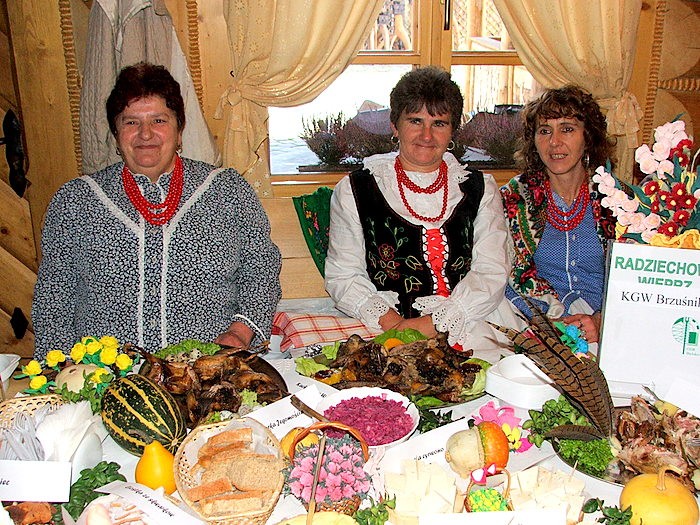 Gaździny z Brzuśnika serwowały na swouim stoisku ponadto: “Przepiórke Jegomościa”, “Kacke Pana Wojta”, “Bażanta ropśnika”, syrnik, placek z jabkami, chleb na kwaśnym mlyku, sery białe i wędzone, jajka przepiórcze w sosie chrzanowym, swojskie masło, nalewki z czarnego bzu i atonii, miodowkę.