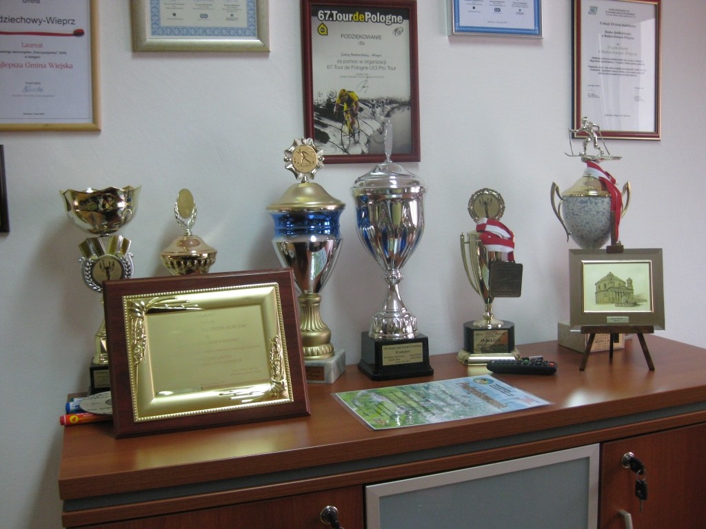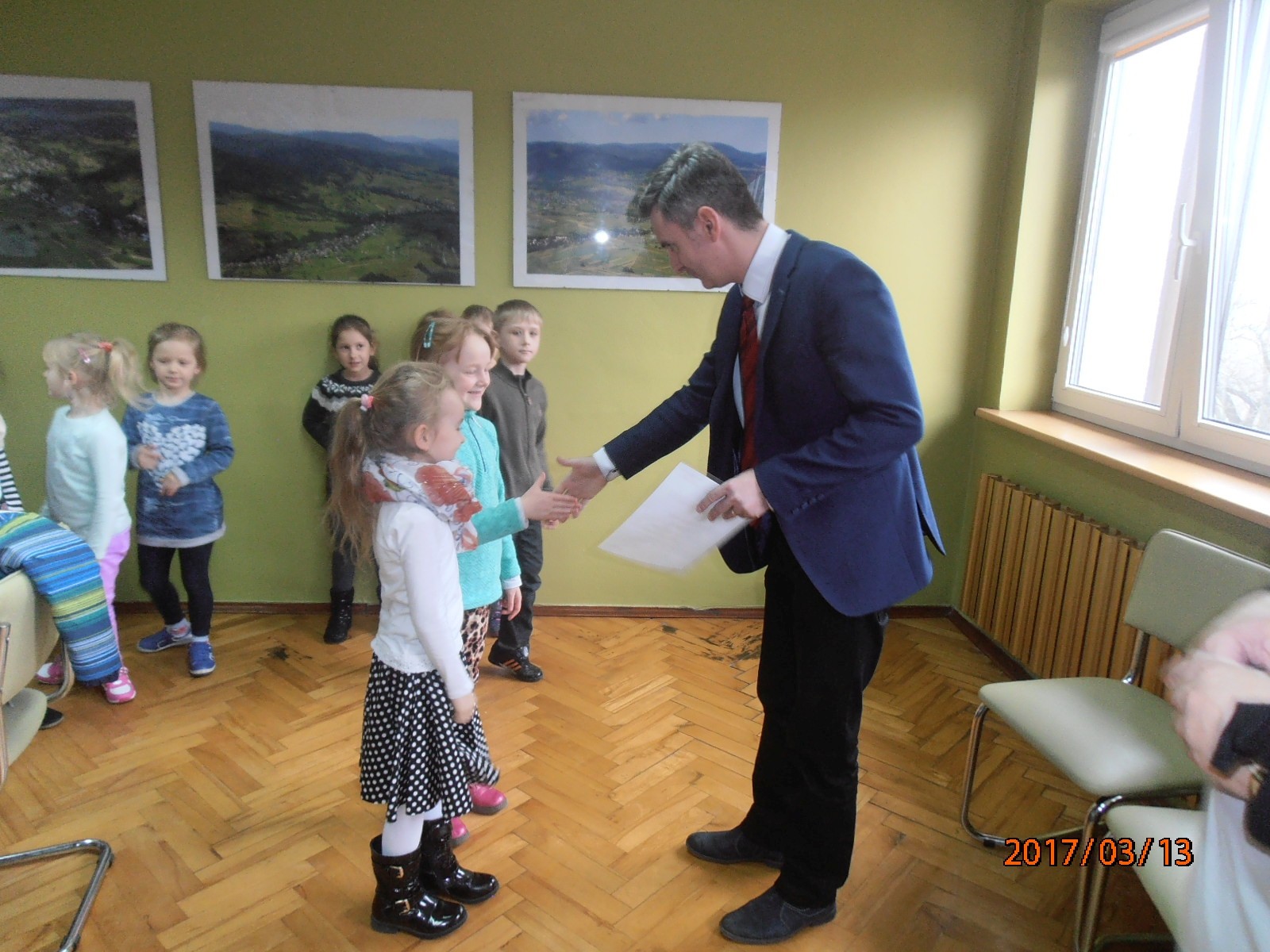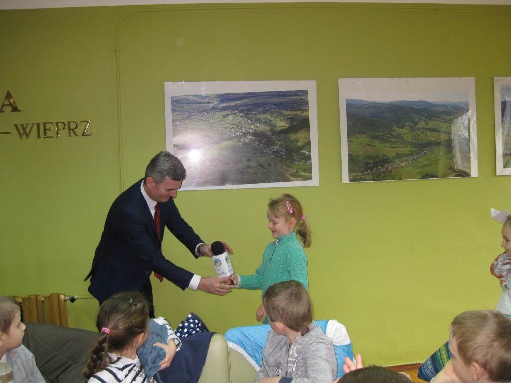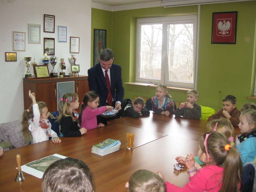 Przedszkole im. Władysława Pieronka w Radziechowach od wielu lat realizuje tematykę regionalną. W poprzednich latach dzieci zajmowały się sztuką ludową na terenie naszej gminy, zmianami w krajobrazie rodzinnej miejscowości, tworzeniem kroniki rodu znaczącego dla Radziechów. Ten ostatni projekt zaowocował wyborem patrona i przyjęciem nazwy „Przedszkole im. Władysława Pieronka w Radziechowach”. W bieżącym roku przedszkolaki pod kierunkiem wychowawczyń postanowiły zająć się badaniem wykorzystania potencjału historycznego, przyrodniczego i kulturowego miejscowości Radziechowy dla jej rozwoju. W tym celu został opracowany regionalny projekt edukacyjny pod nazwą „Gdzie jesteśmy… Dokąd zmierzamy… Nasza przyszłość w Radziechowach”. Główne założenia projektu, to badanie potencjału i walorów naszej miejscowości pod kątem wykorzystania go dla jej rozwoju i tworzenia coraz lepszych warunków życia dla społeczeństwa w przyszłości. Co możemy wspólnie stworzyć? Z czego możemy być dumni w przyszłości? Dokąd zmierzamy? Poszukiwanie odpowiedzi na te pytania rozpoczęliśmy od wycieczki do Urzędu Gminy w Radziechowach i spotkania z Panem Maciejem Miką Wójtem Gminy Radziechowy-Wieprz. Po serdecznym powitaniu w swoim gabinecie Pan Wójt oprowadził dzieci po urzędzie tłumacząc, jakie sprawy są w nim załatwiane przy wsparciu urzędników. Najwięcej atrakcji przygotowano dla przedszkolaków w sali sesyjnej. Na gości oczekiwały przygotowane do wglądu materiały historyczne w postaci kronik gminnych, foldery gminne ukazujące aktualną rzeczywistość gminną oraz dokument wybiegający w przyszłość, czyli „Program rozwoju Gminy Radziechowy- Wieprz na lata 2016-2026”. Podczas, gdy przedszkolaki przeglądały z zainteresowaniem zgromadzone zbiory, Pan Maciej Mika w dostępny dla małego odbiorcy sposób przedstawił dzieciom walory gminy Radziechowy-Wieprz oraz nadzieje związane między innymi z wykorzystaniem nowo powstałej strefy ekonomicznej. Podsumowaniem spotkania były pamiątkowe zdjęcia w sali sesyjnej oraz obdarowanie gości folderami promującymi Gminę Radziechowy Wieprz.
